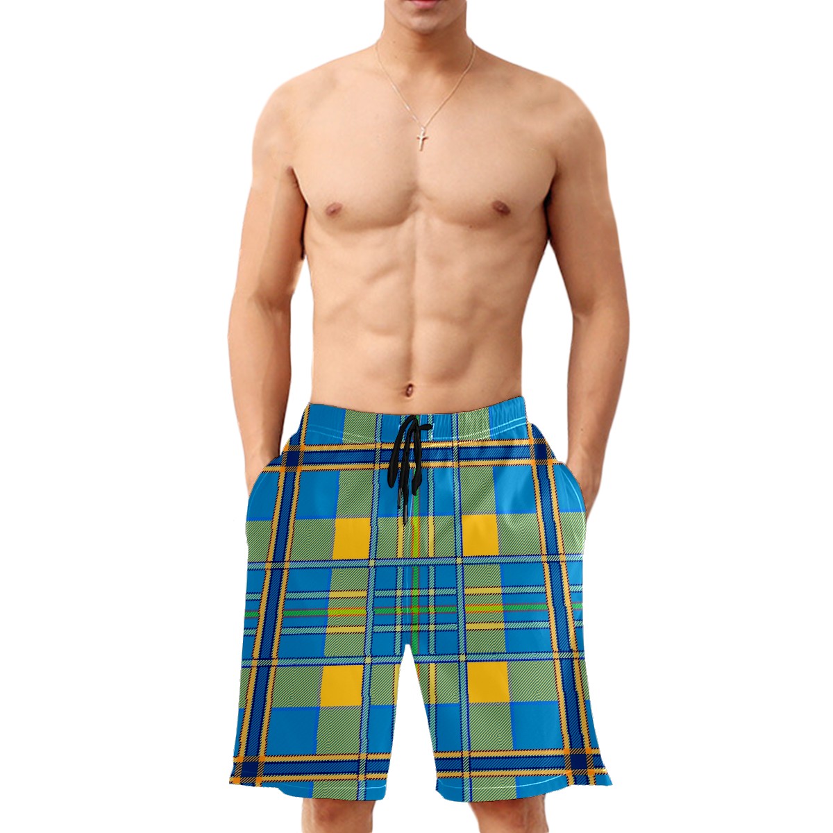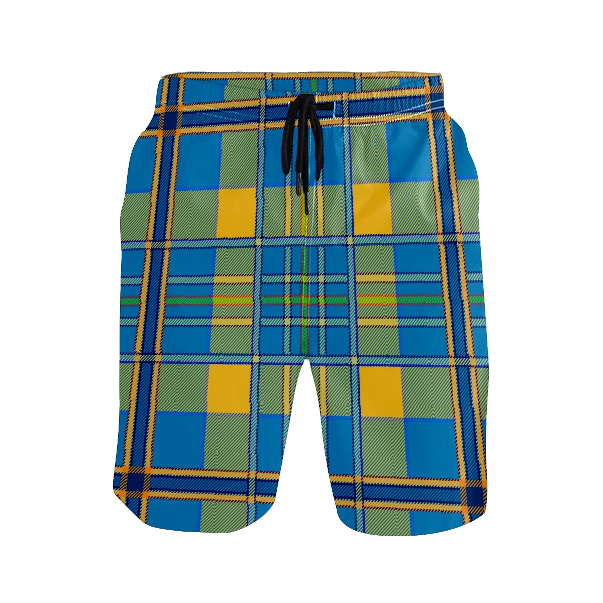 Mens Swim Trunks Plaid Tartan Scottish Blue Yellow Beach Board Shorts