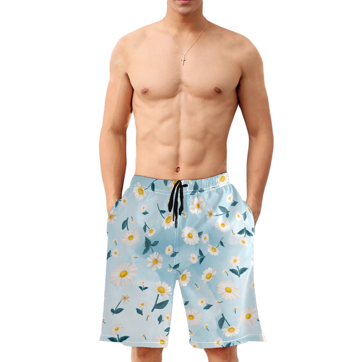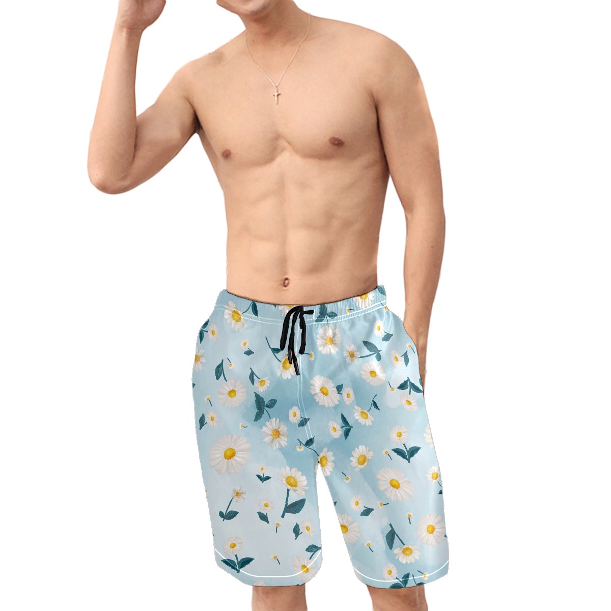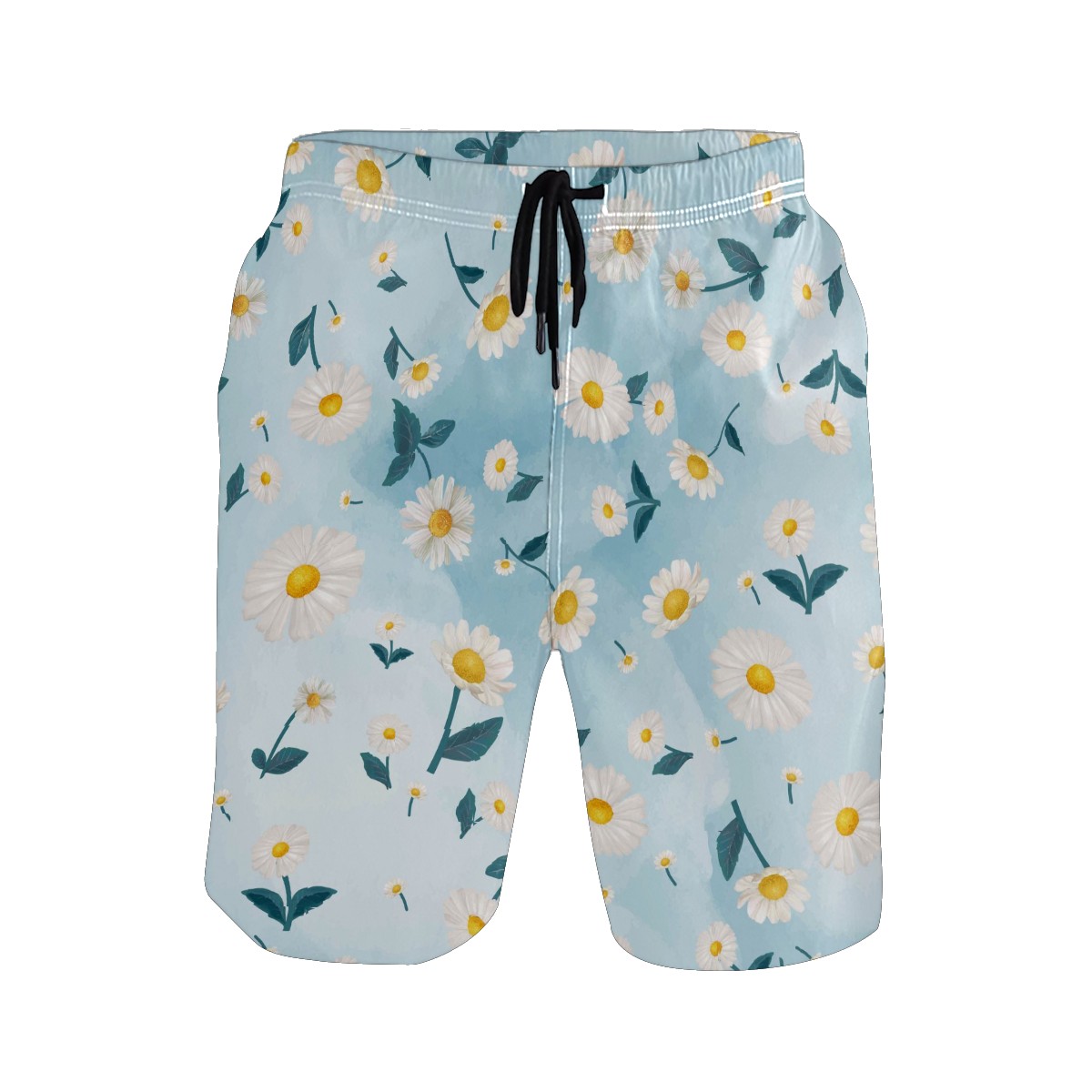 Mens Swim Trunks Little Daisy Flower Light Blue Background Beach Board Shorts