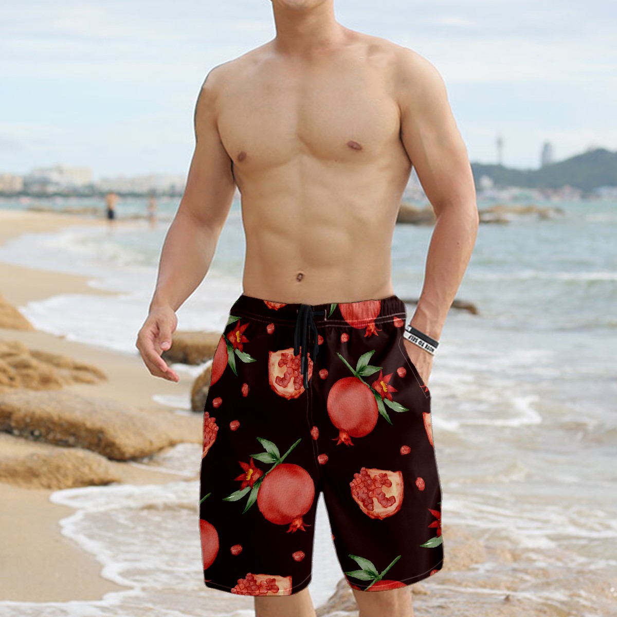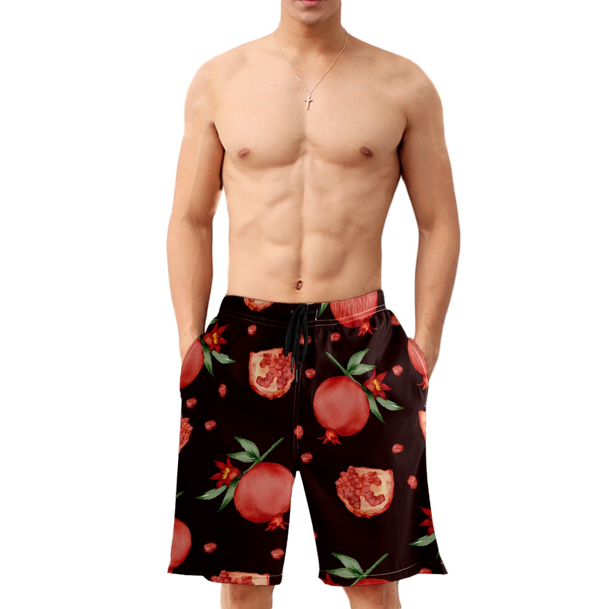 Mens Swim Trunks Fruit Pomegranat Pattern Red Beach Board Shorts