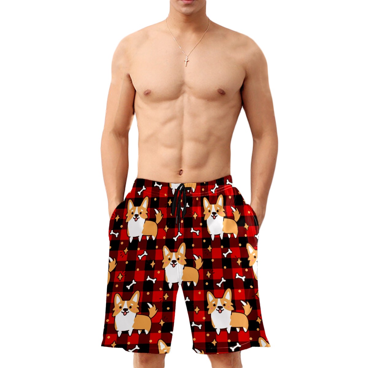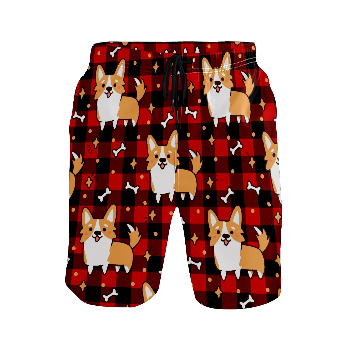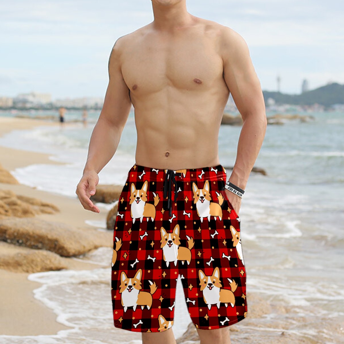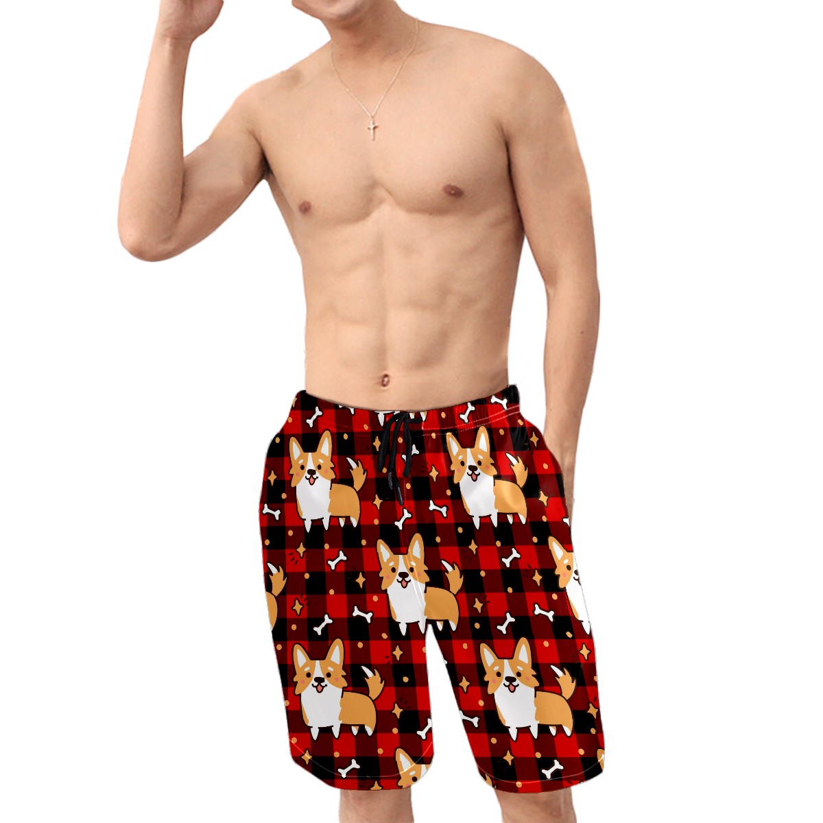 Mens Swim Trunks Cute Cirgi Dg Bone Star Red Black Plaid Beach Board Shorts