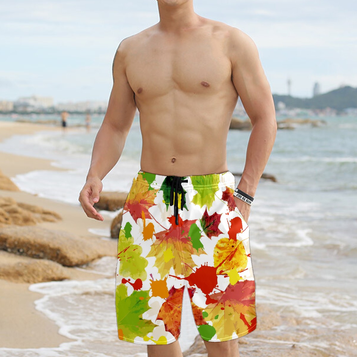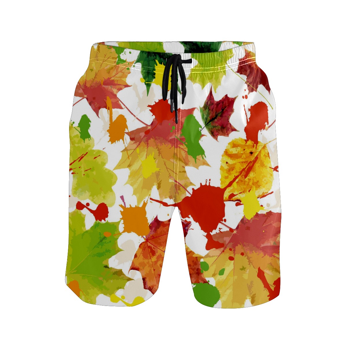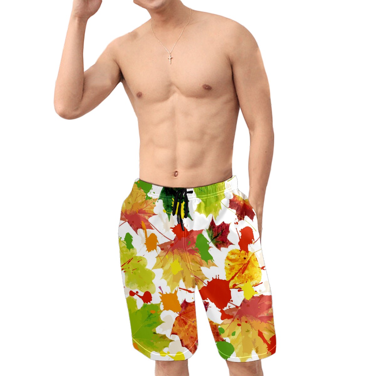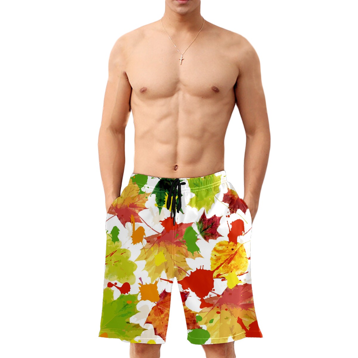 Mens Swim Trunks Doodle Autumn Maples Green Orange Beach Board Shorts