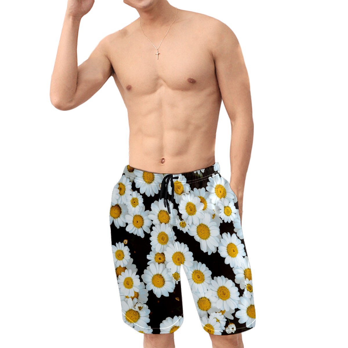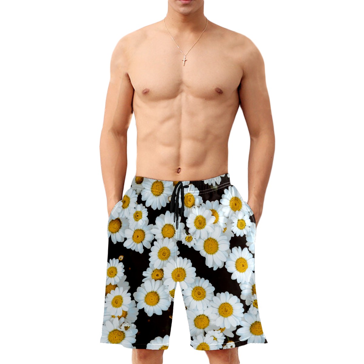 Mens Swim Trunks Chamomile Daisy Flower Field Beach Board Shorts