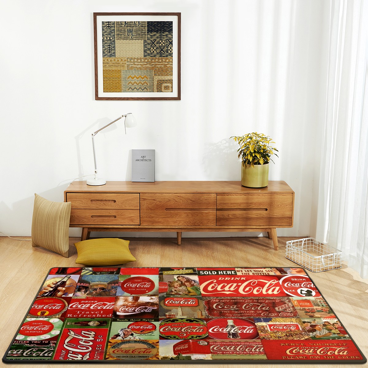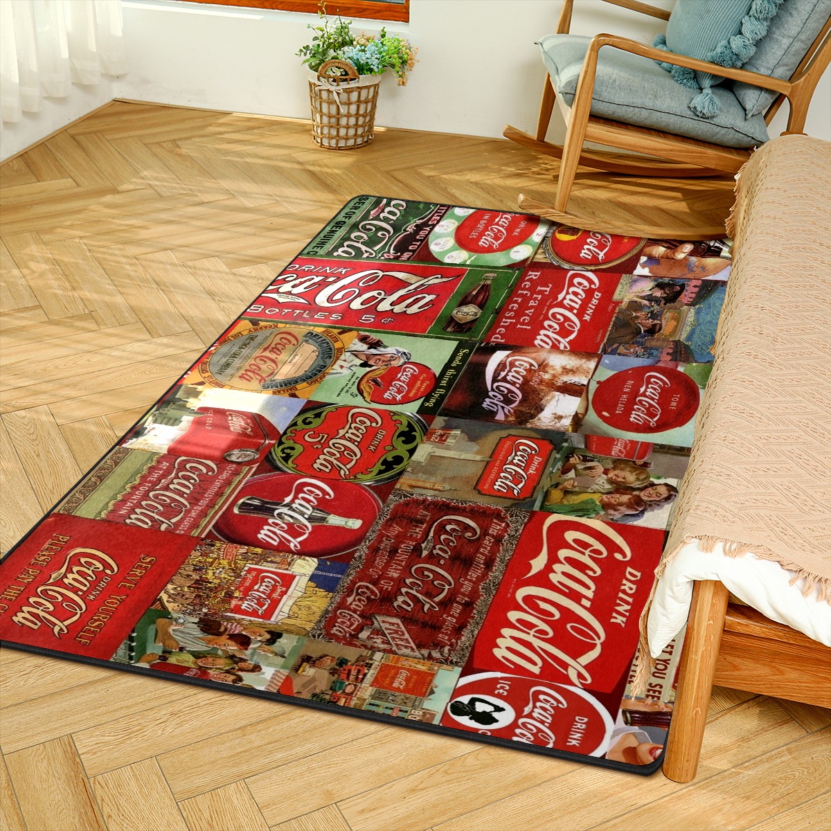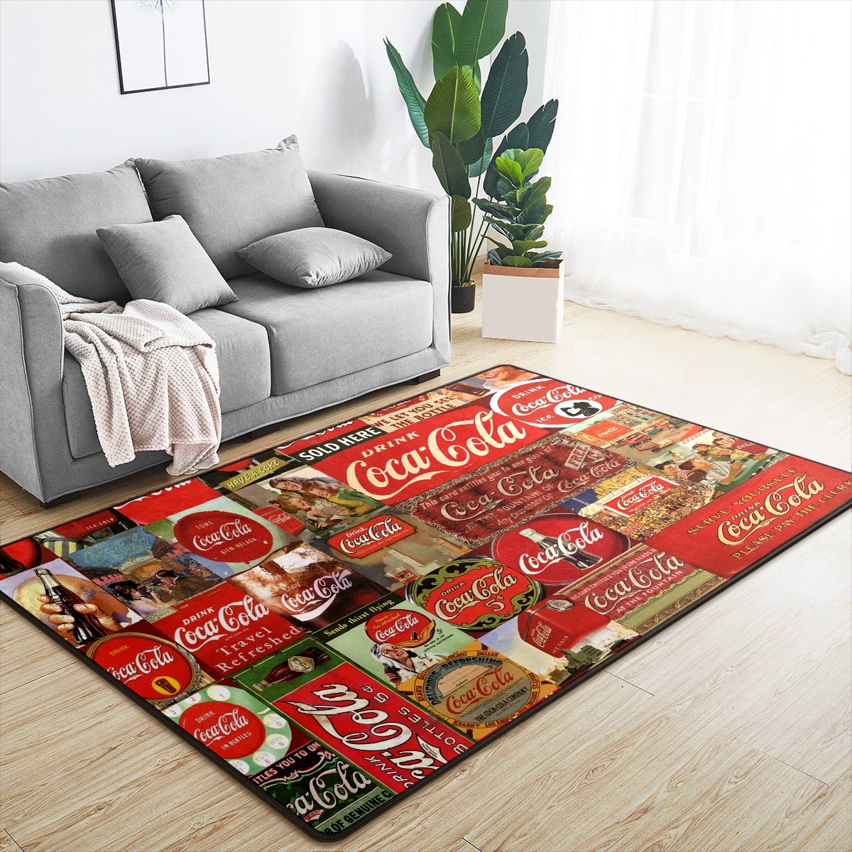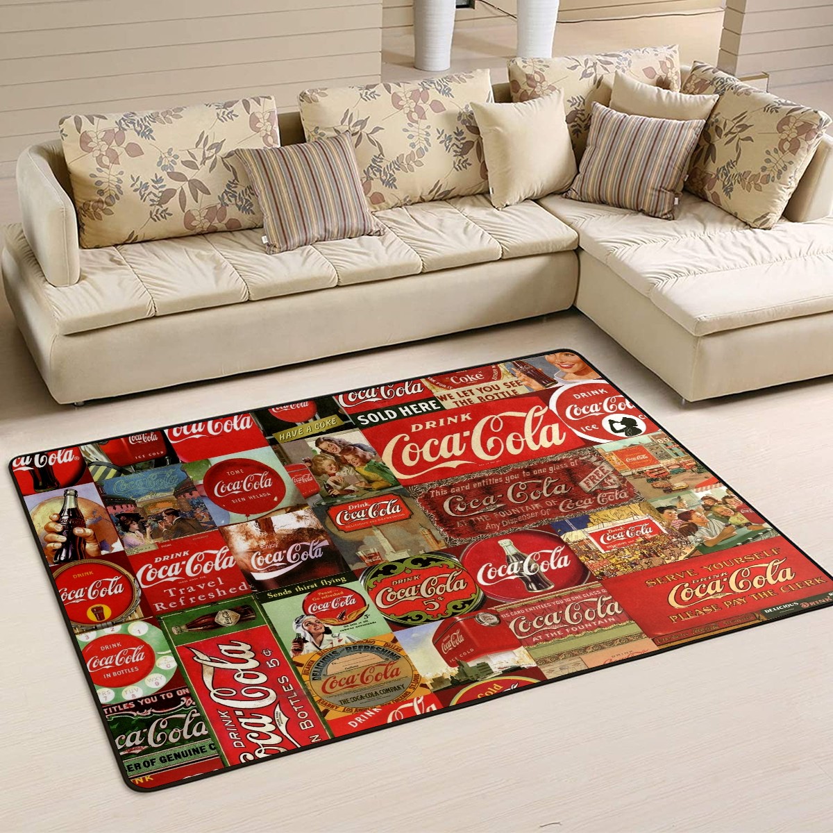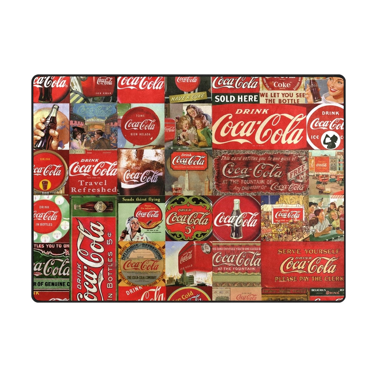 Vintage Coca Cola Area Rug Non-Slip Carpet Large Soft Floor Mat Doormats Modern Living Room Nursery Rugs for Indoor Outdoor Bedroom Kitchen Home Decoration (5'x3'3'')