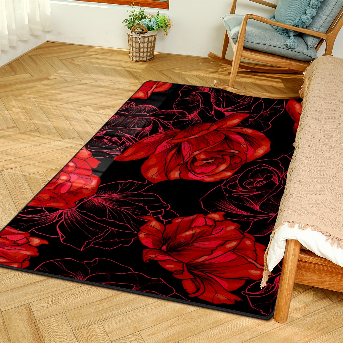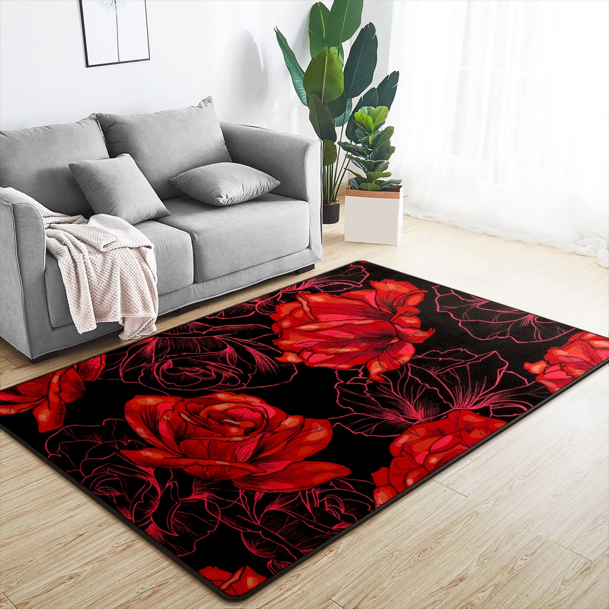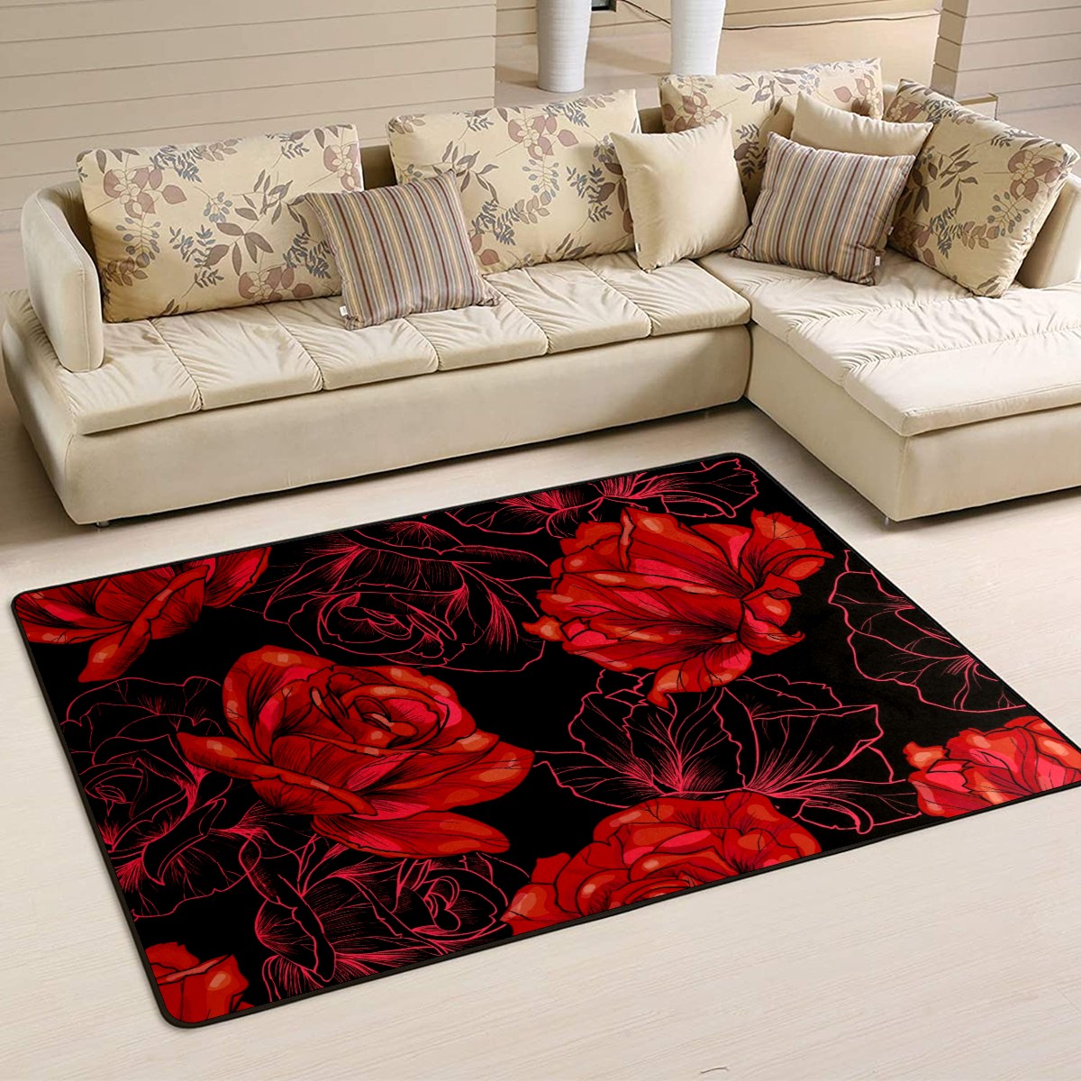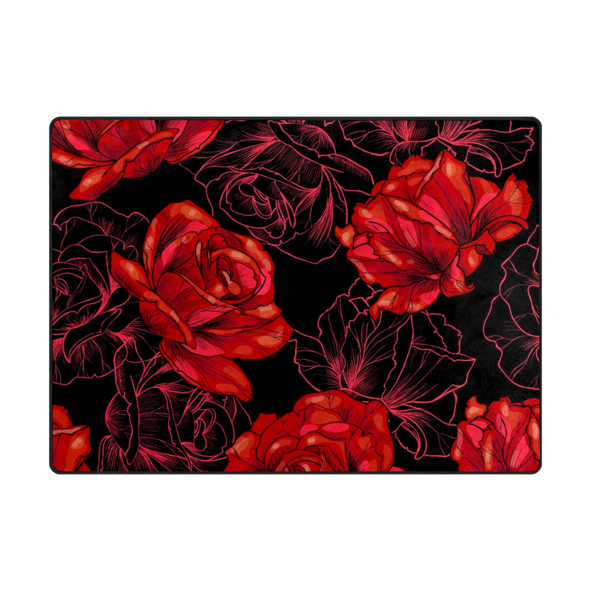 Red Roses Flower Area Rug Non-Slip Carpet Large Soft Floor Mat Doormats Modern Living Room Nursery Rugs for Indoor Outdoor Bedroom Kitchen Home Decoration (5'x3'3'')