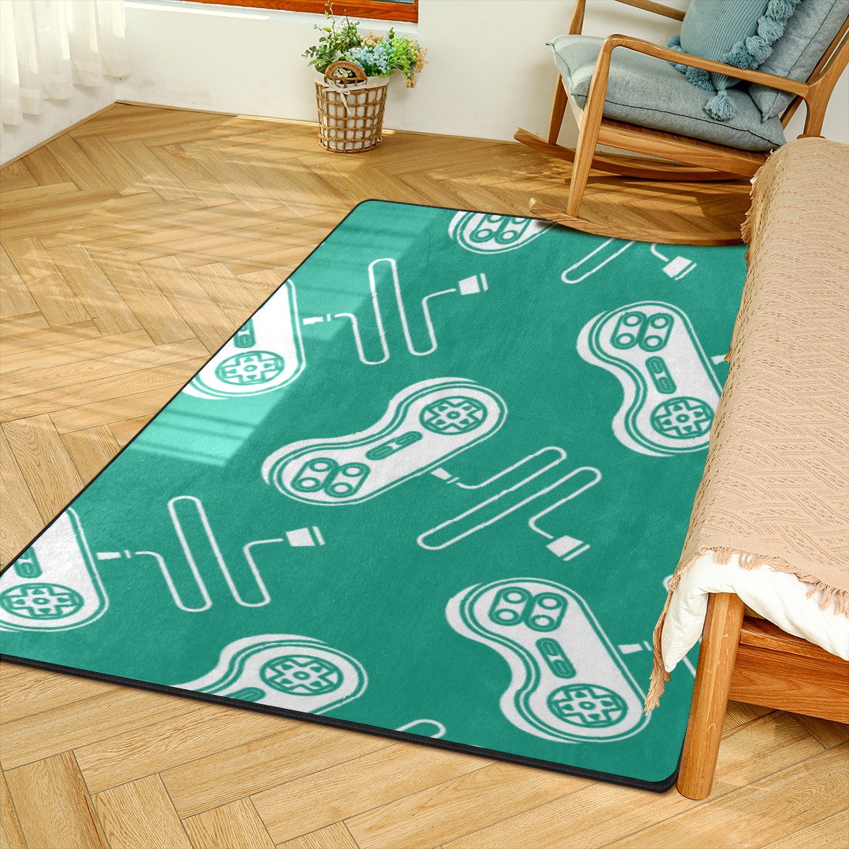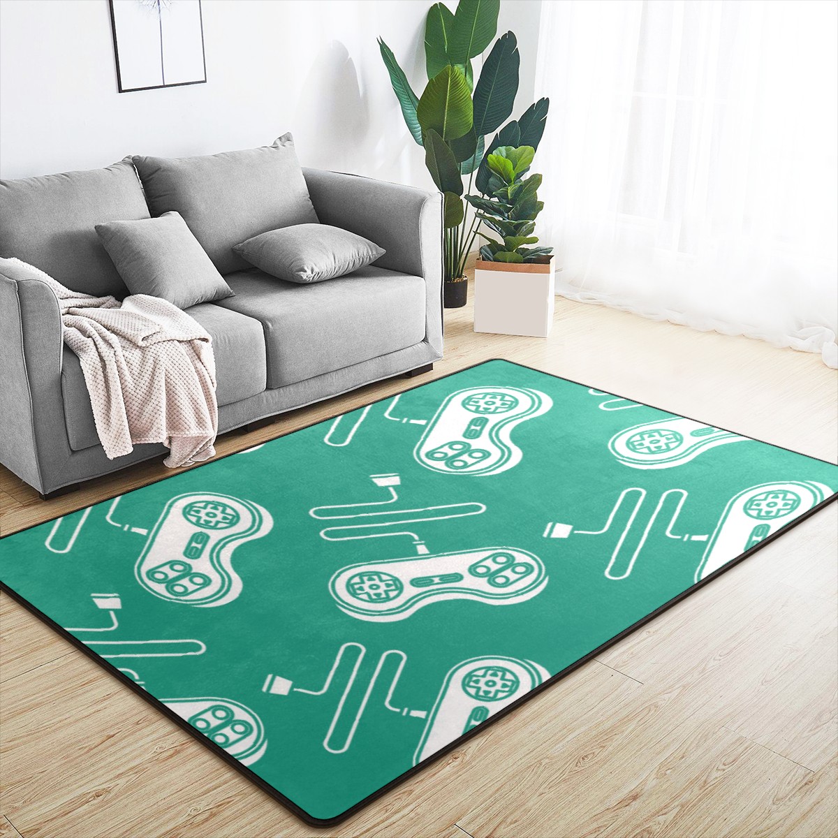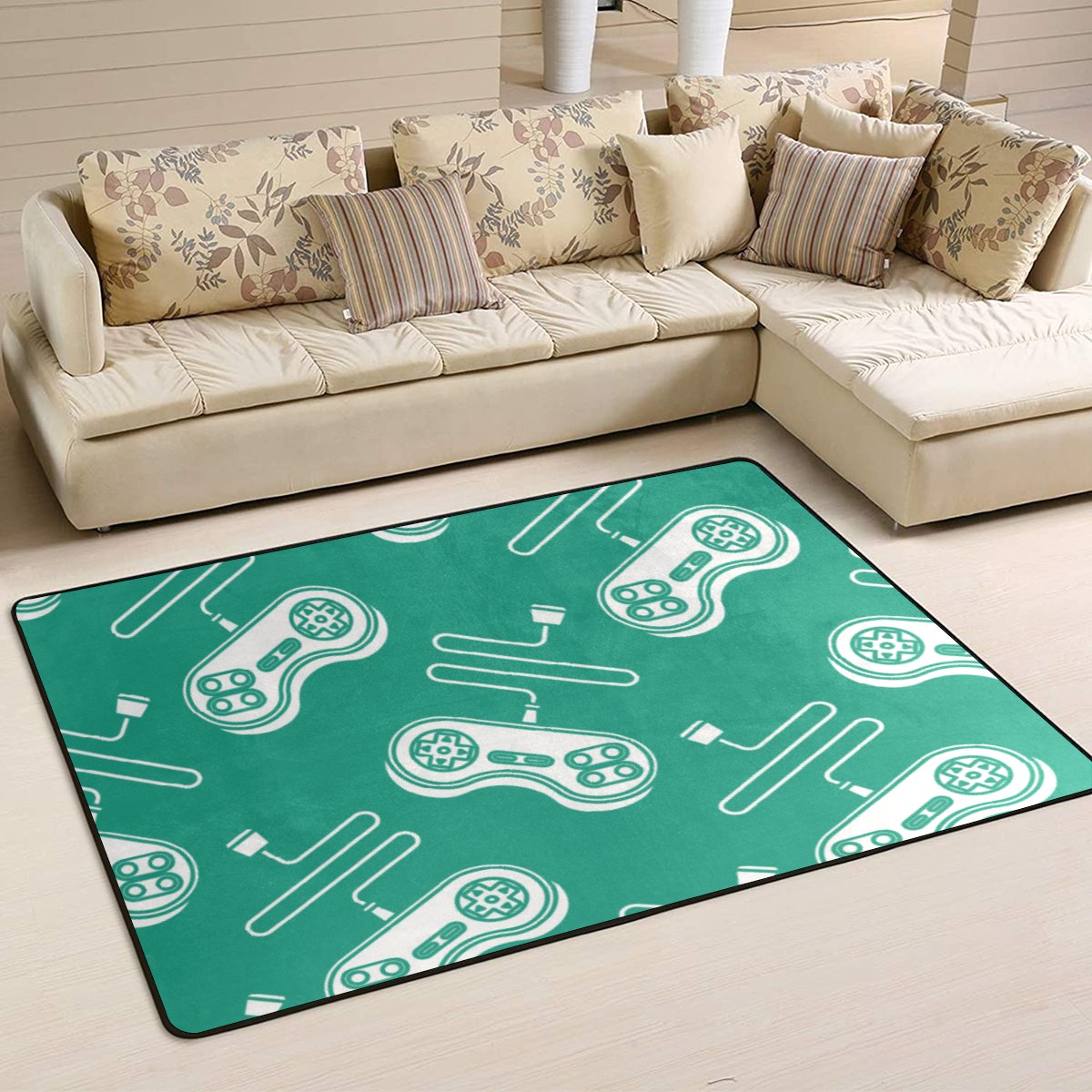 Video Game Controller Gamepad Area Rug Non-Slip Carpet Large Soft Floor Mat Doormats Modern Living Room Nursery Rugs for Indoor Outdoor Bedroom Kitchen Home Decoration (5'x3'3'')