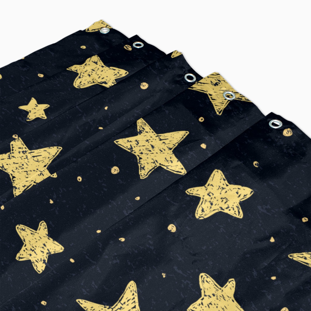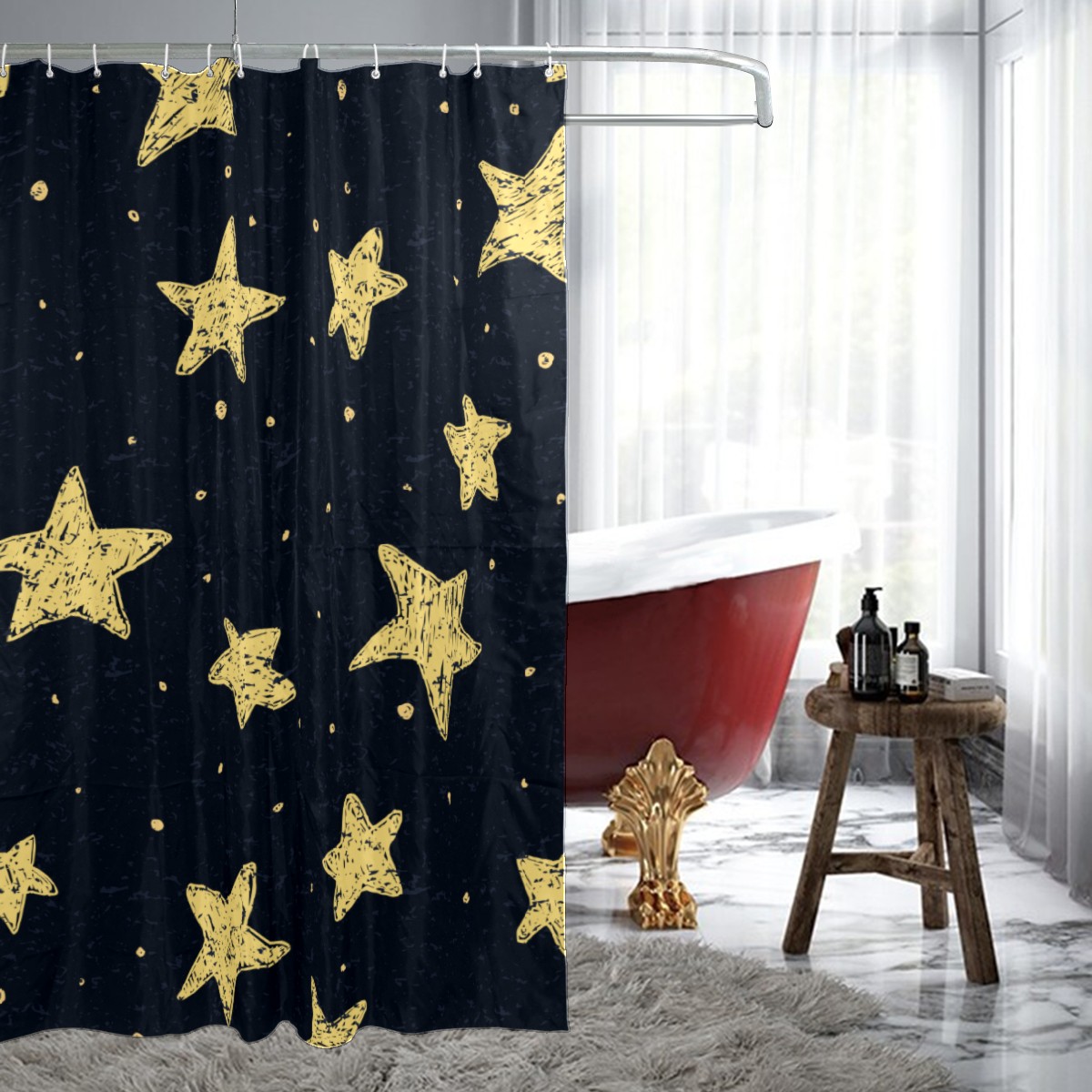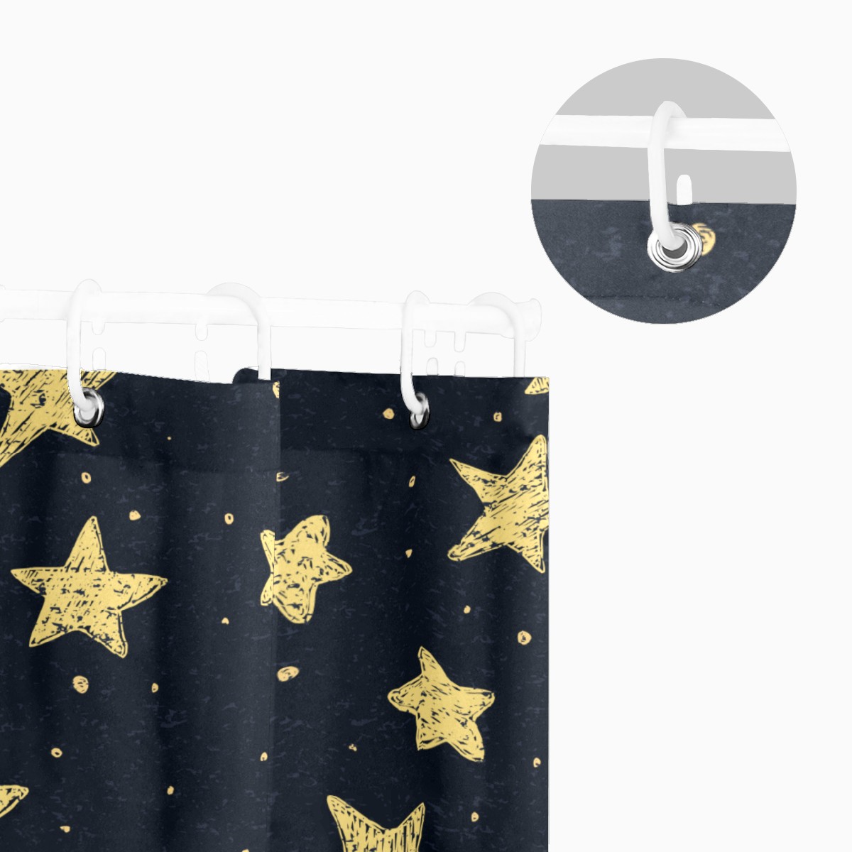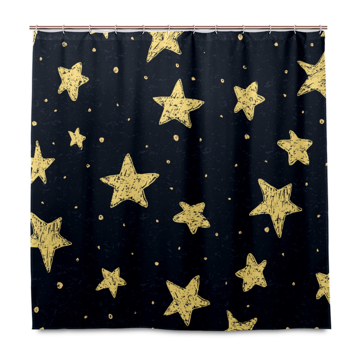 Yellow Star Gold Night Shower Curtain Waterproof Bathroom Shower Curtains for Hotel Bathtub Bathroom Decor Curtains with 12pcs Hooks, 60x72 inch