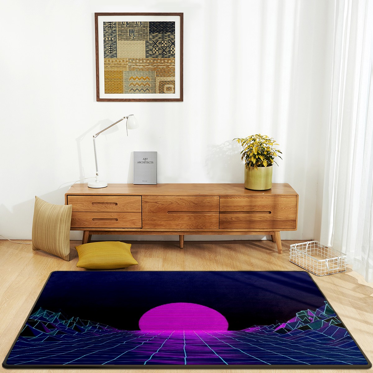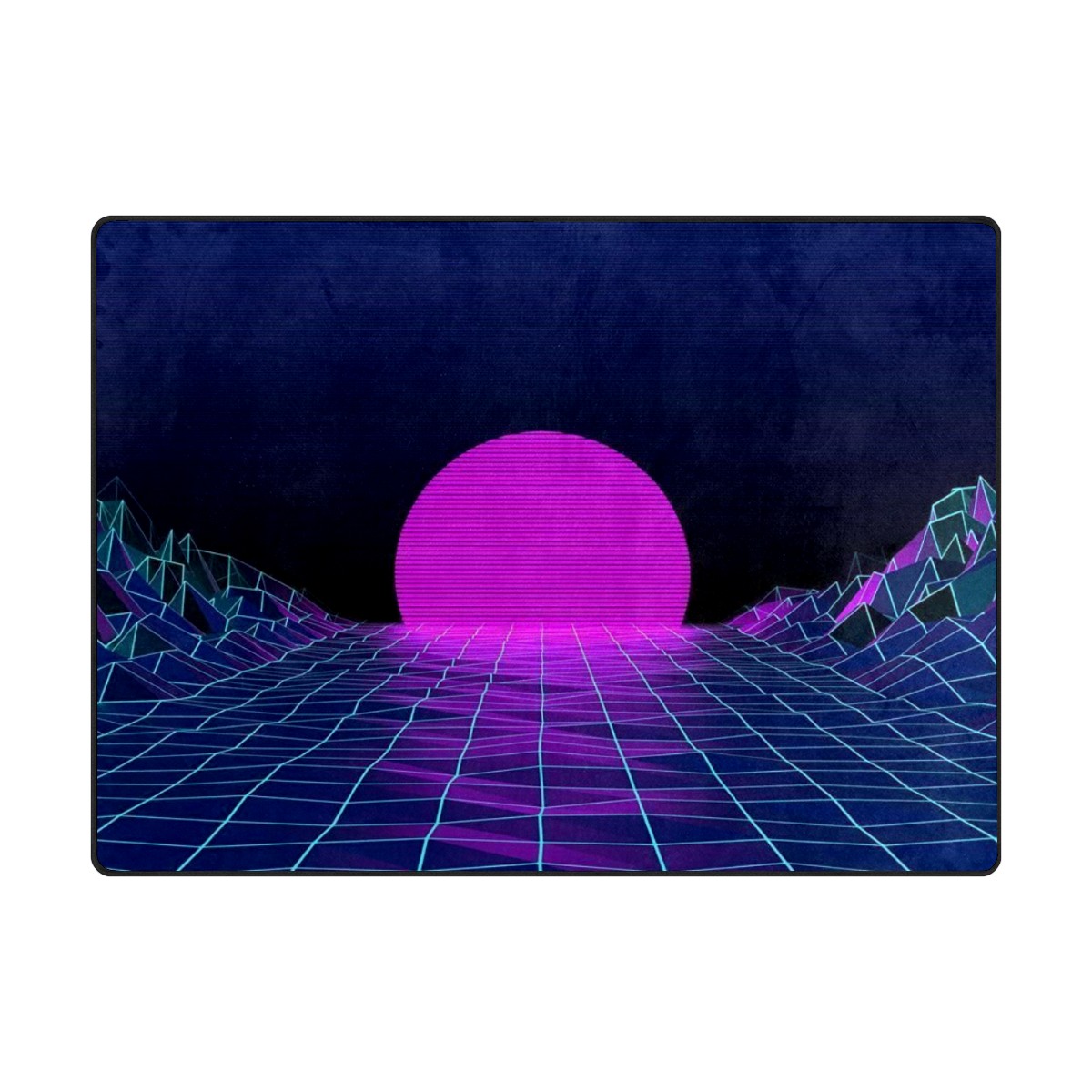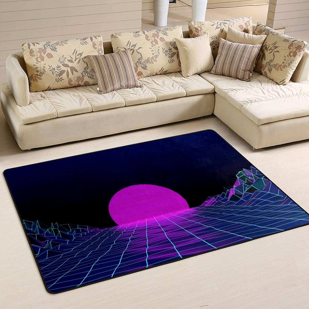 Vaporwave Vintage Area Rug Non-Slip Carpet Large Soft Floor Mat Doormats Modern Living Room Nursery Rugs for Indoor Outdoor Bedroom Kitchen Home Decoration (5'x3'3'')