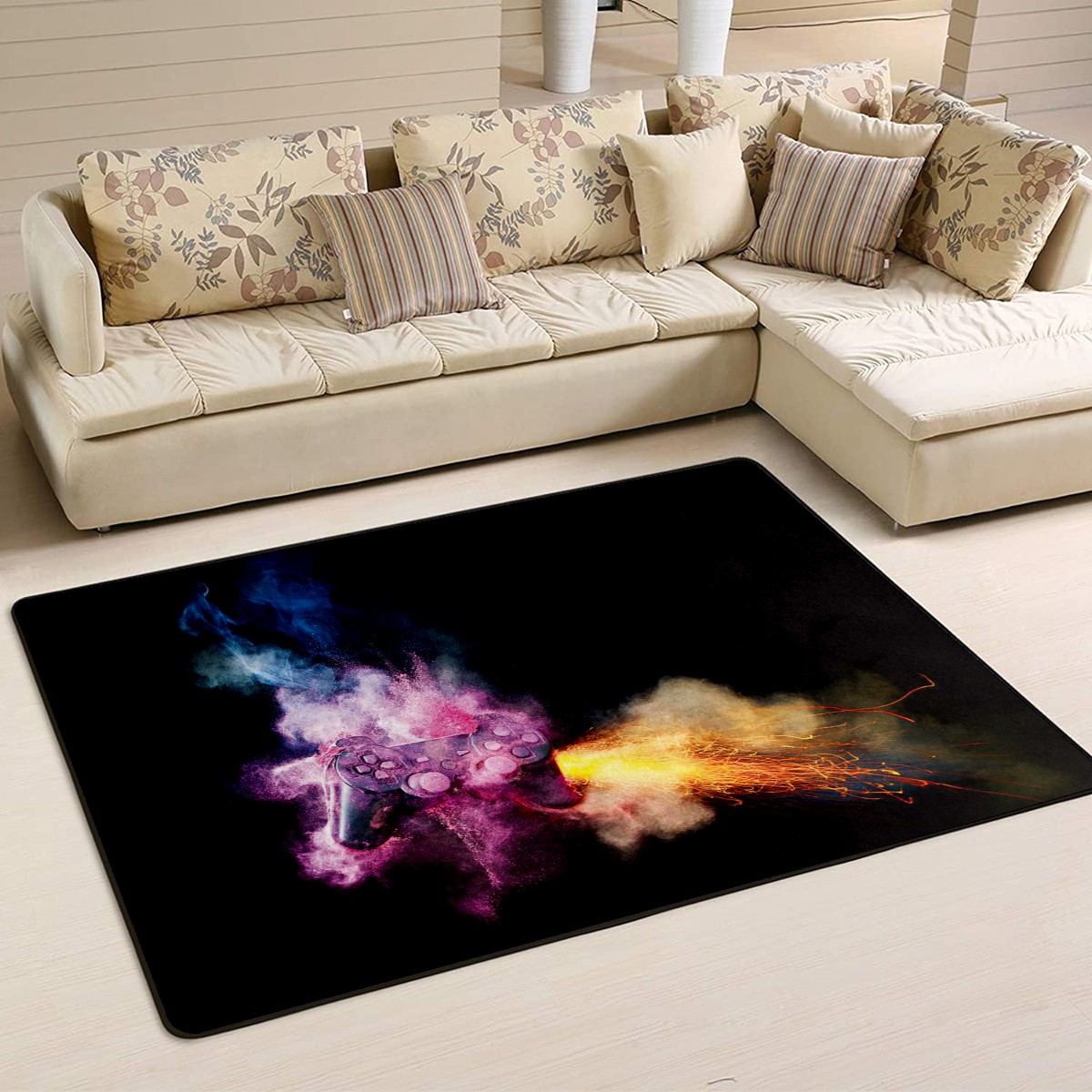 Retro Games Controller Area Rug Non-Slip Carpet Large Soft Floor Mat Doormats Modern Living Room Nursery Rugs for Indoor Outdoor Bedroom Kitchen Home Decoration (5'x3'3'')