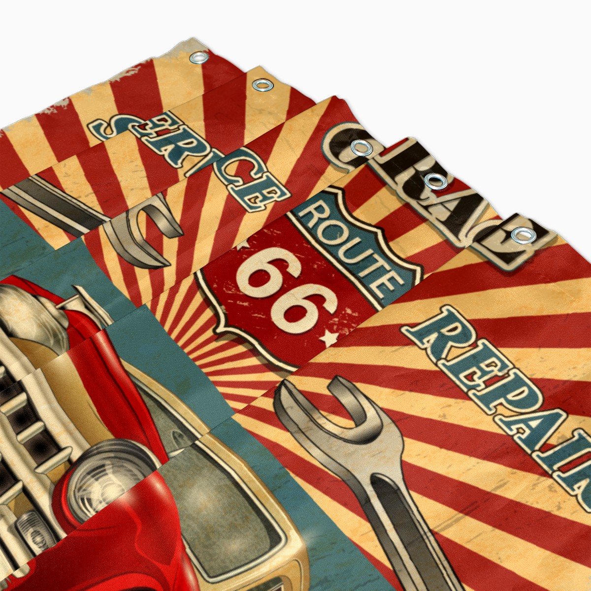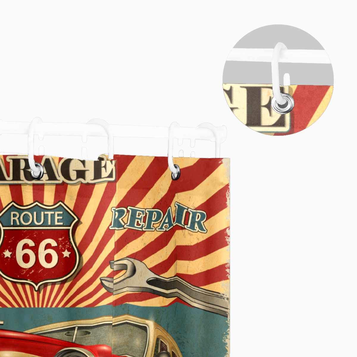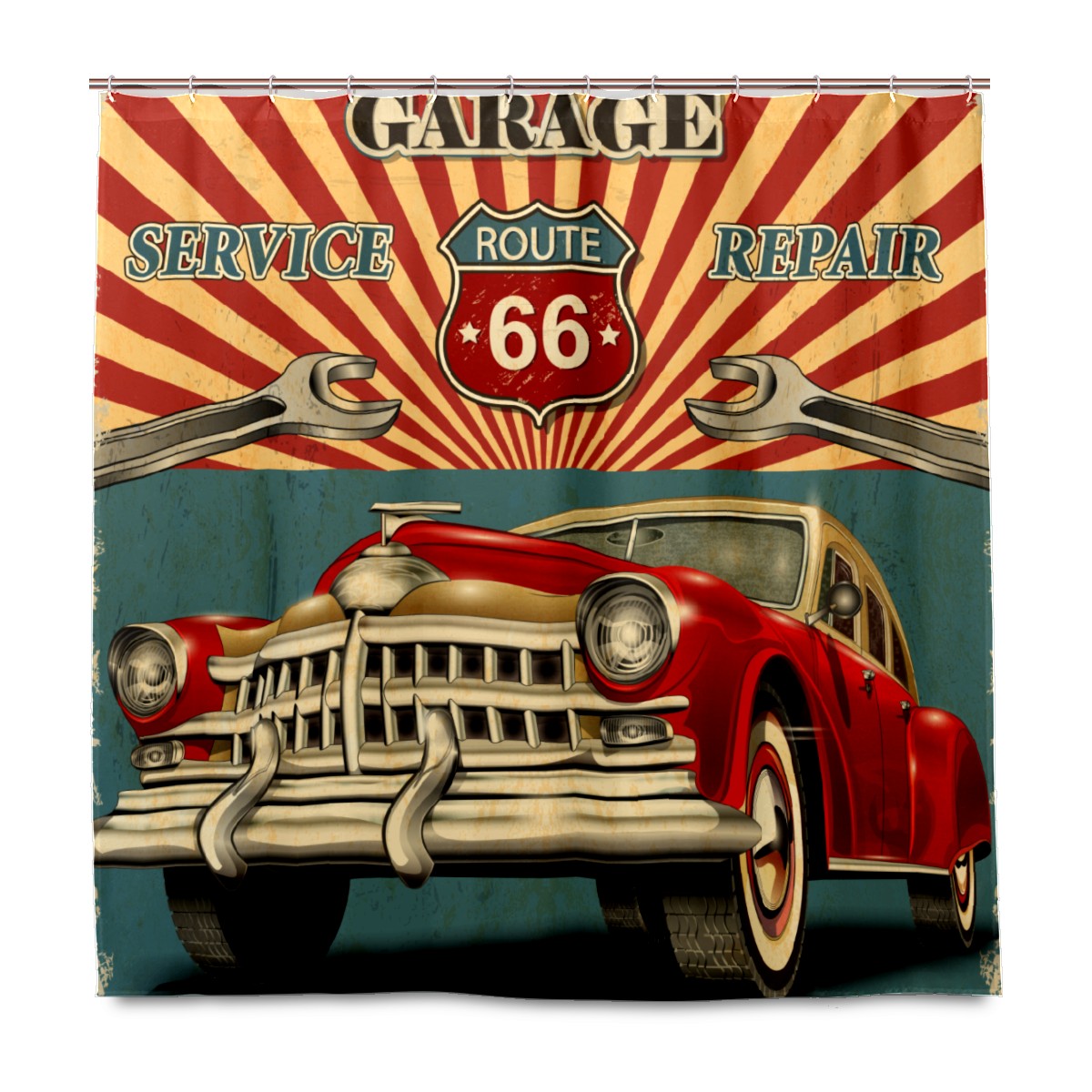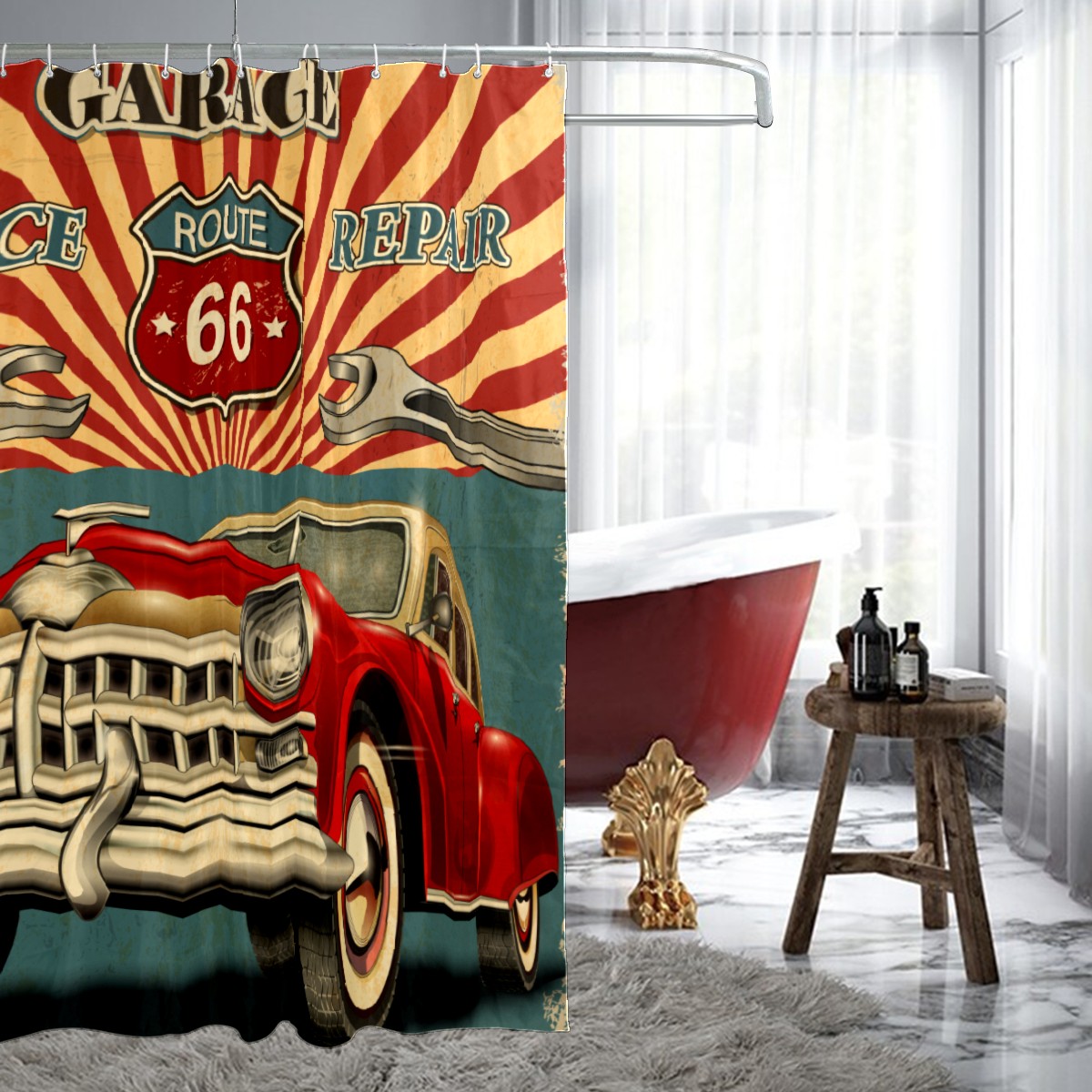 Vintage Red Car Stamp Shower Curtain Waterproof Bathroom Shower Curtains for Hotel Bathtub Bathroom Decor Curtains with 12pcs Hooks, 60x72 inch