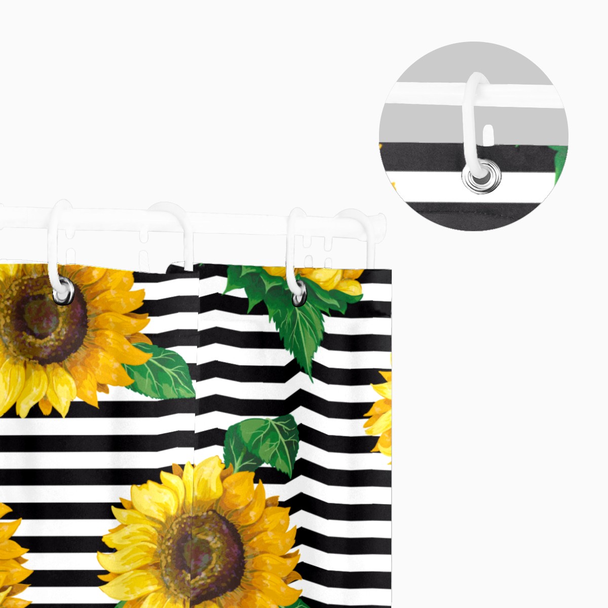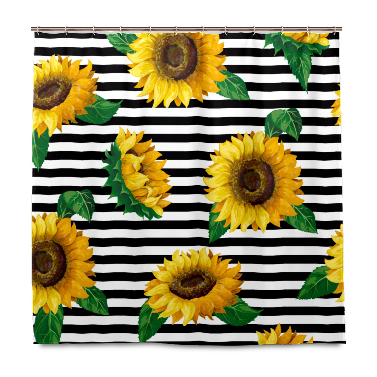 Vintage Sunflower Black White Striped Shower Curtain Waterproof Bathroom Shower Curtains for Hotel Bathtub Bathroom Decor Curtains with 12pcs Hooks, 60x72 inch