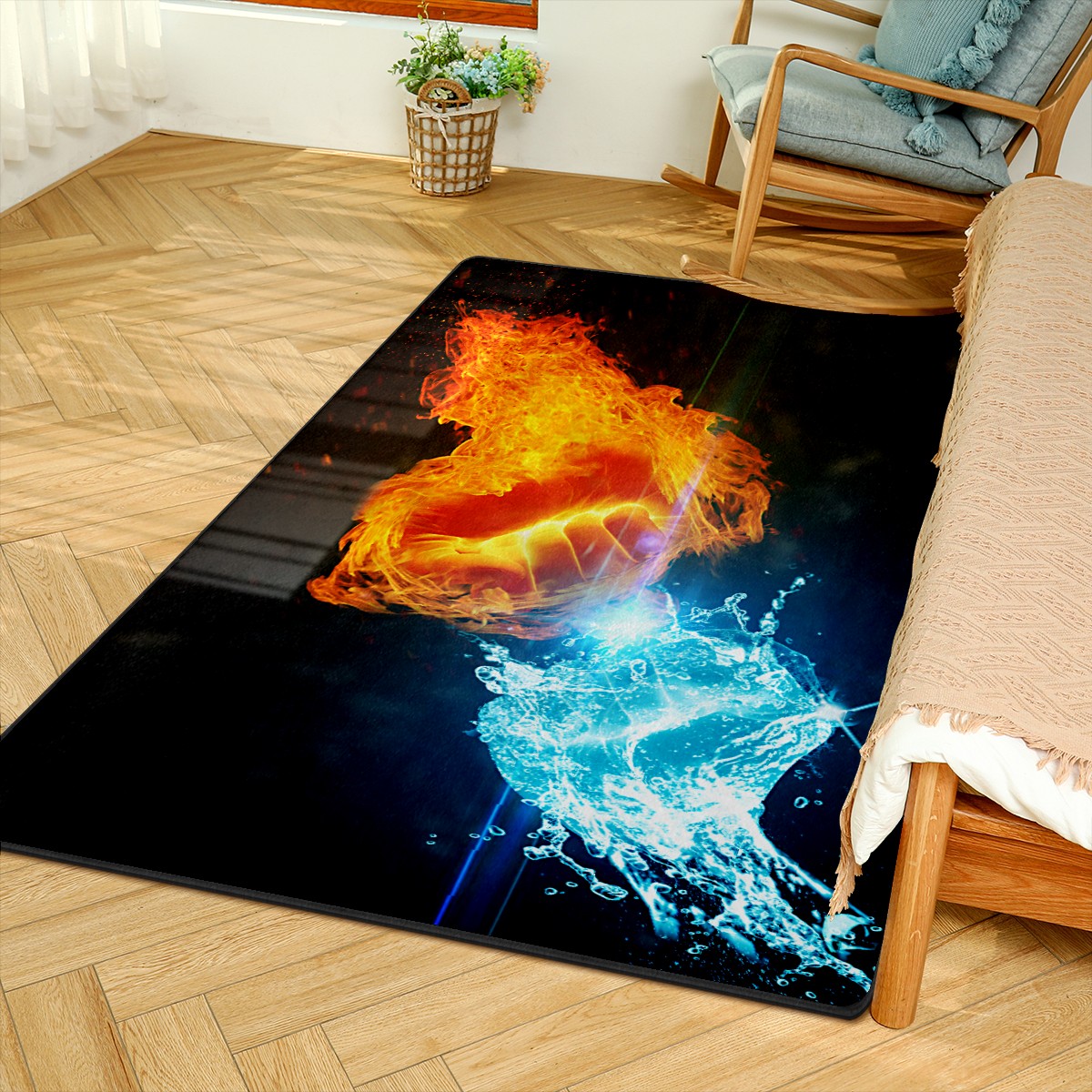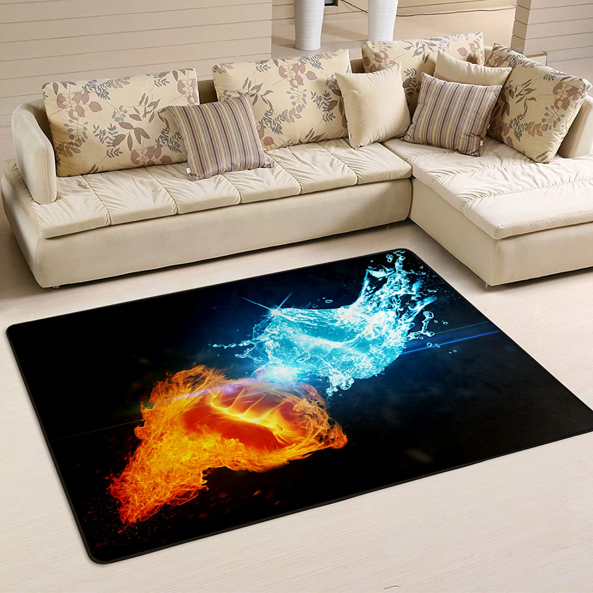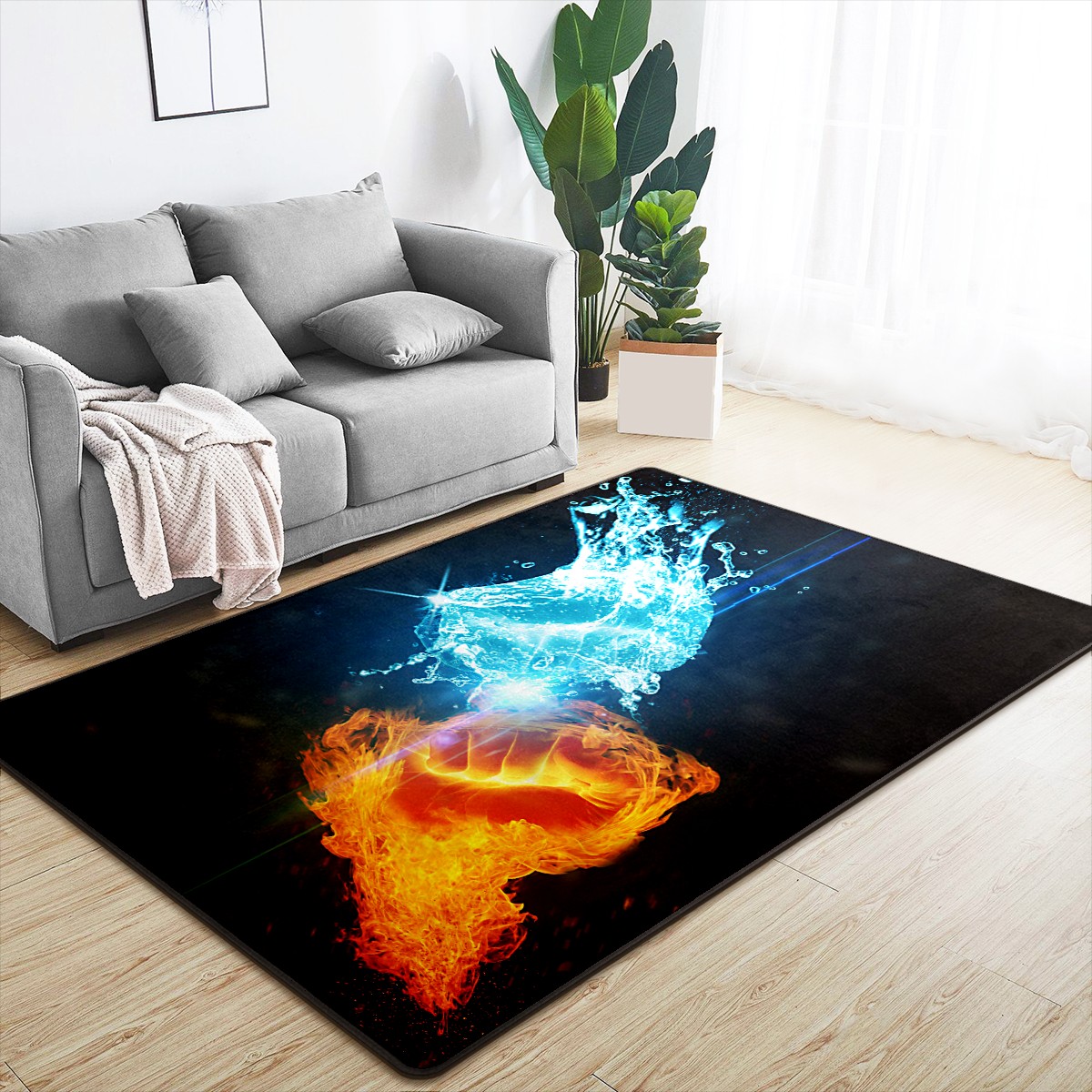 Ice And Fire Fist Pride Day Area Rug Non-Slip Carpet Large Soft Floor Mat Doormats Modern Living Room Nursery Rugs for Indoor Outdoor Bedroom Kitchen Home Decoration (5'x3'3'')