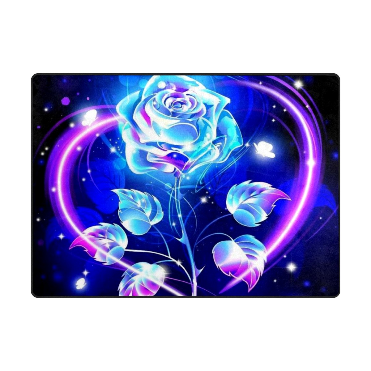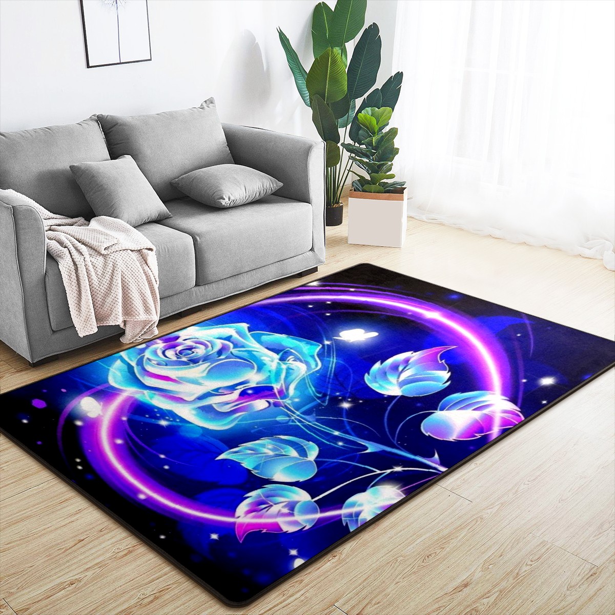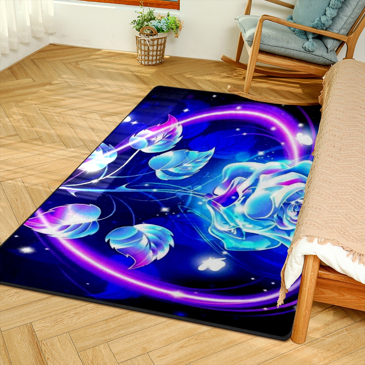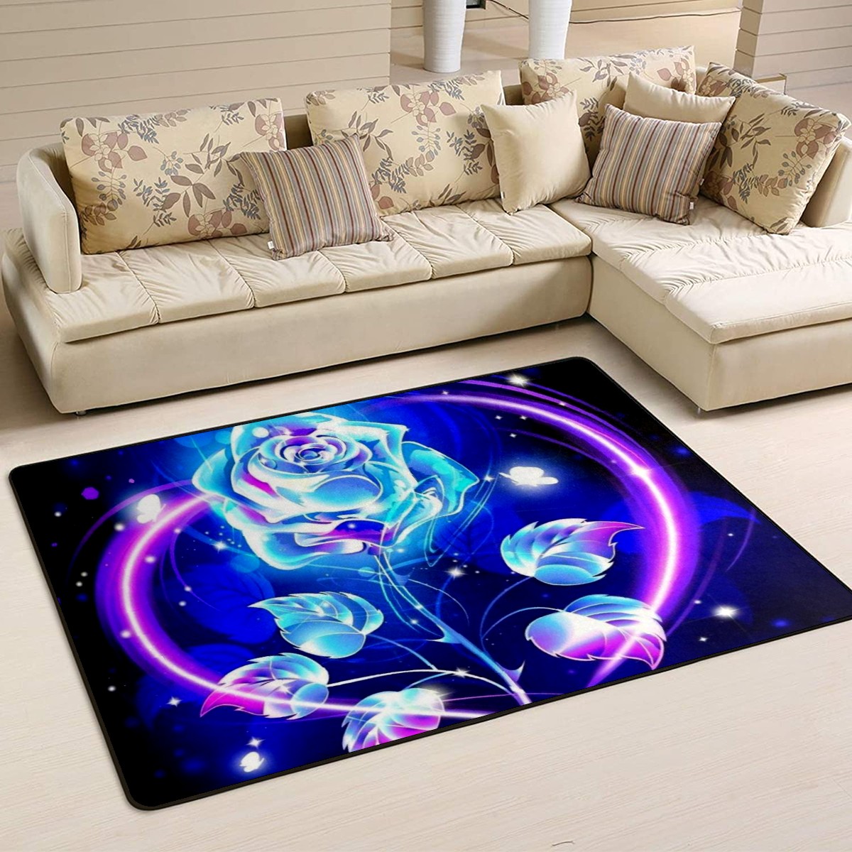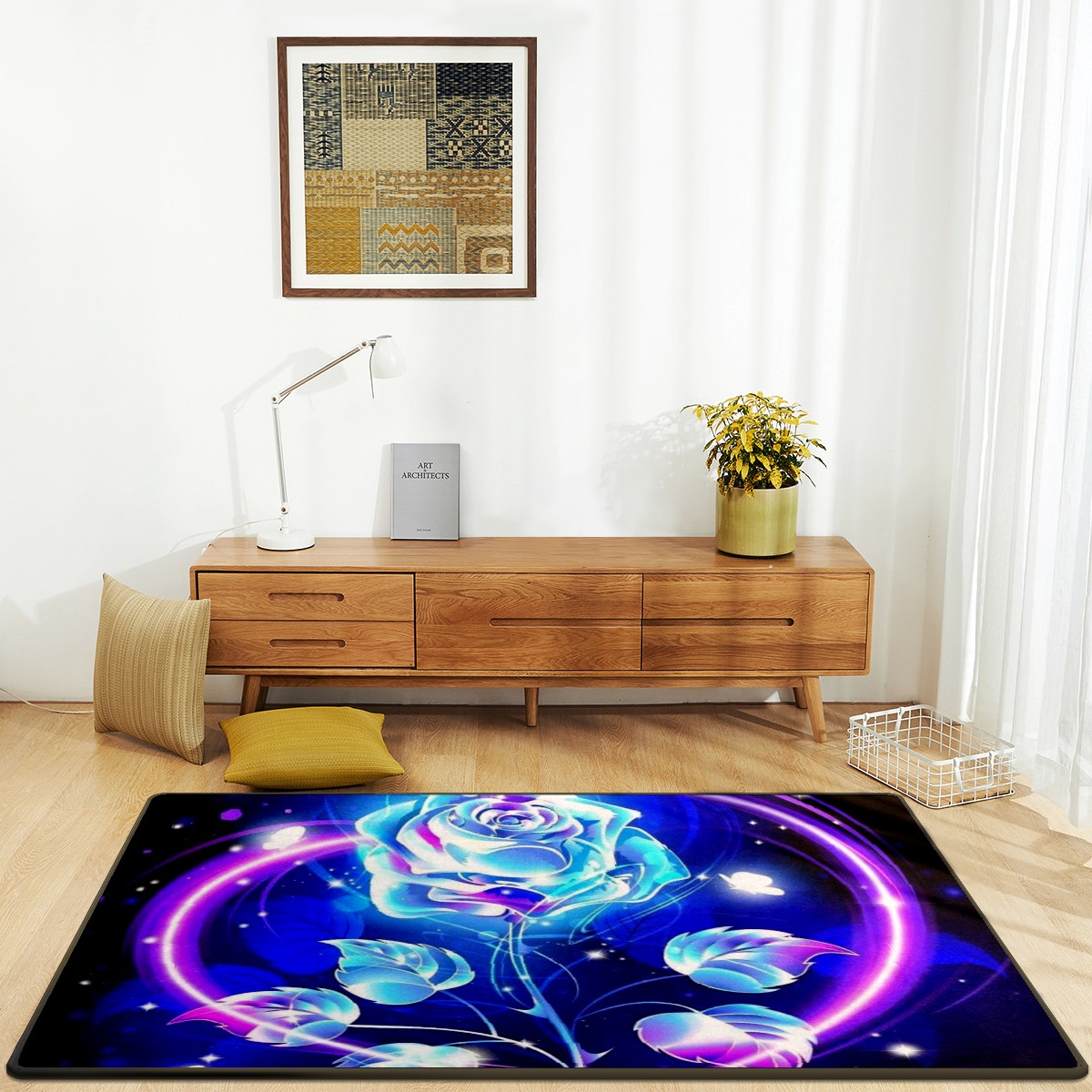 Magic Rose Flower Purple Area Rug Non-Slip Carpet Large Soft Floor Mat Doormats Modern Living Room Nursery Rugs for Indoor Outdoor Bedroom Kitchen Home Decoration (5'x3'3'')