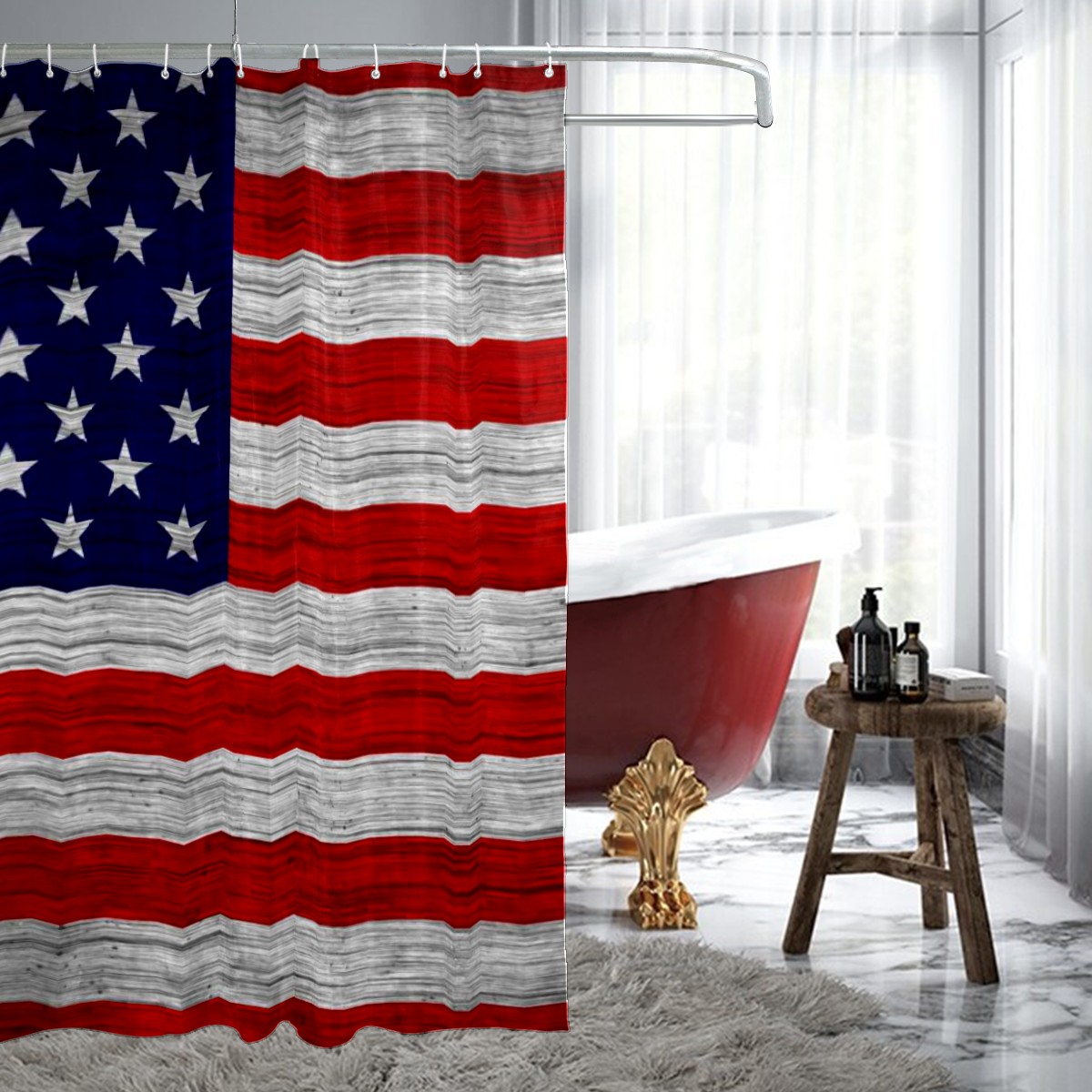 USA American Flag Shower Curtain Waterproof Bathroom Shower Curtains for Hotel Bathtub Bathroom Decor Curtains with 12pcs Hooks, 60x72 inch