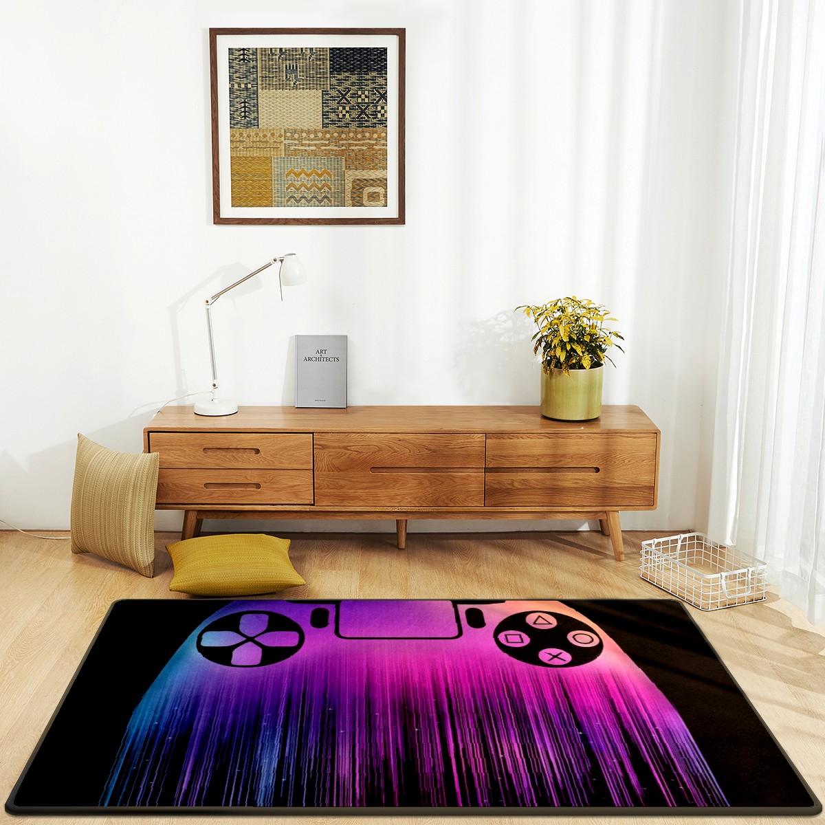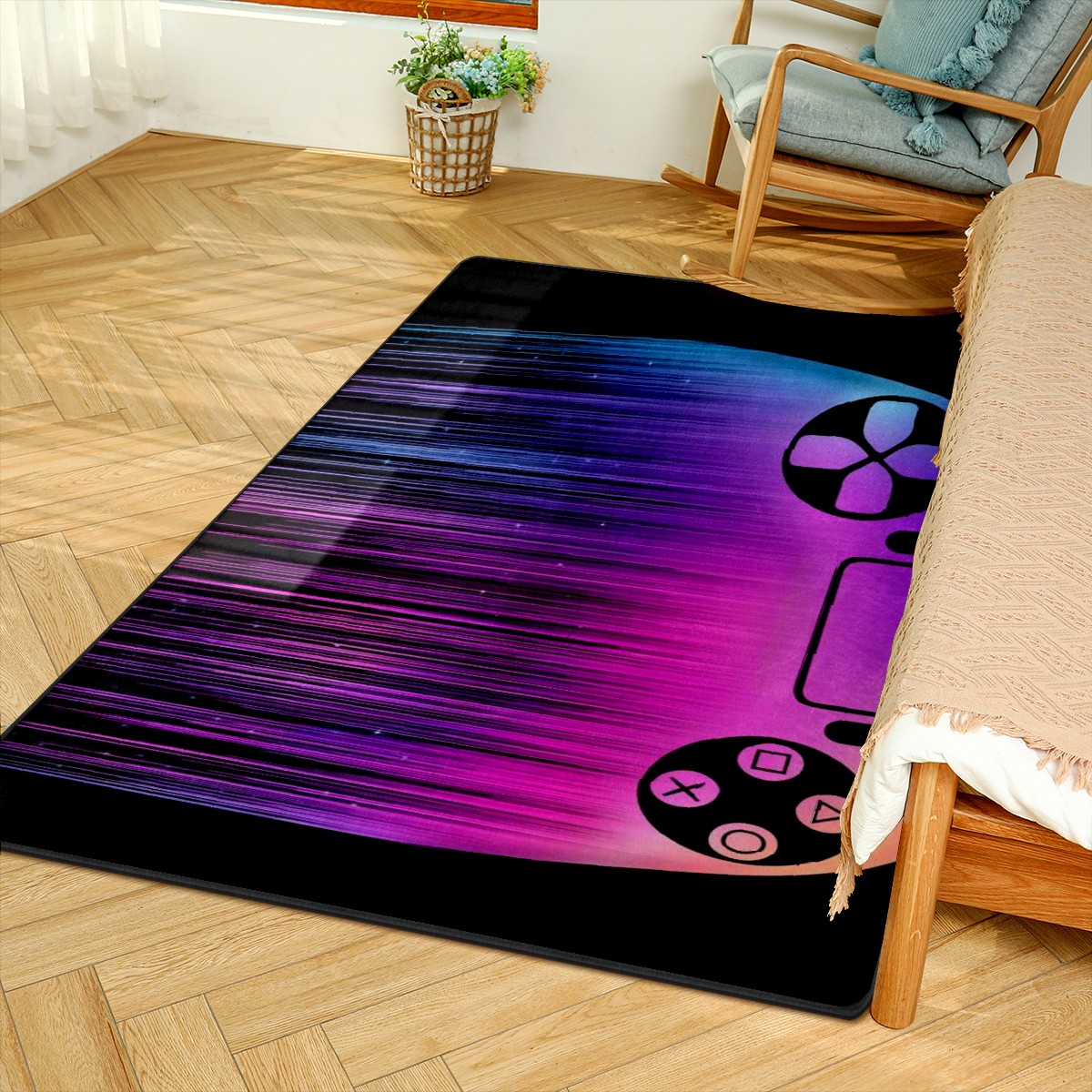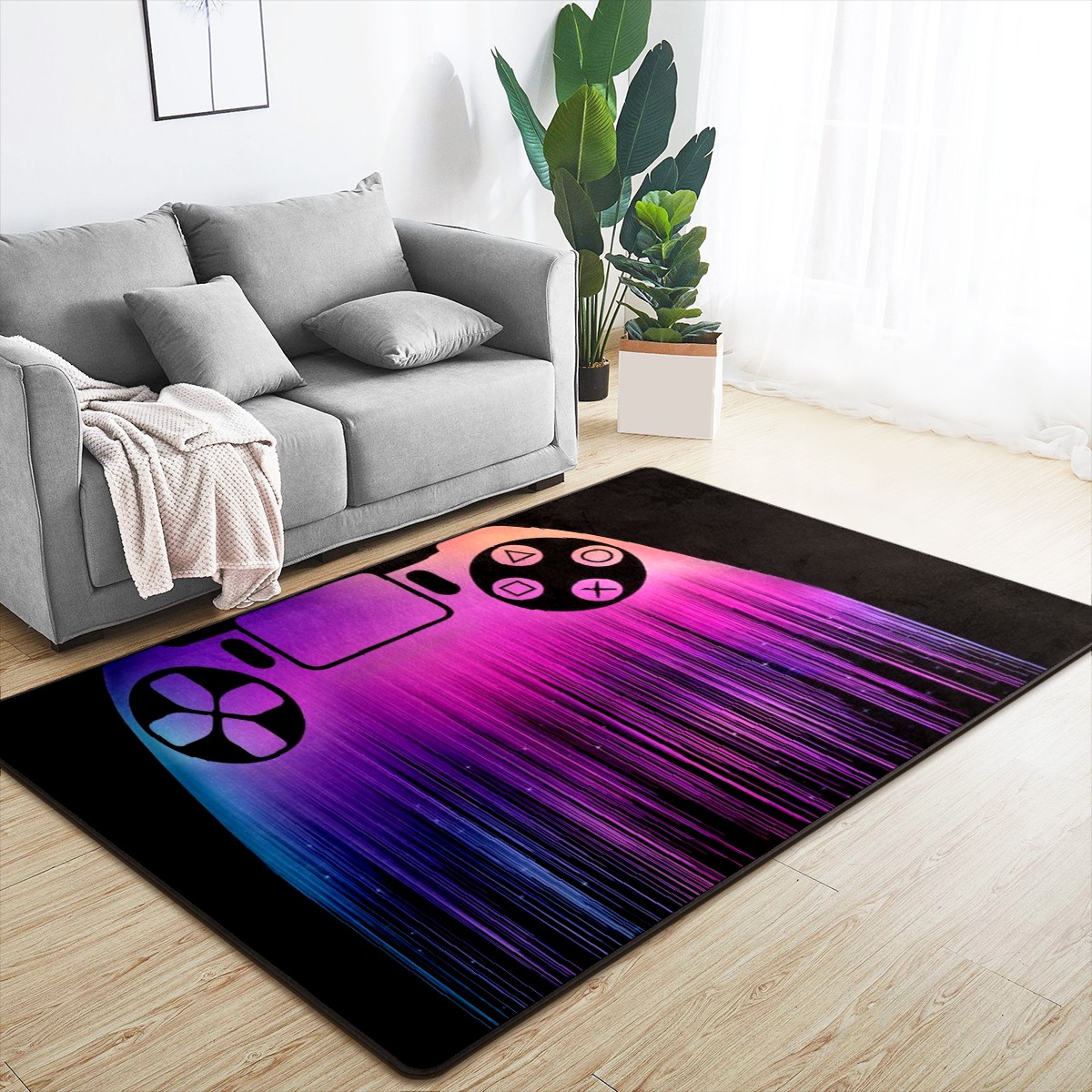 Purple Gamer Controller Area Rug Non-Slip Carpet Large Soft Floor Mat Doormats Modern Living Room Nursery Rugs for Indoor Outdoor Bedroom Kitchen Home Decoration (5'x3'3'')