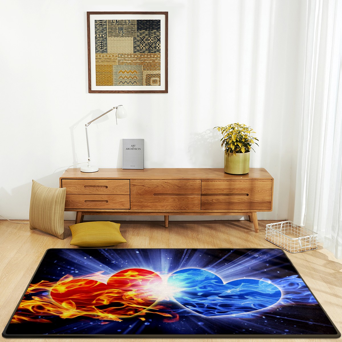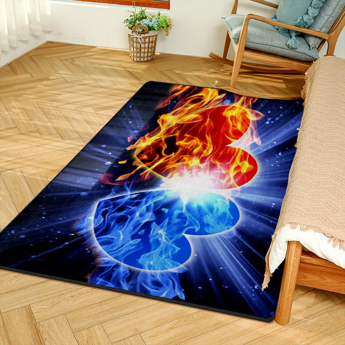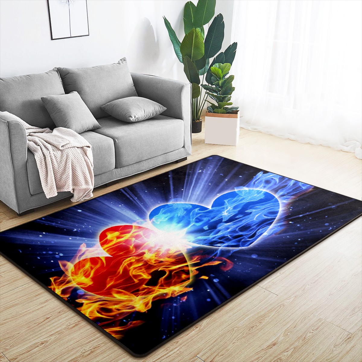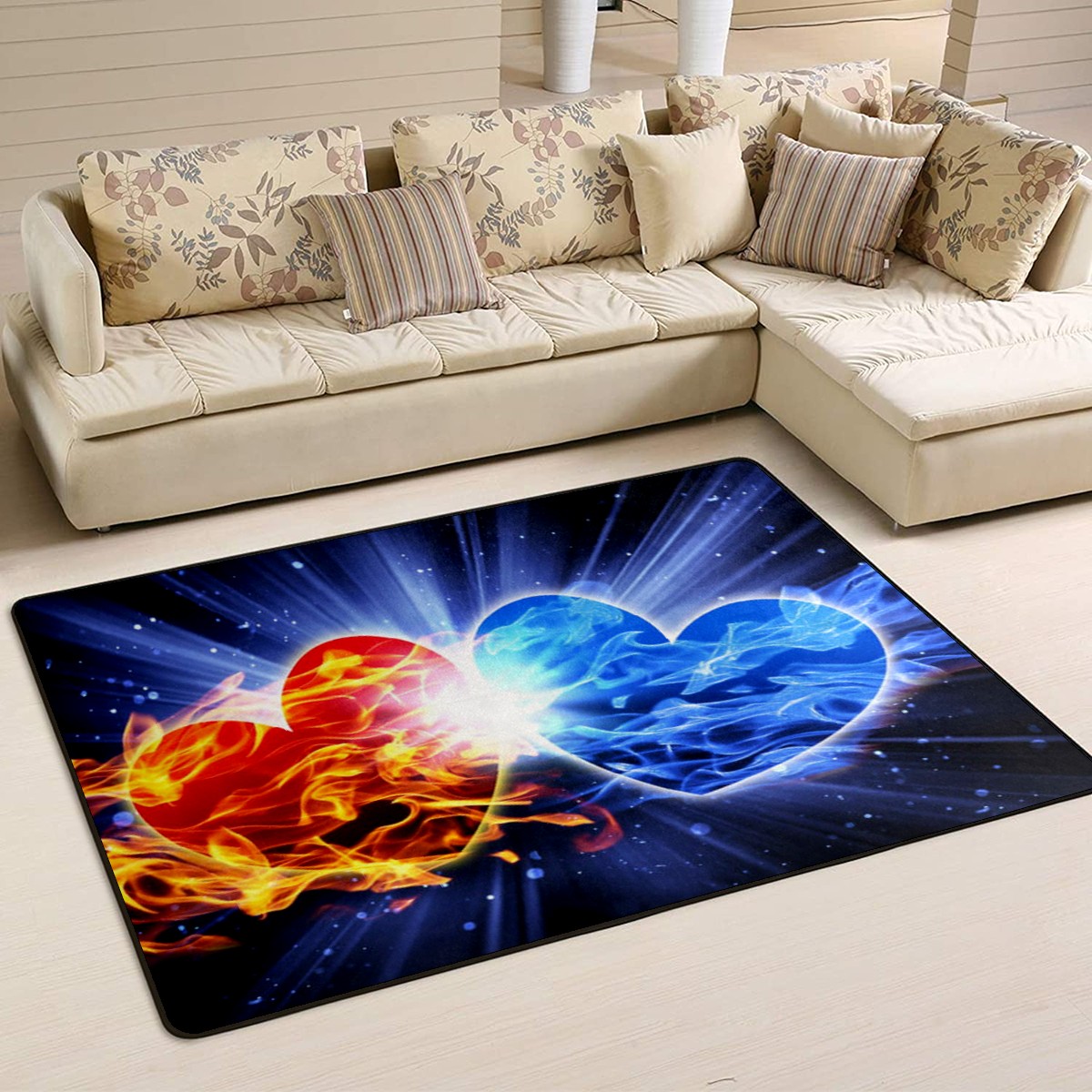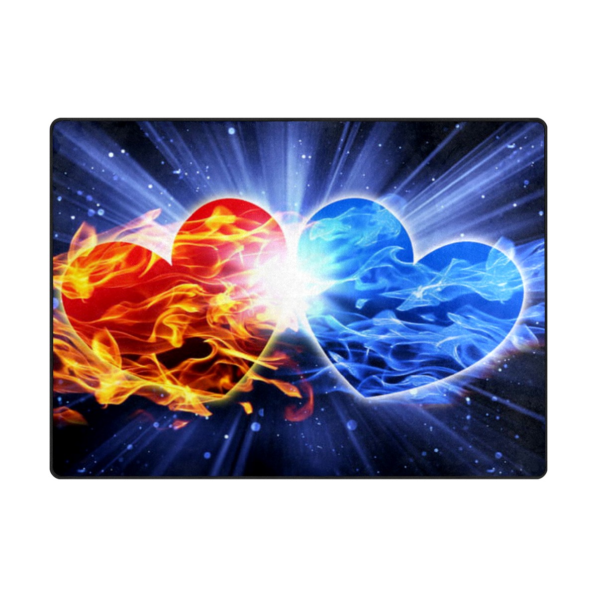 Ice Fire Heart Area Rug Non-Slip Carpet Large Soft Floor Mat Doormats Modern Living Room Nursery Rugs for Indoor Outdoor Bedroom Kitchen Home Decoration (5'x3'3'')