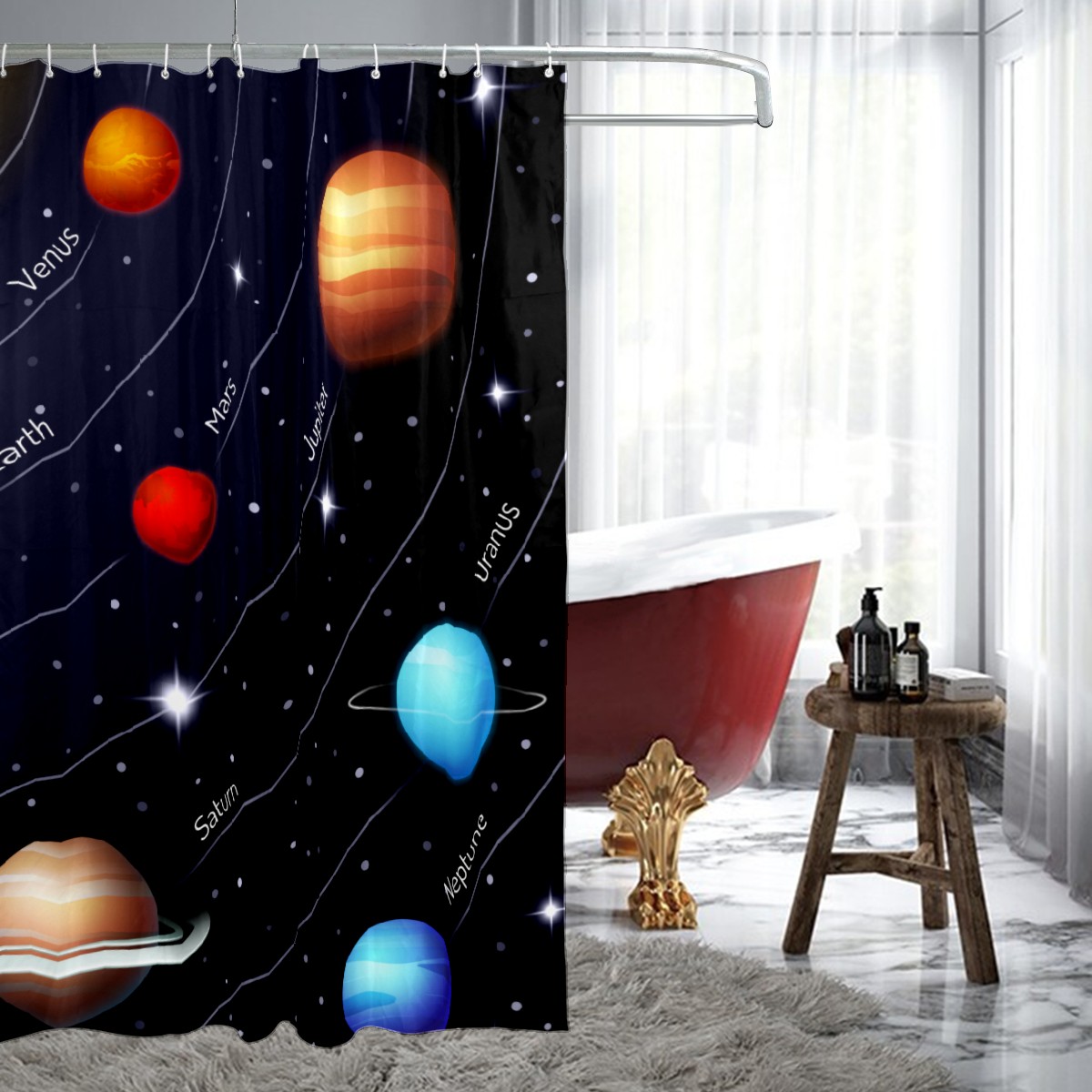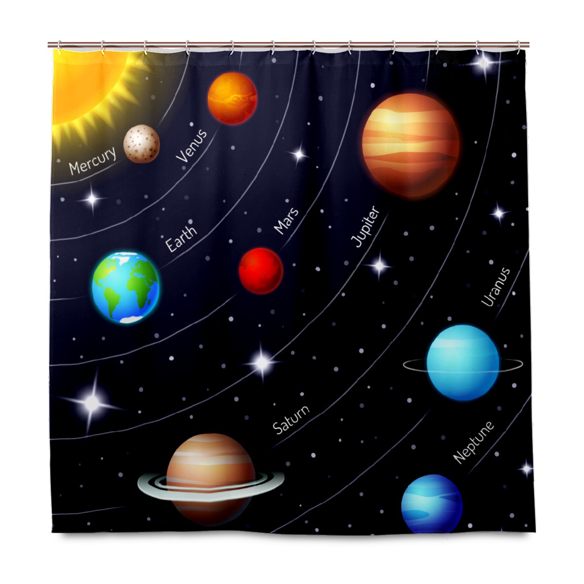 Universe Solar System Sun Earth Planet Shower Curtain Waterproof Bathroom Shower Curtains for Hotel Bathtub Bathroom Decor Curtains with 12pcs Hooks, 60x72 inch