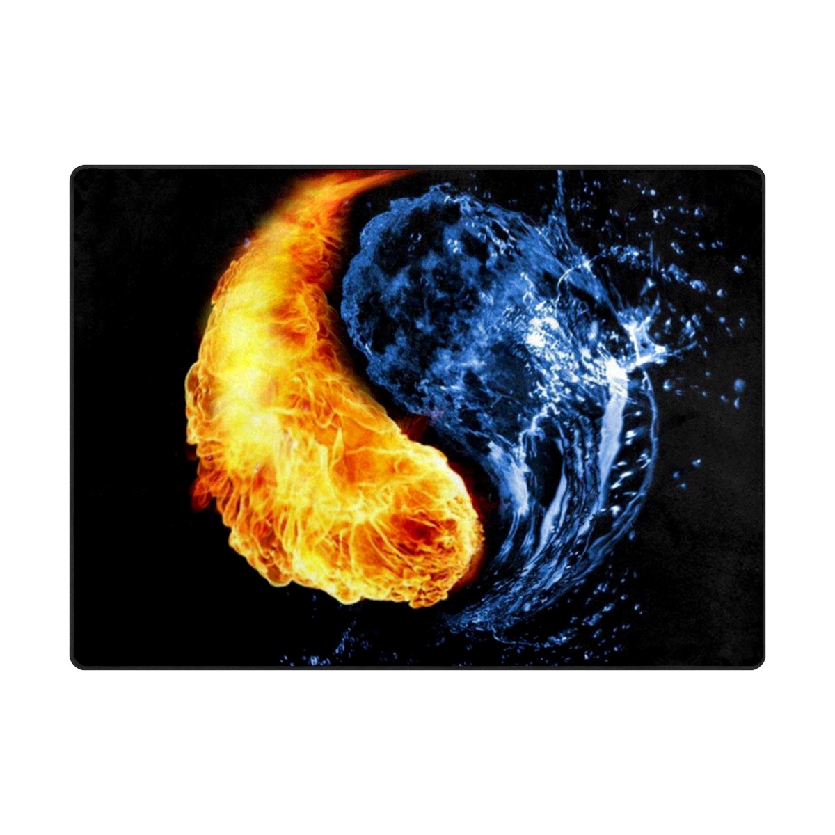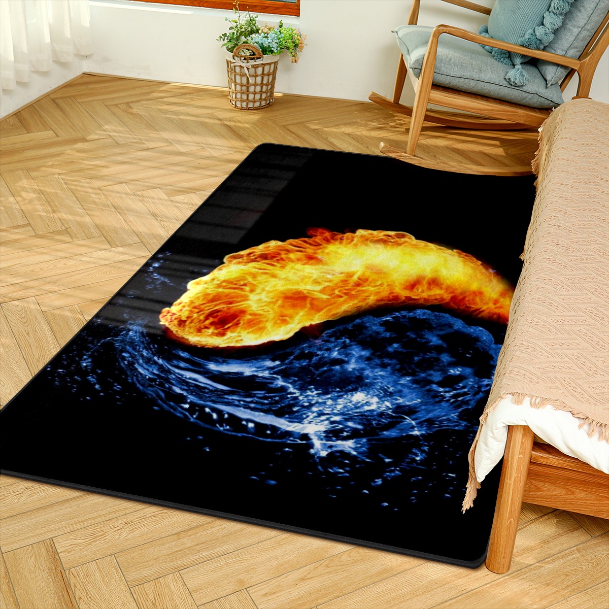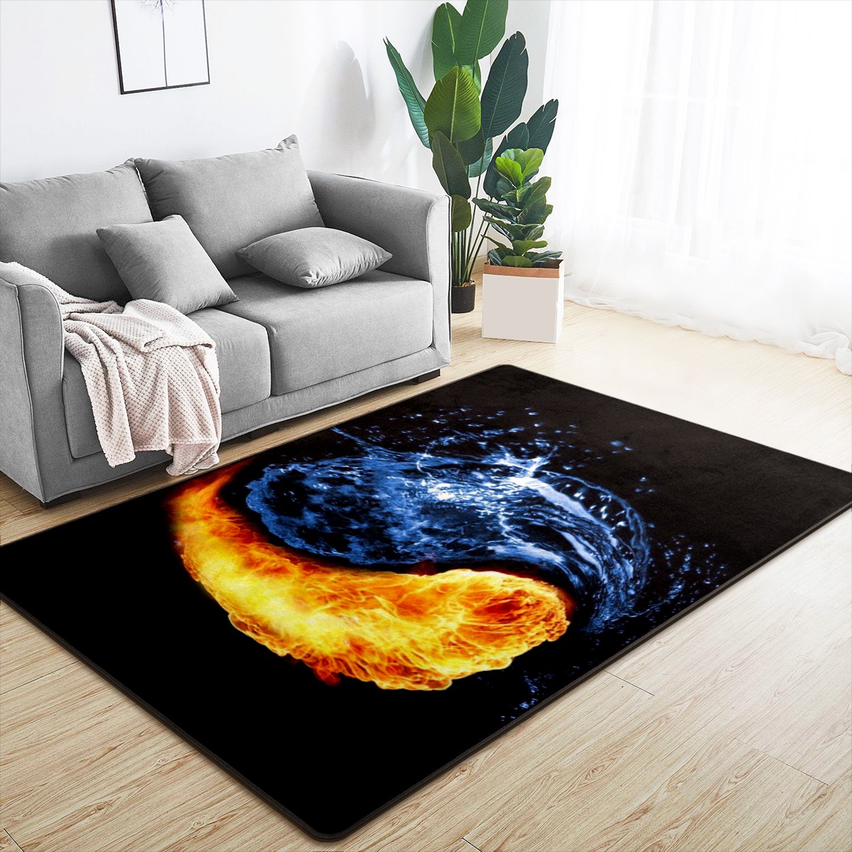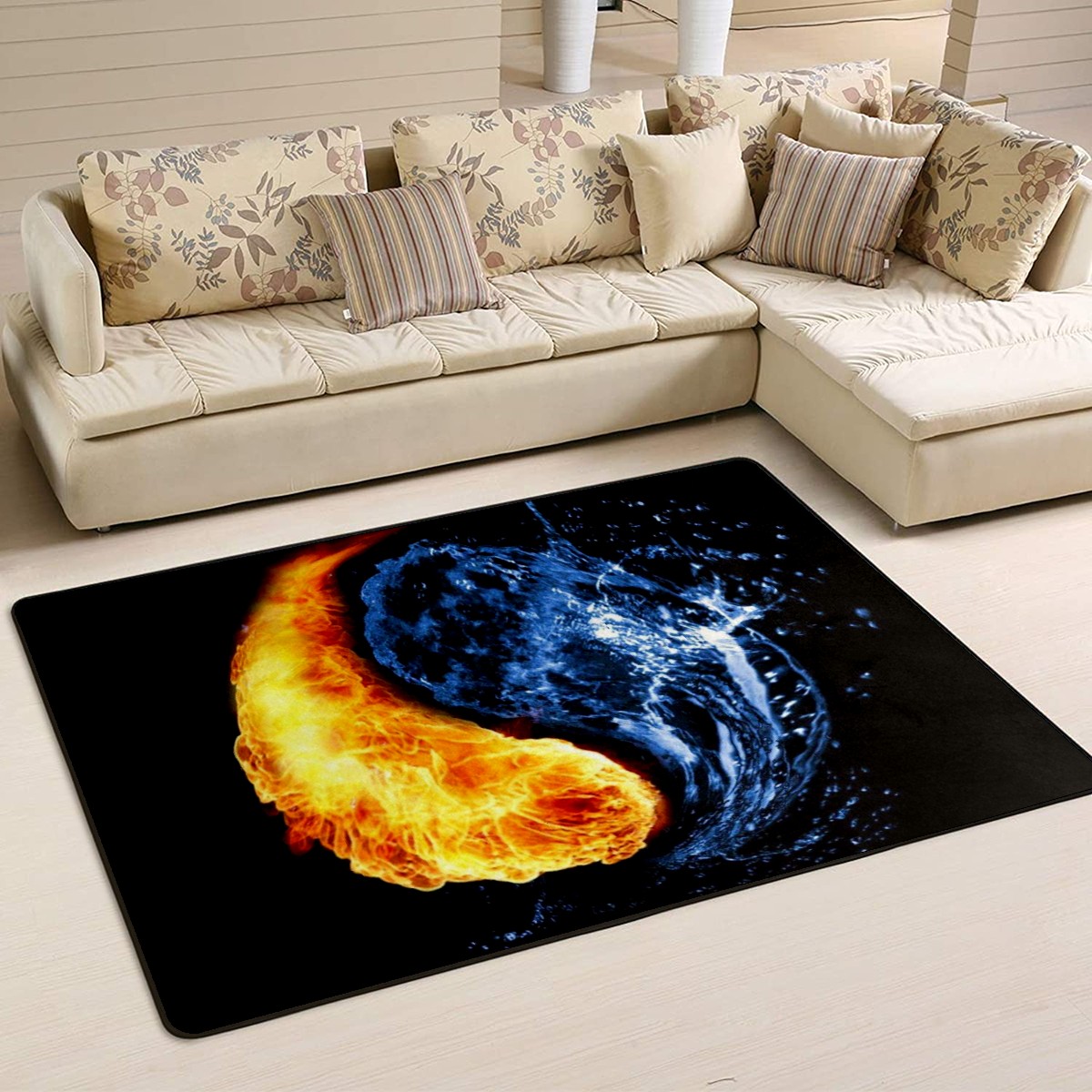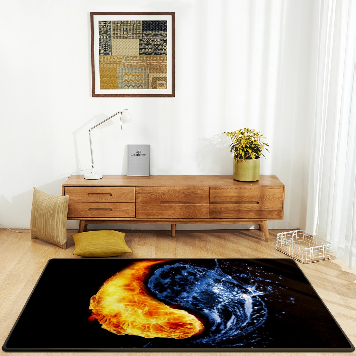 Ice Fire Tai Chi Bagua Area Rug Non-Slip Carpet Large Soft Floor Mat Doormats Modern Living Room Nursery Rugs for Indoor Outdoor Bedroom Kitchen Home Decoration (5'x3'3'')