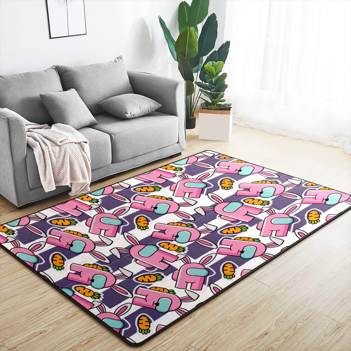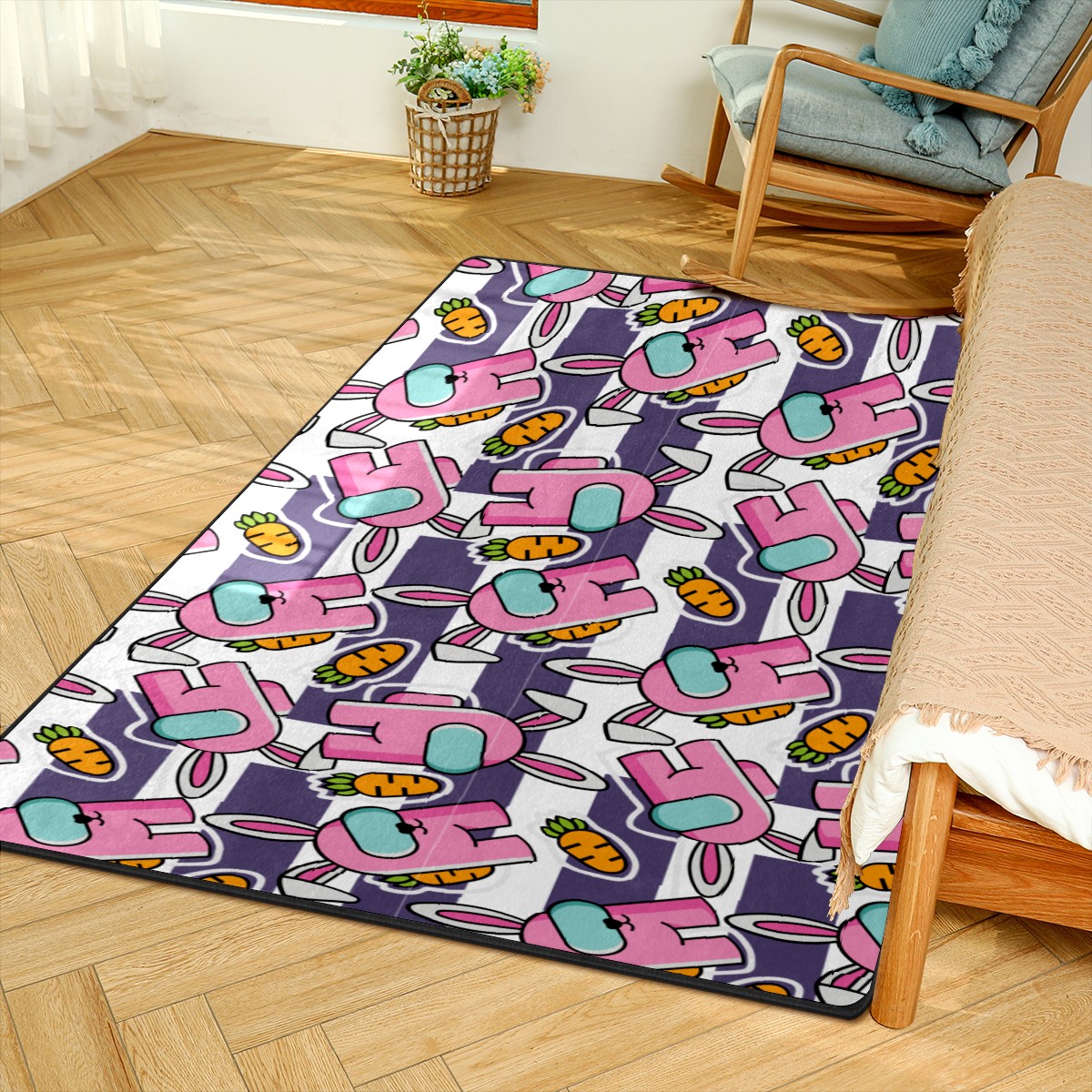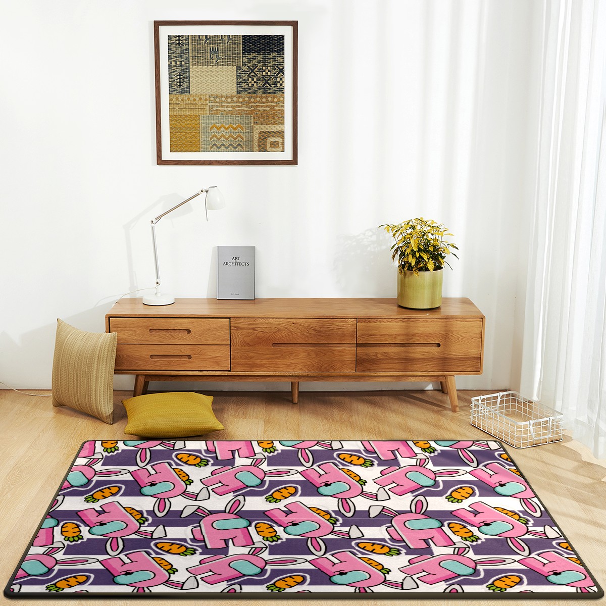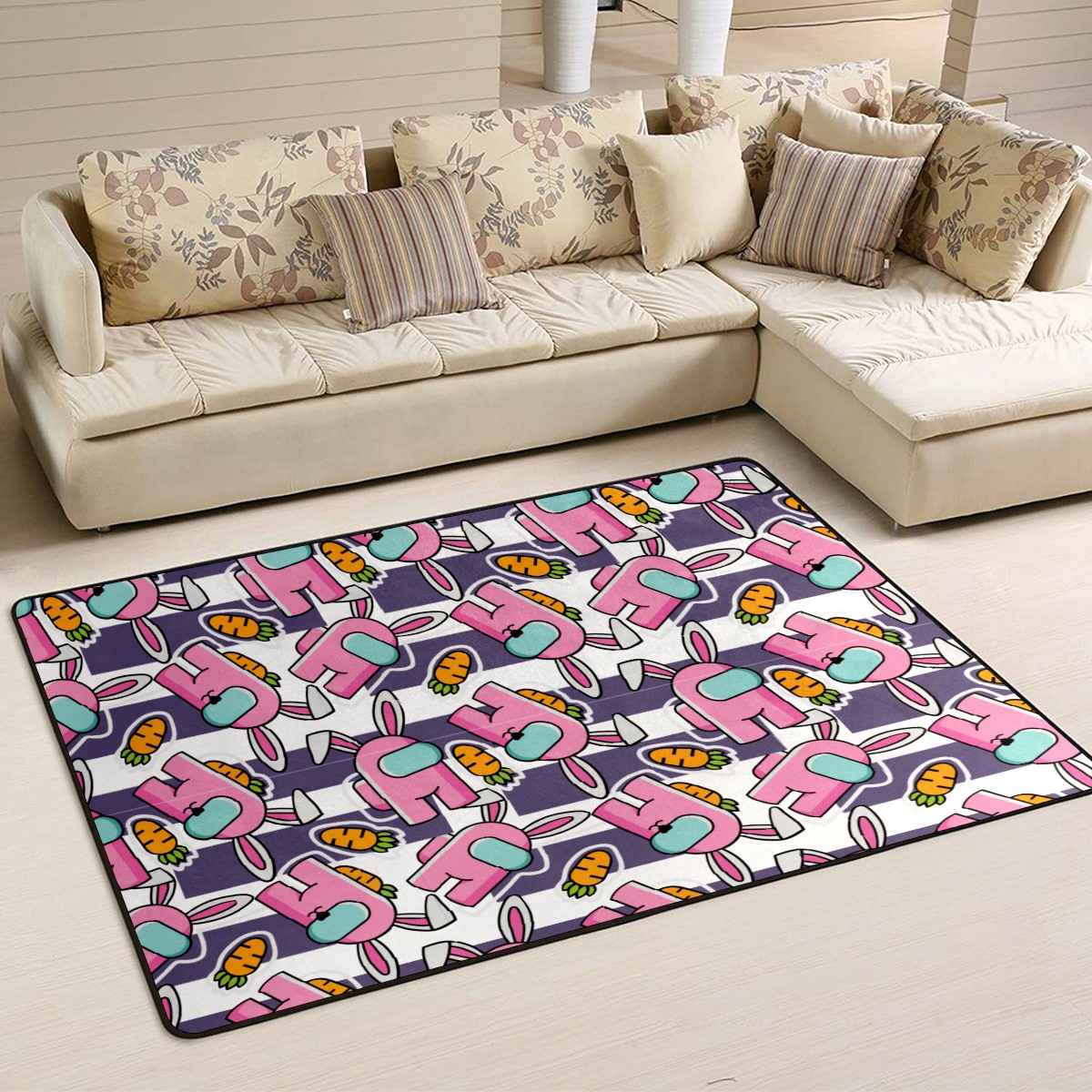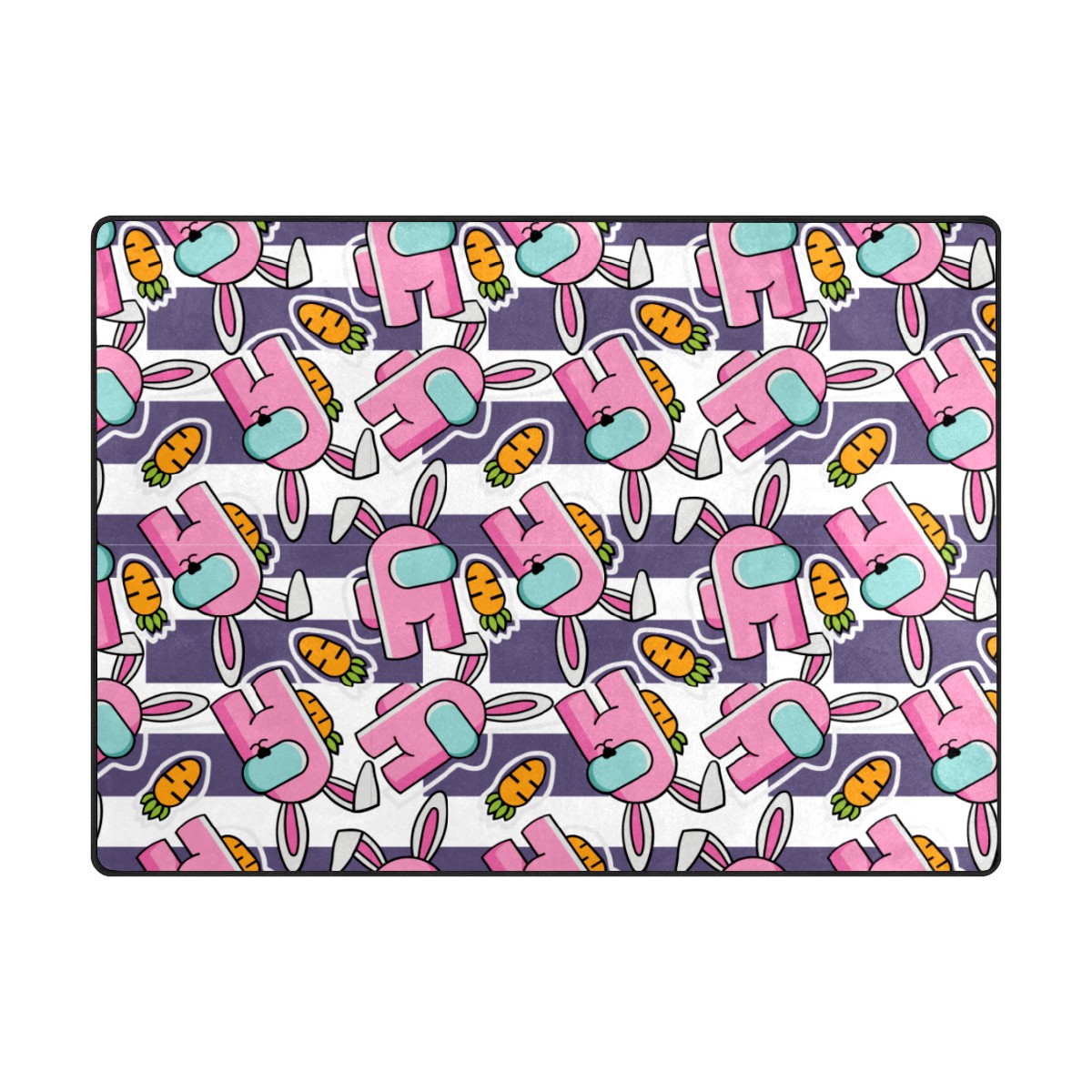 Cute Bunny Among Us Carrot Area Rug Non-Slip Carpet Large Soft Floor Mat Doormats Modern Living Room Nursery Rugs for Indoor Outdoor Bedroom Kitchen Home Decoration (5'x3'3'')