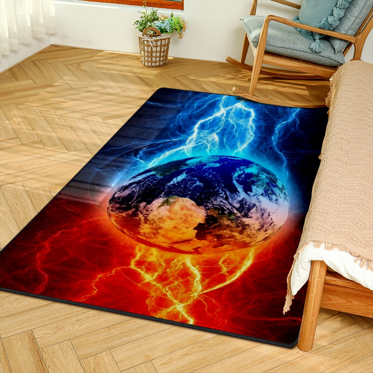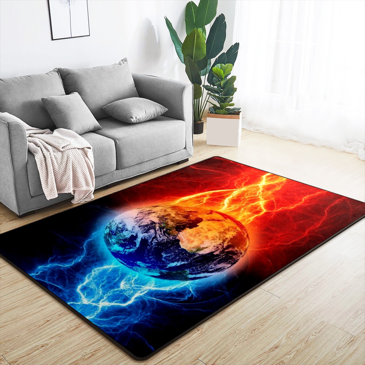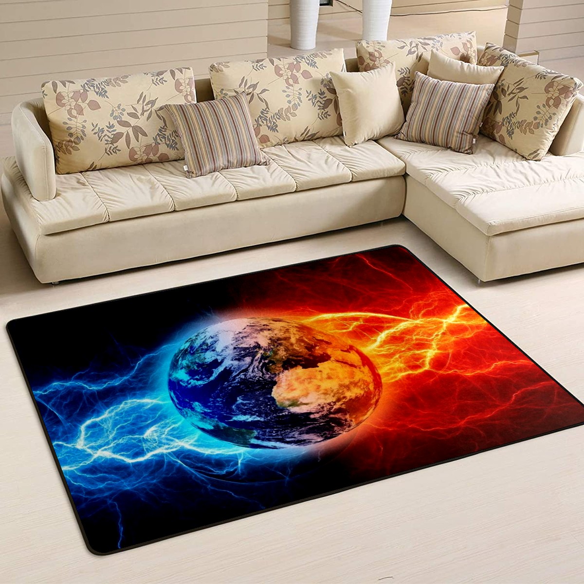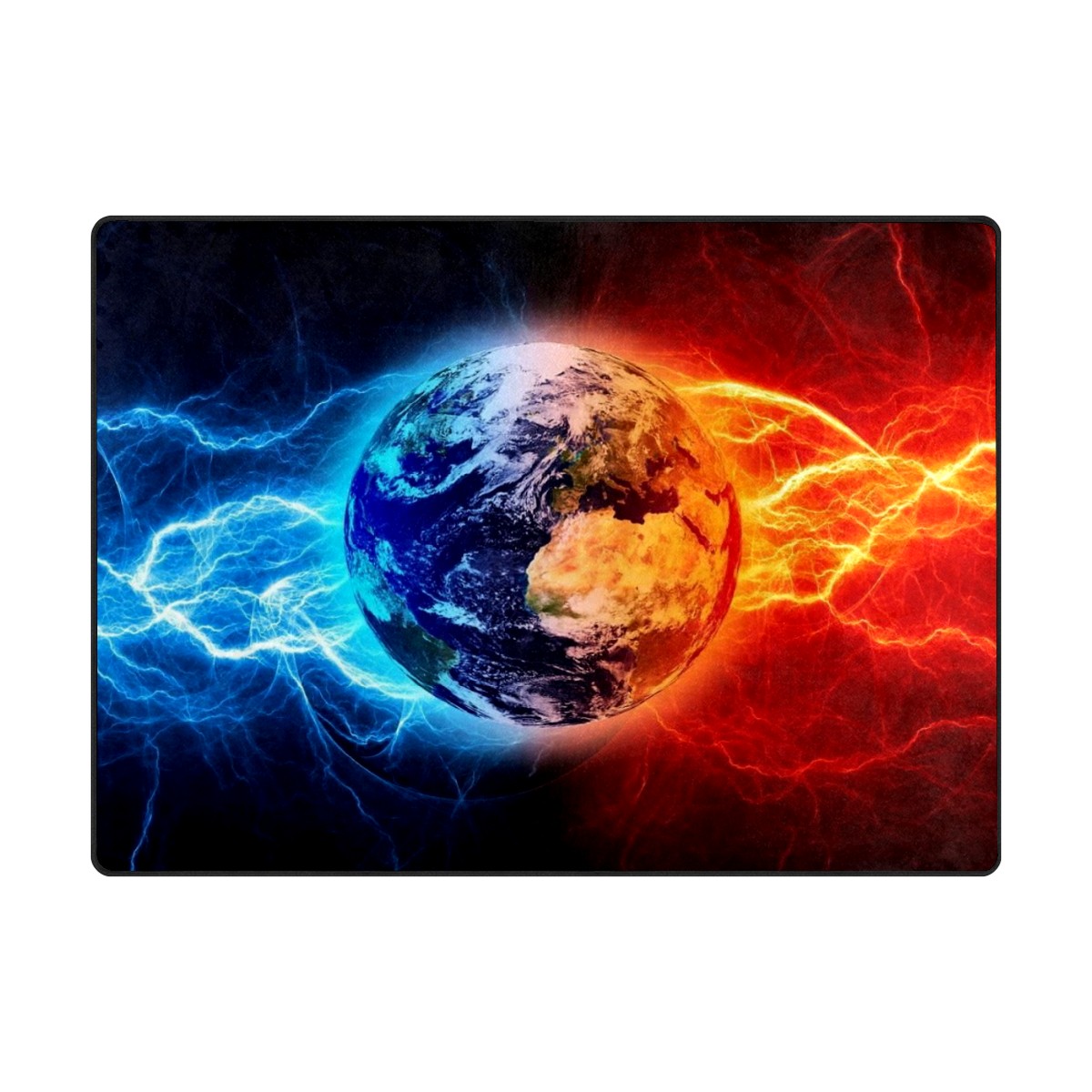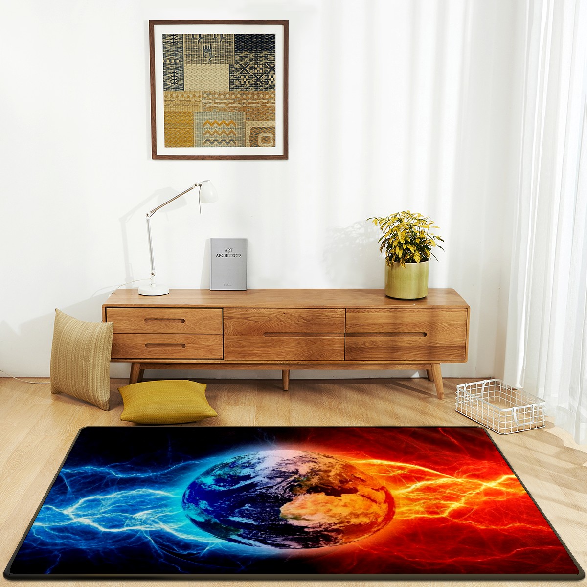Ice And Fire Earth Area Rug Non-Slip Carpet Large Soft Floor Mat Doormats Modern Living Room Nursery Rugs for Indoor Outdoor Bedroom Kitchen Home Decoration (5'x3'3'')
