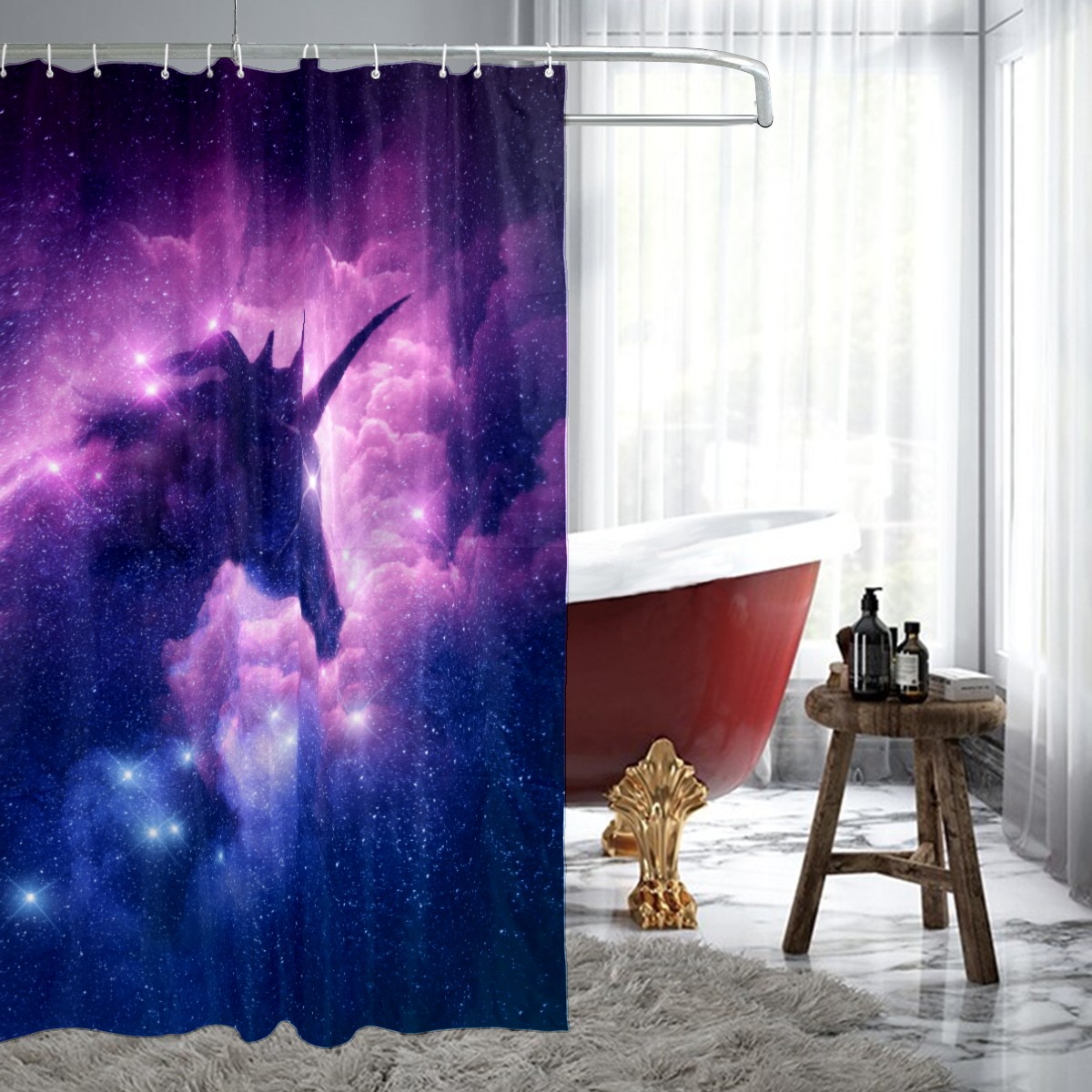 Unicorn Galaxy Abstract Starry Universe Shower Curtain Waterproof Bathroom Shower Curtains for Hotel Bathtub Bathroom Decor Curtains with 12pcs Hooks, 60x72 inch