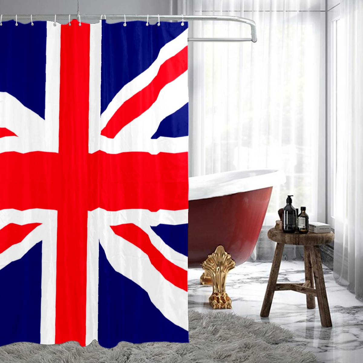 UK Flag Union Jack Shower Curtain Waterproof Bathroom Shower Curtains for Hotel Bathtub Bathroom Decor Curtains with 12pcs Hooks, 60x72 inch