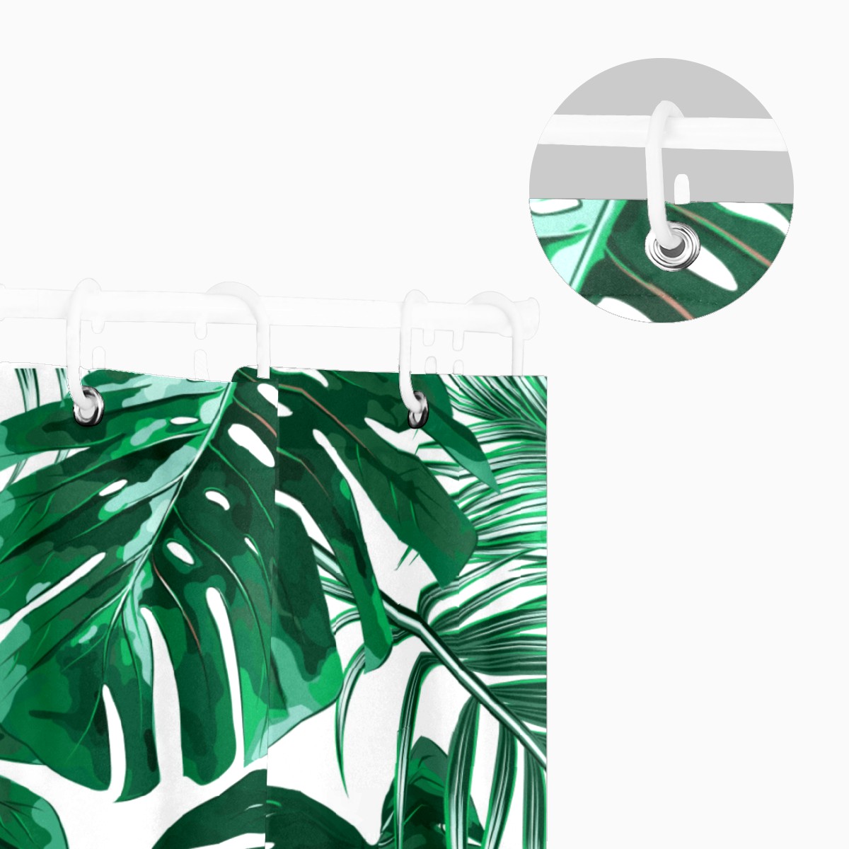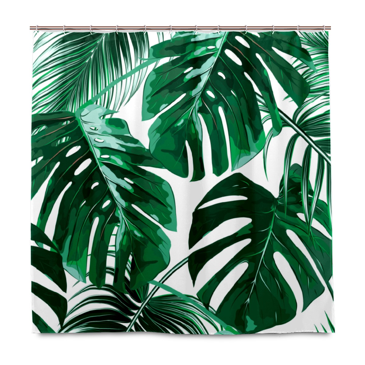 Tropical Palm Leaves Hawaii Summer Shower Curtain Waterproof Bathroom Shower Curtains for Hotel Bathtub Bathroom Decor Curtains with 12pcs Hooks, 60x72 inch