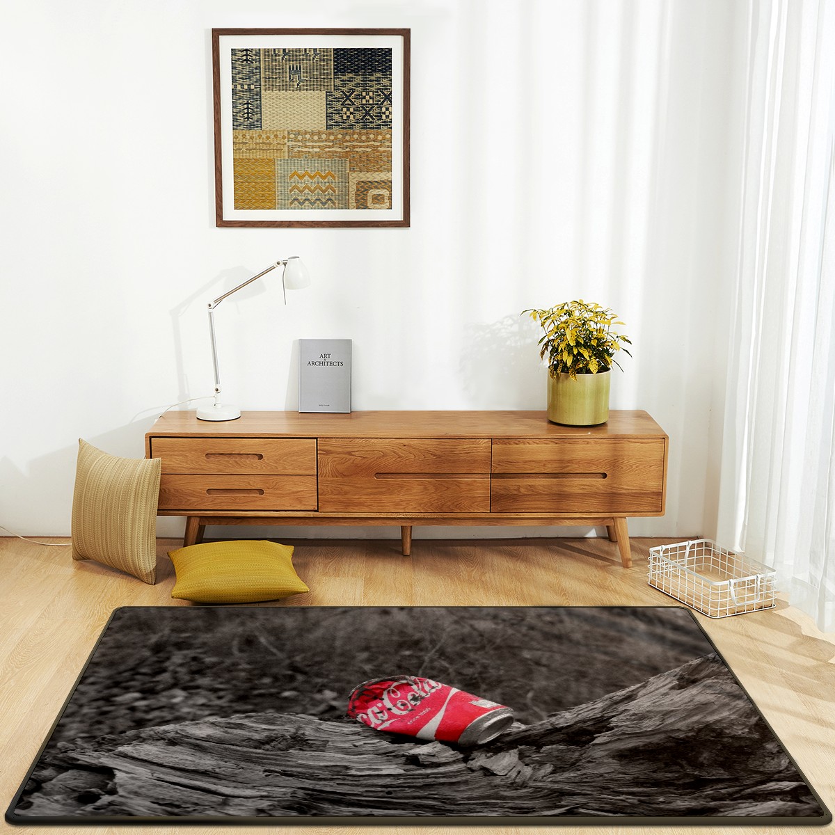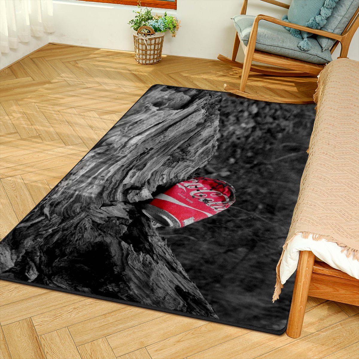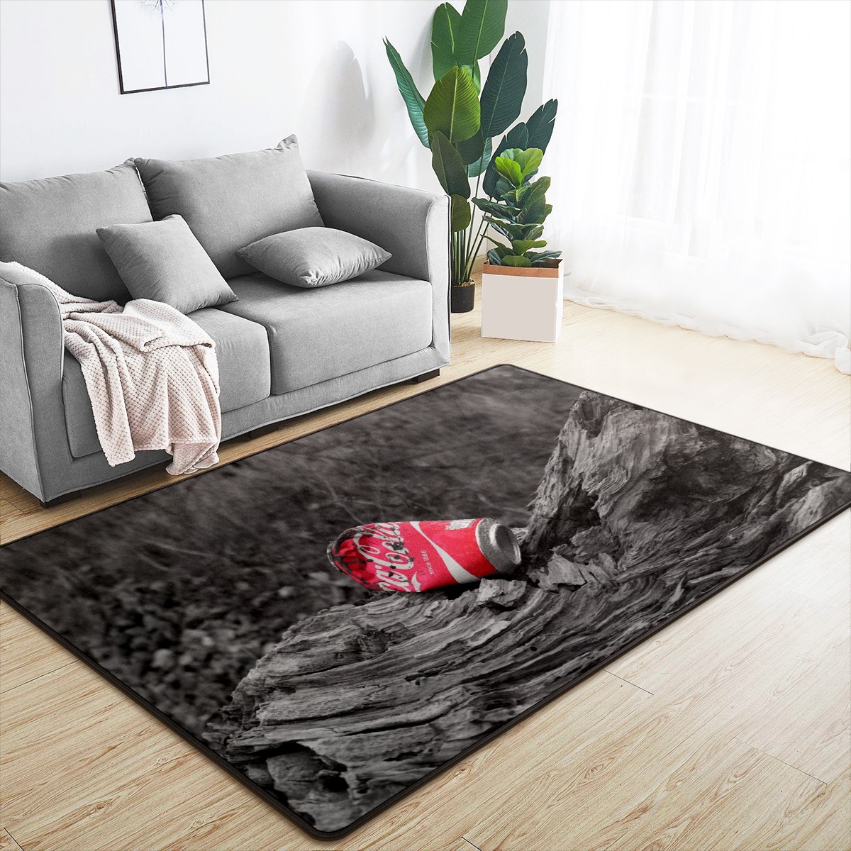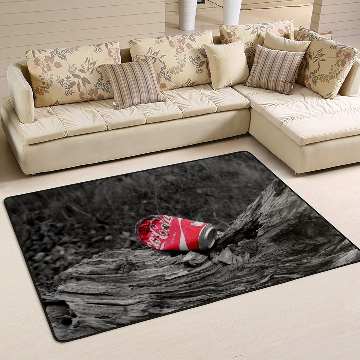 Coca Cola Can Rustic Wood Area Rug Non-Slip Carpet Large Soft Floor Mat Doormats Modern Living Room Nursery Rugs for Indoor Outdoor Bedroom Kitchen Home Decoration (5'x3'3'')