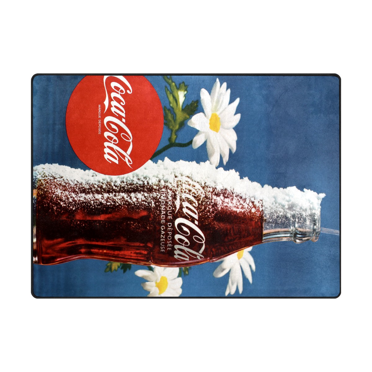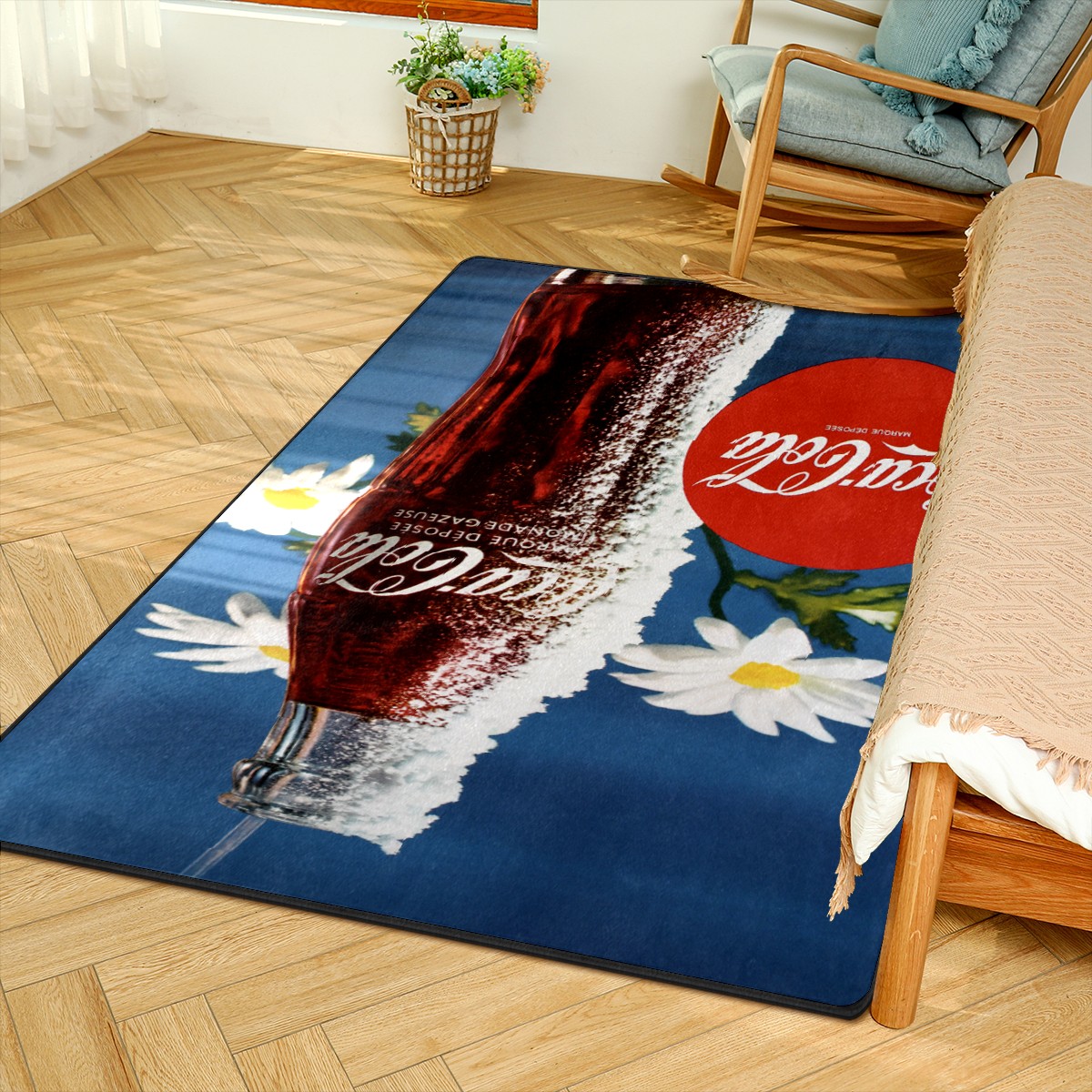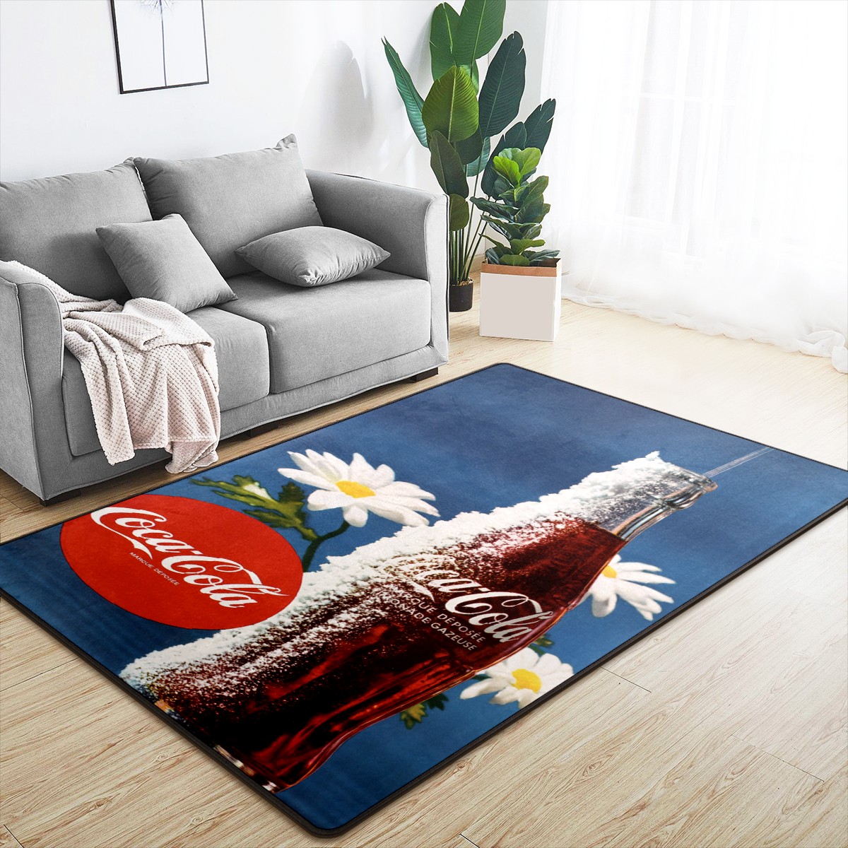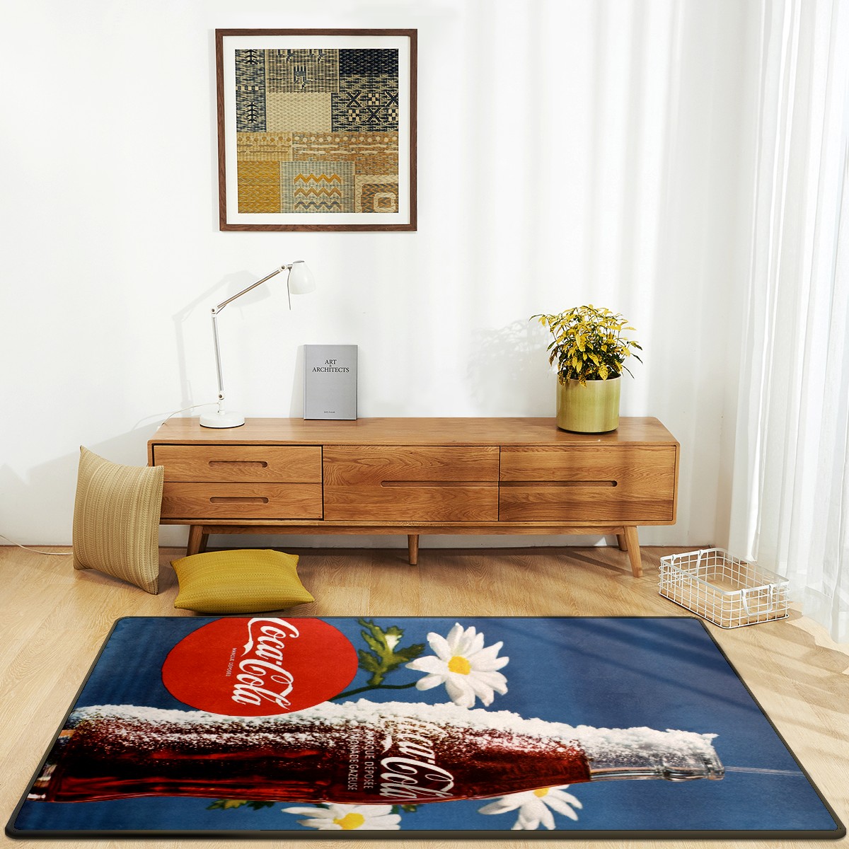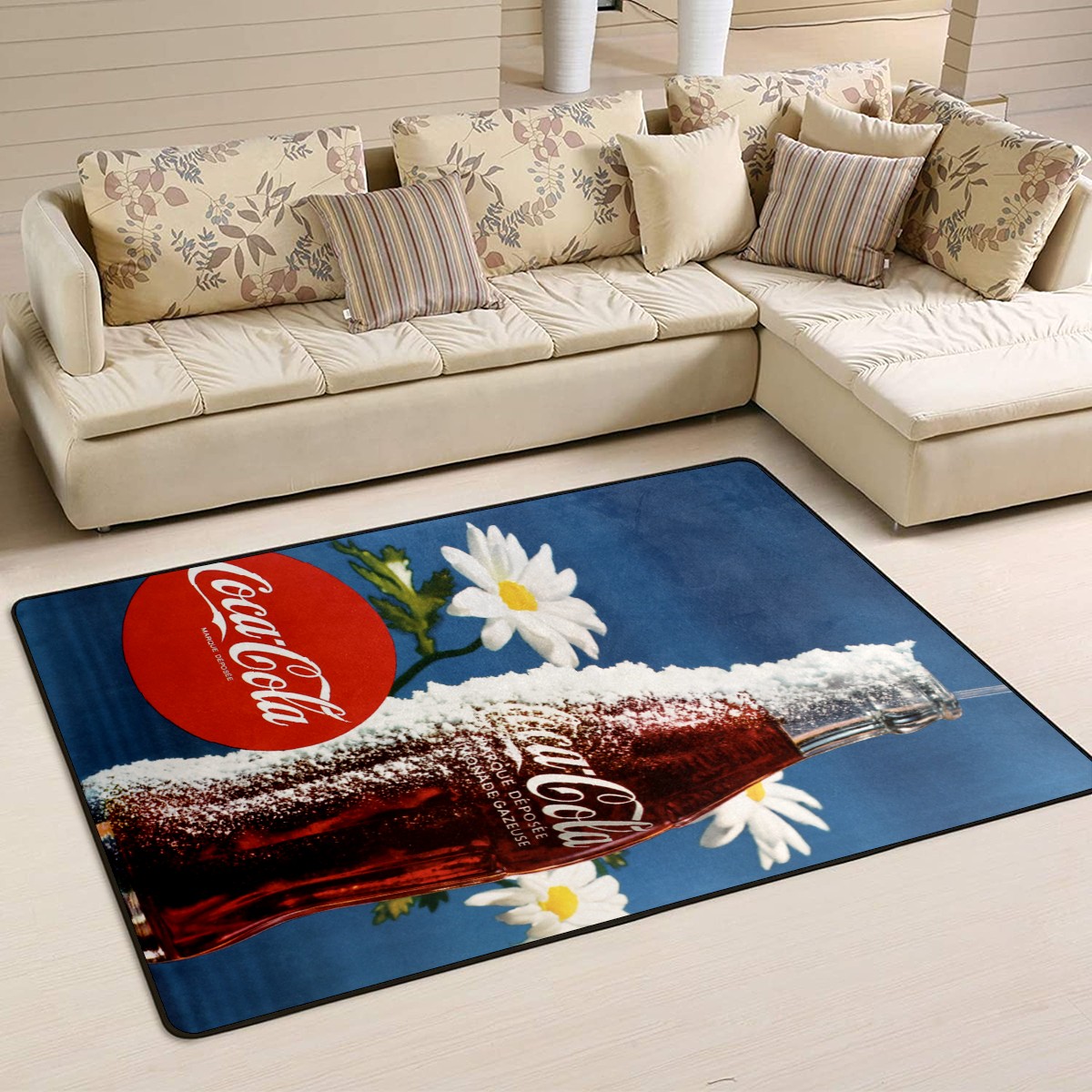 Coke Coca Cola Daisy Flower Area Rug Non-Slip Carpet Large Soft Floor Mat Doormats Modern Living Room Nursery Rugs for Indoor Outdoor Bedroom Kitchen Home Decoration (5'x3'3'')