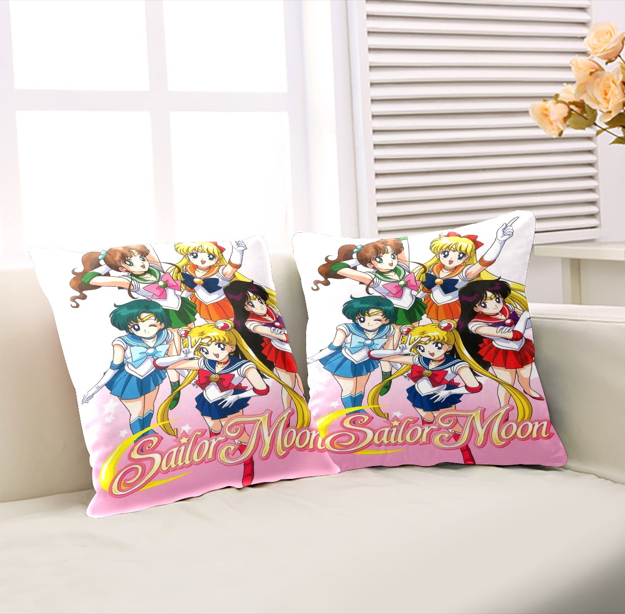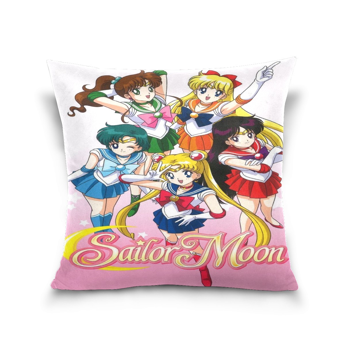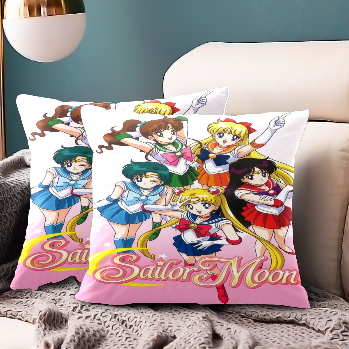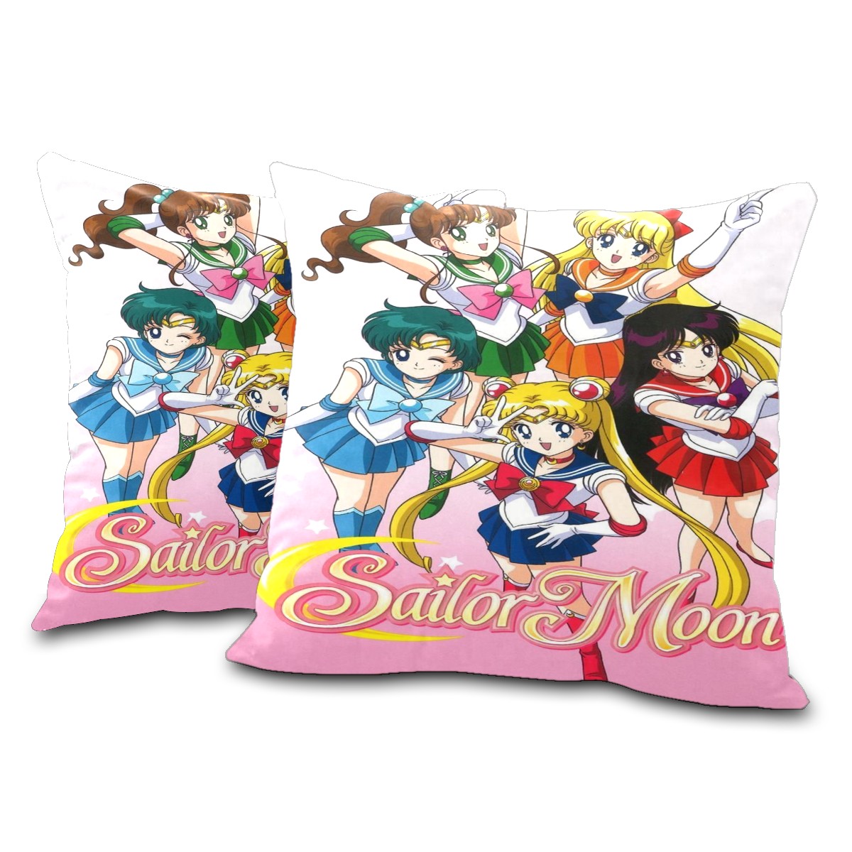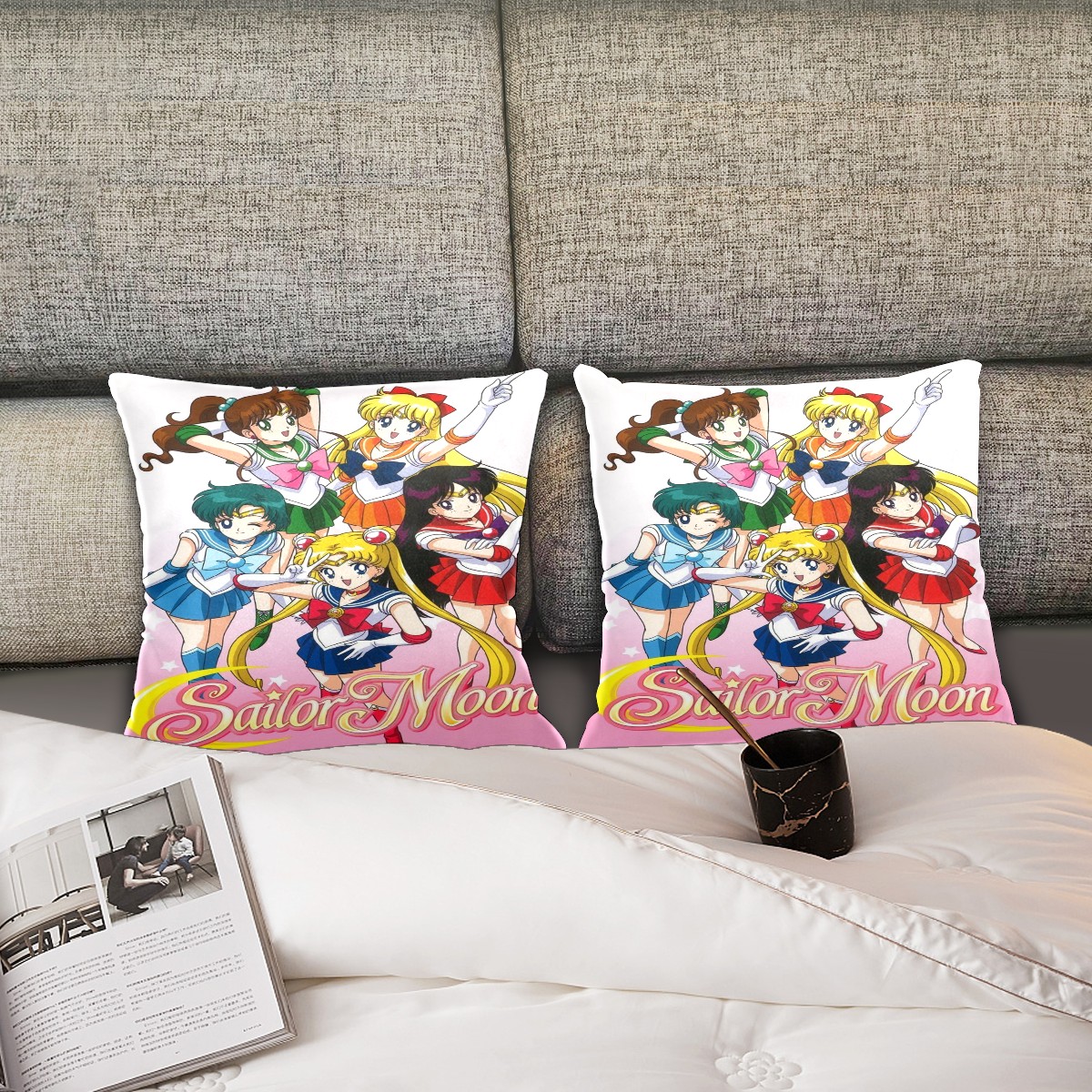 Custom Throw Pillow Cover 2pc Set Manga Anime Sailor Moon Velve Modern Home Decorative Square Soft Zipper Pillowcase Cushion Covers for Sofa Bedroom Couch Car Office 16 X 16 in