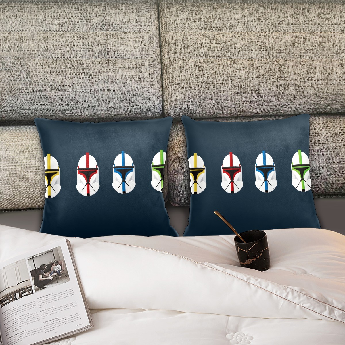 Custom Throw Pillow Cover 2pc Set Stars Wars Darth Vader Velve Modern Home Decorative Square Soft Zipper Pillowcase Cushion Covers for Sofa Bedroom Couch Car Office 16 X 16 in