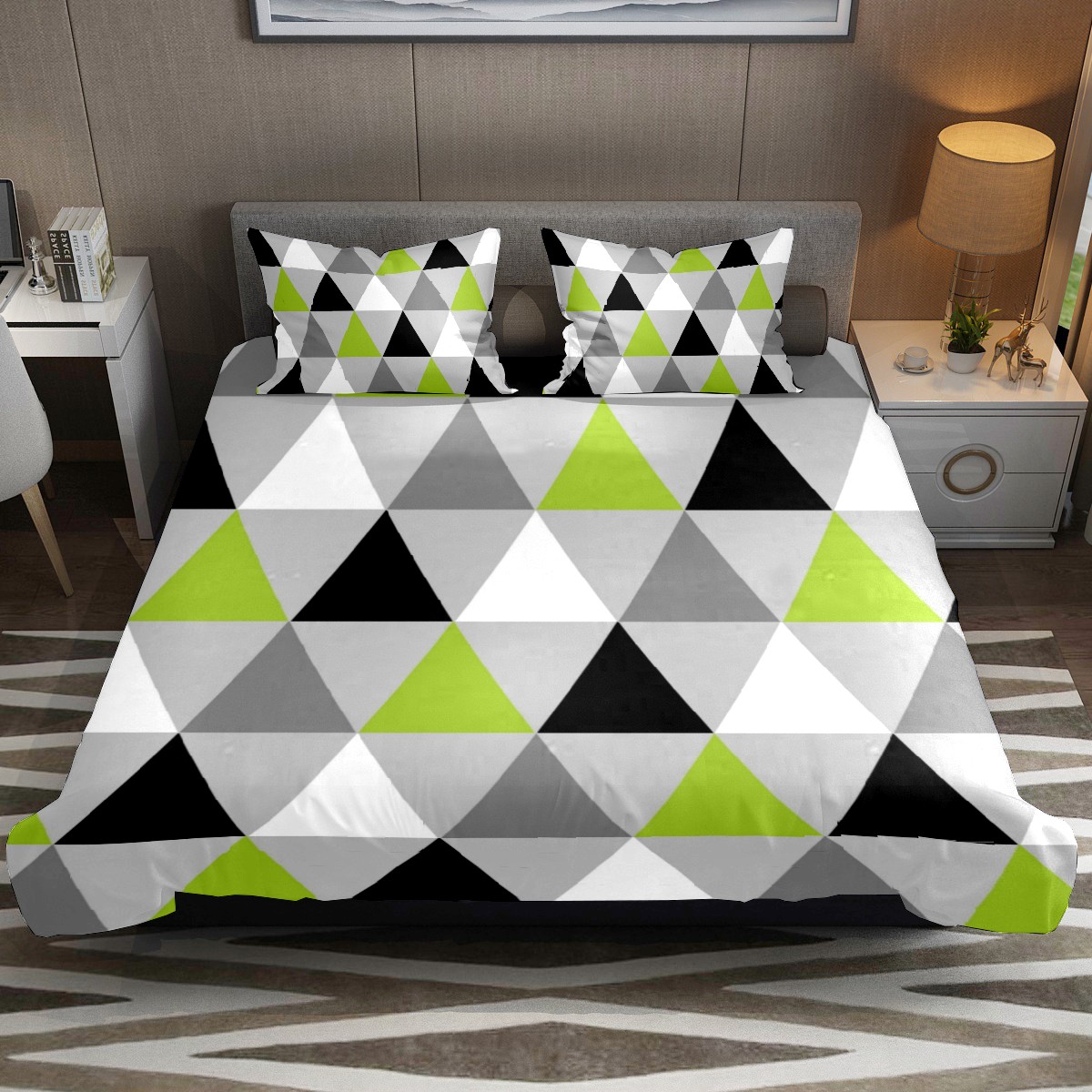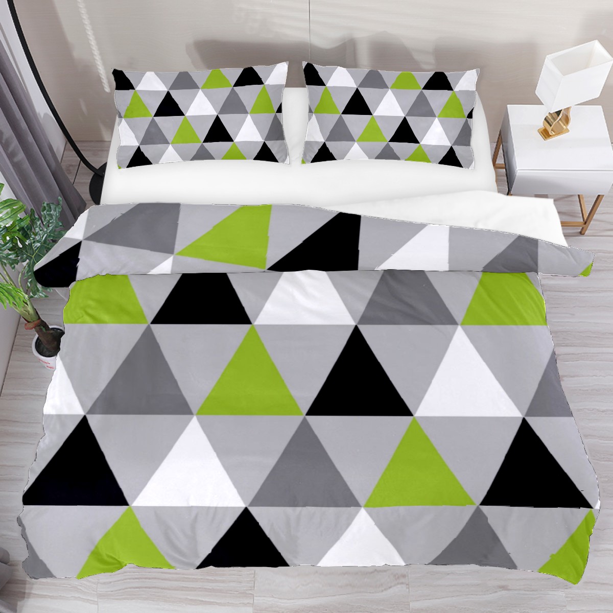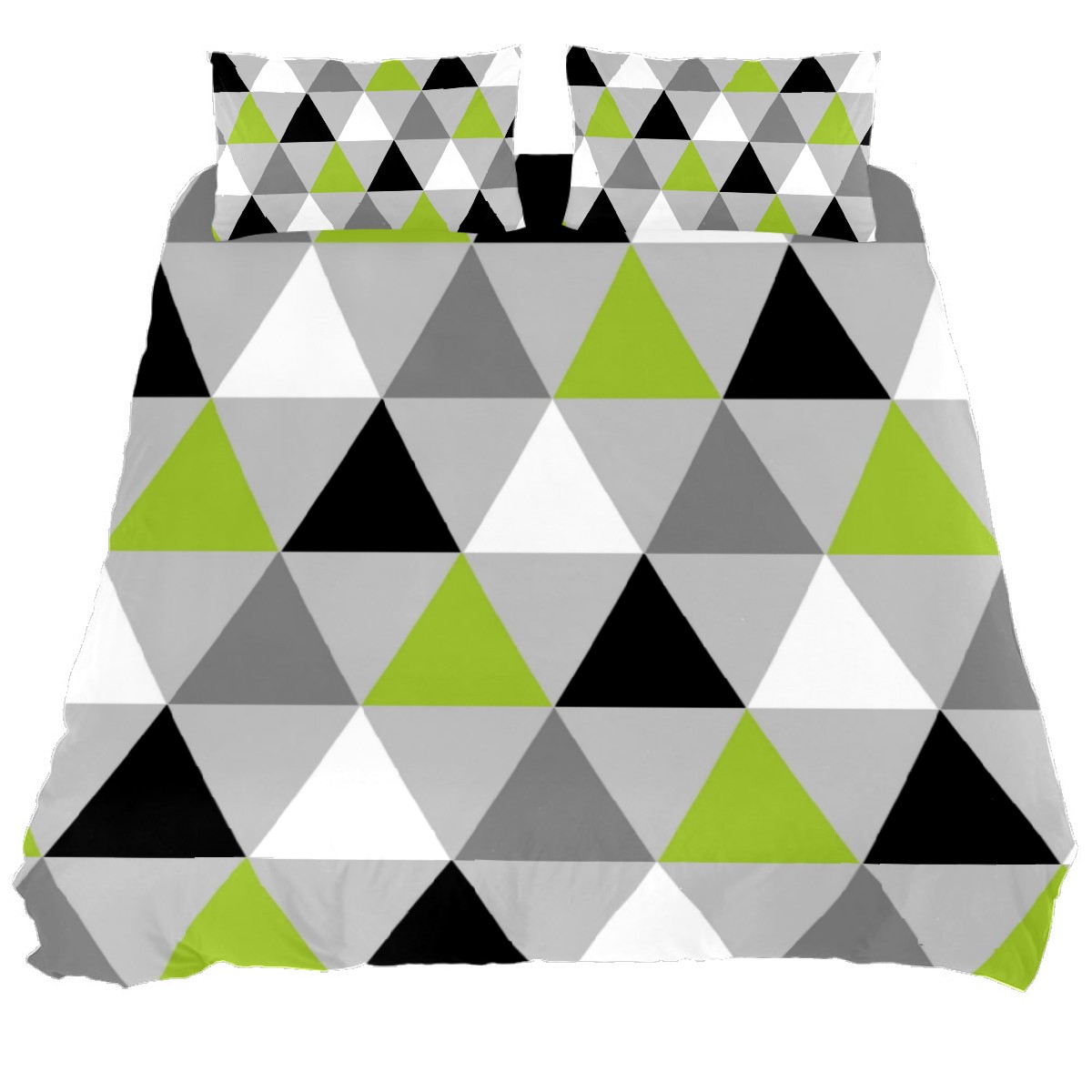 3 Piece Bedding Sets Lime Green Black White Triangles Duvet Cover Set Twin Size 55'' x 79'' Comforter Set Home Decor for Bedroom Girls Boys Kid's Room with 2 Pillow Cases