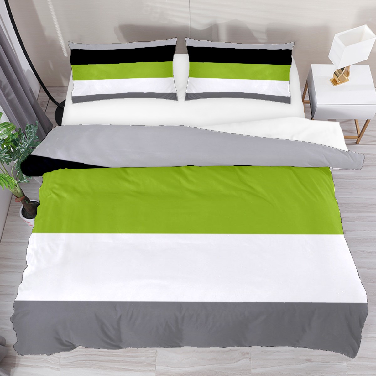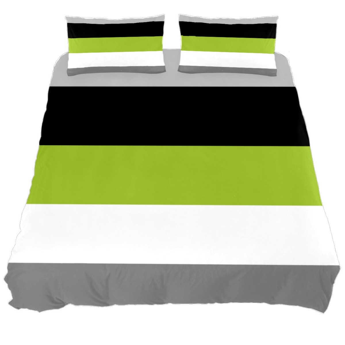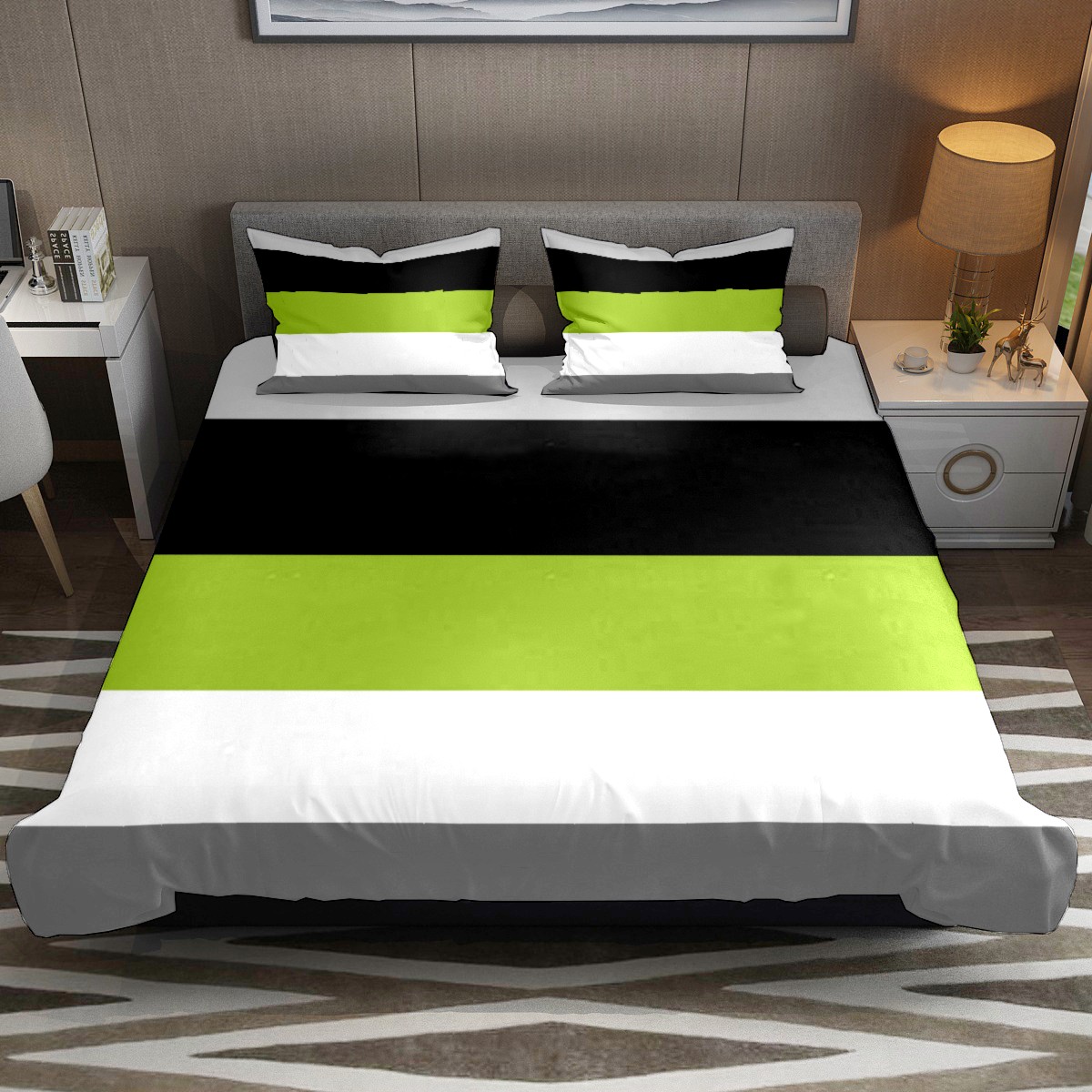 3 Piece Bedding Sets Lime Green Gray Black White Stripes Duvet Cover Set Twin Size 55'' x 79'' Comforter Set Home Decor for Bedroom Girls Boys Kid's Room with 2 Pillow Cases