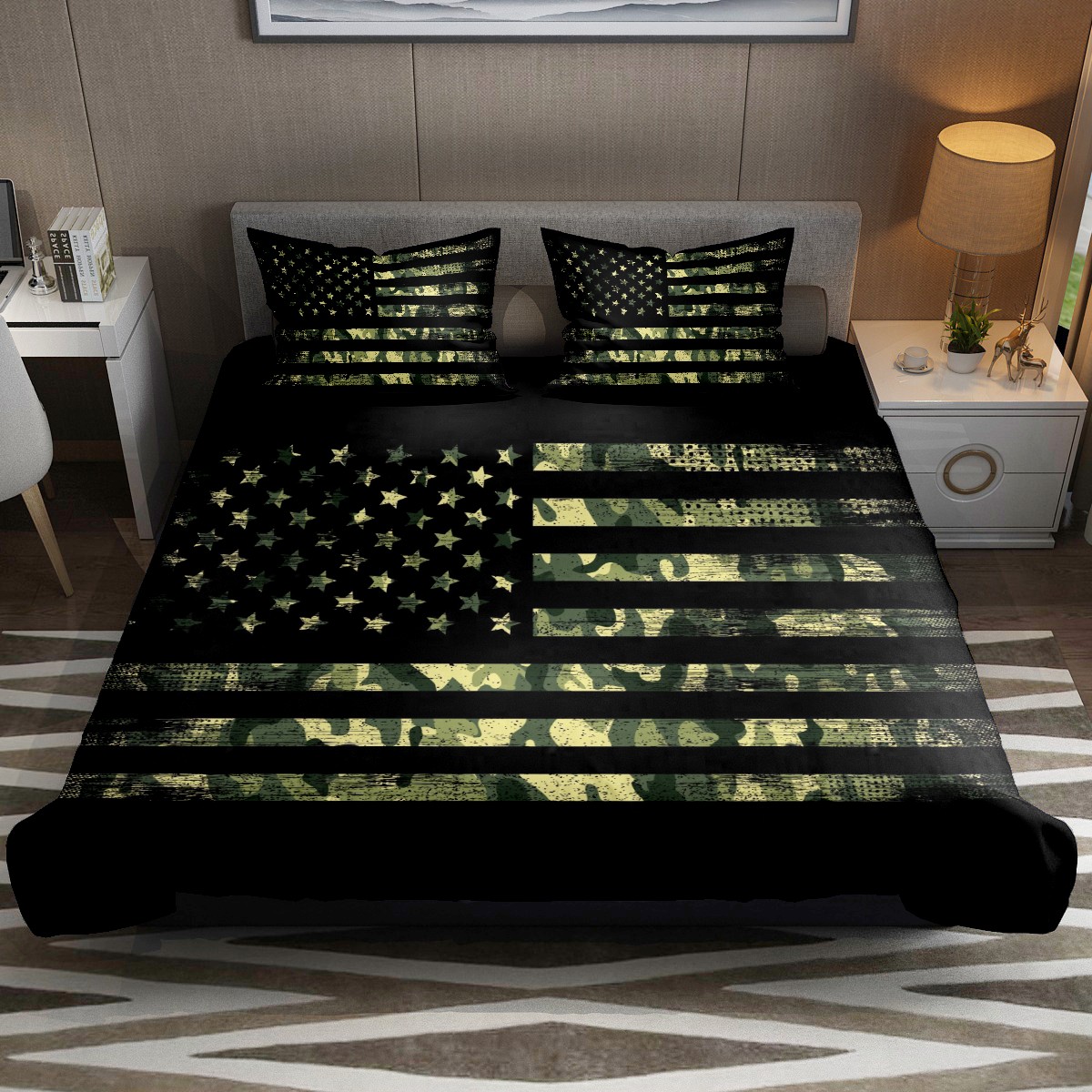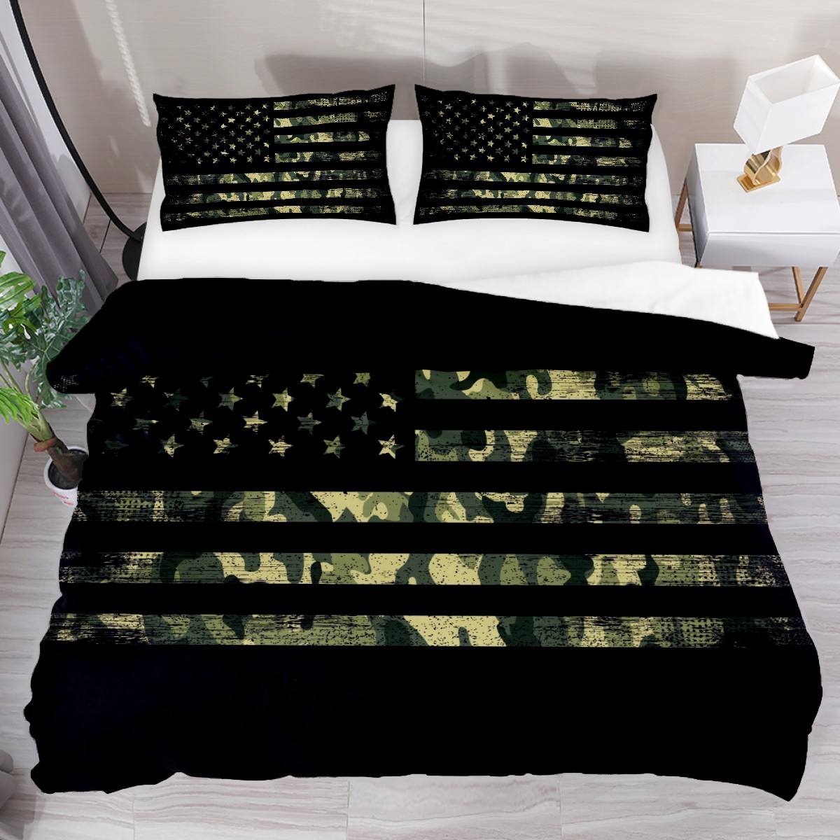 3 Piece Bedding Sets Retro Camo American USA Flag Duvet Cover Set Twin Size 55'' x 79'' Comforter Set Home Decor for Bedroom Girls Boys Kid's Room with 2 Pillow Cases