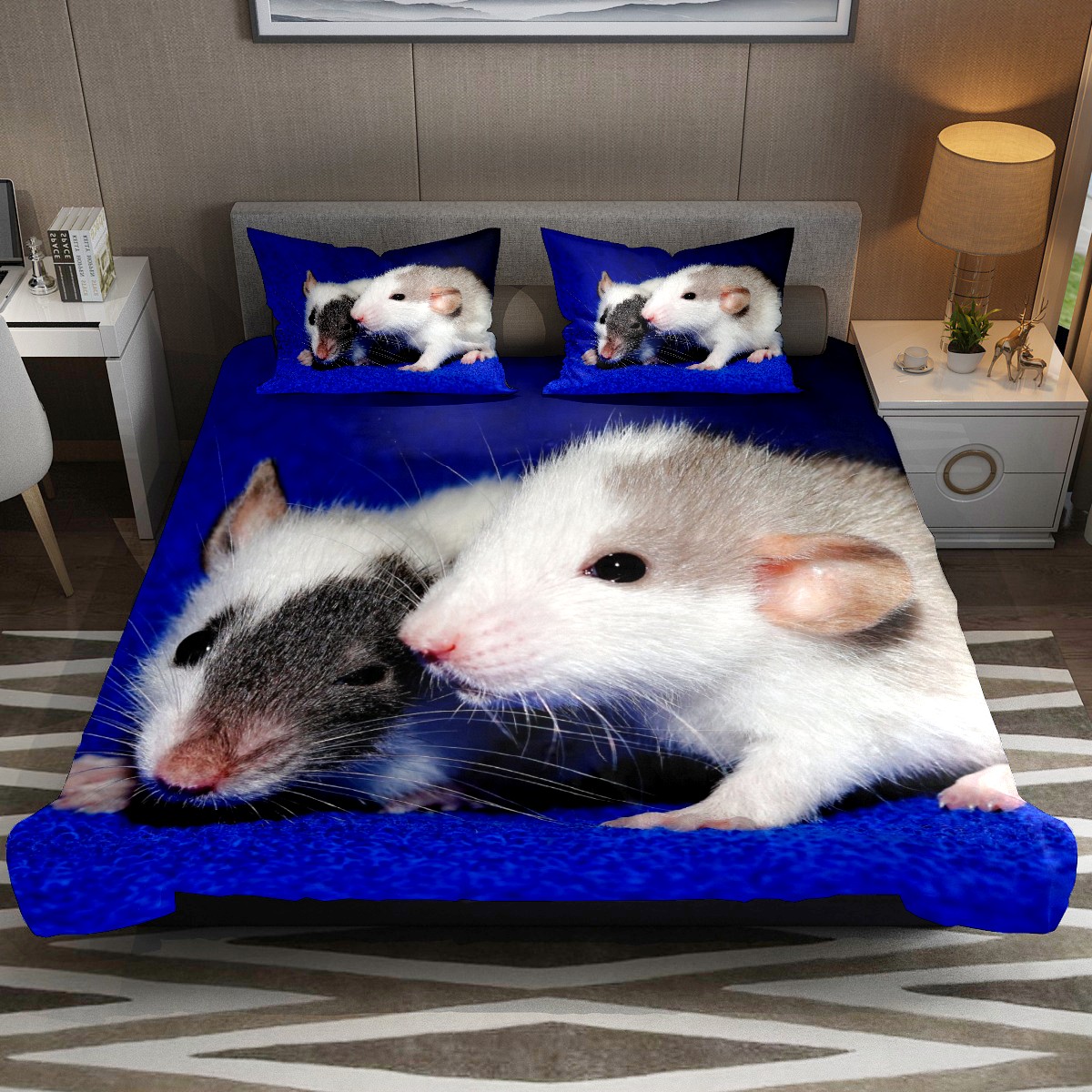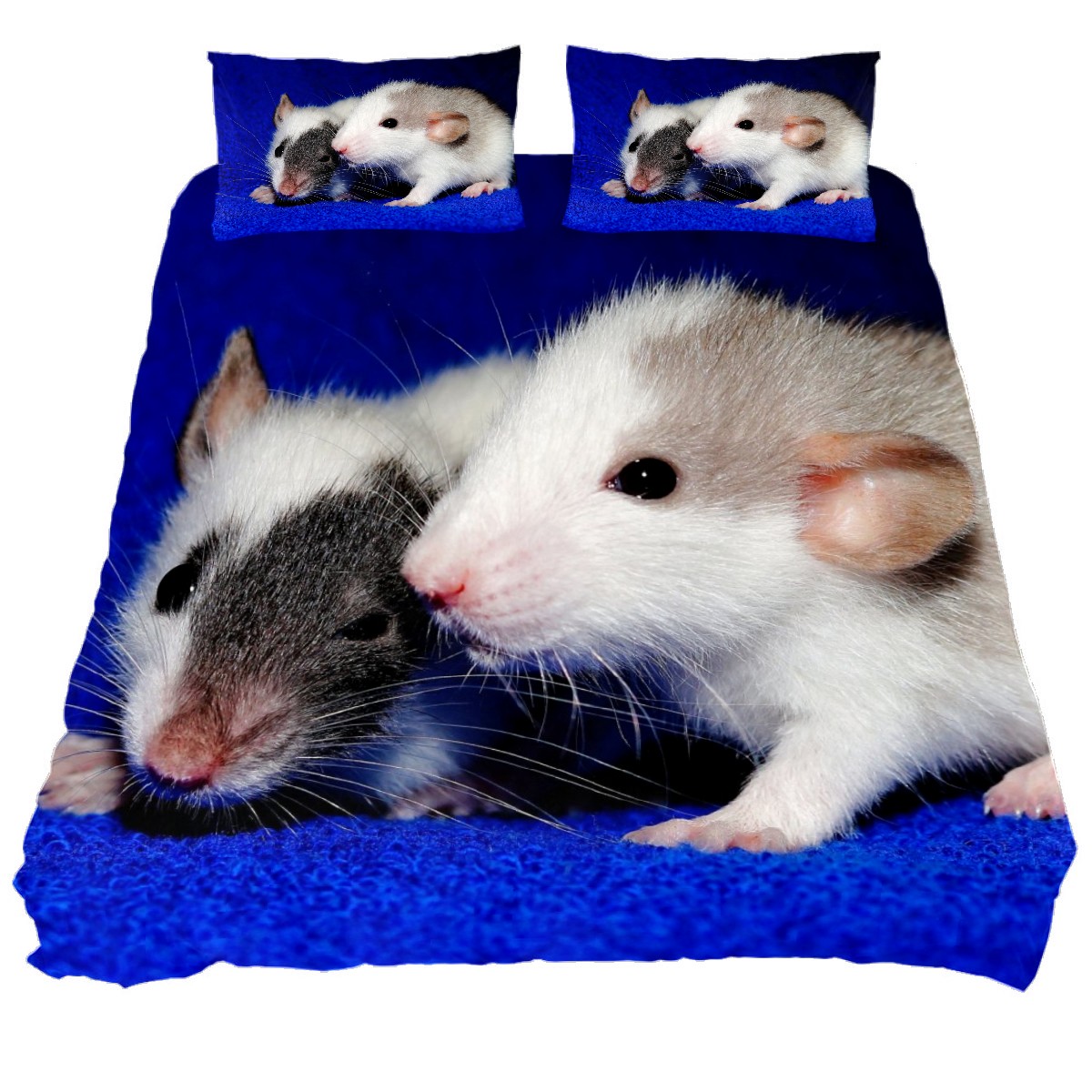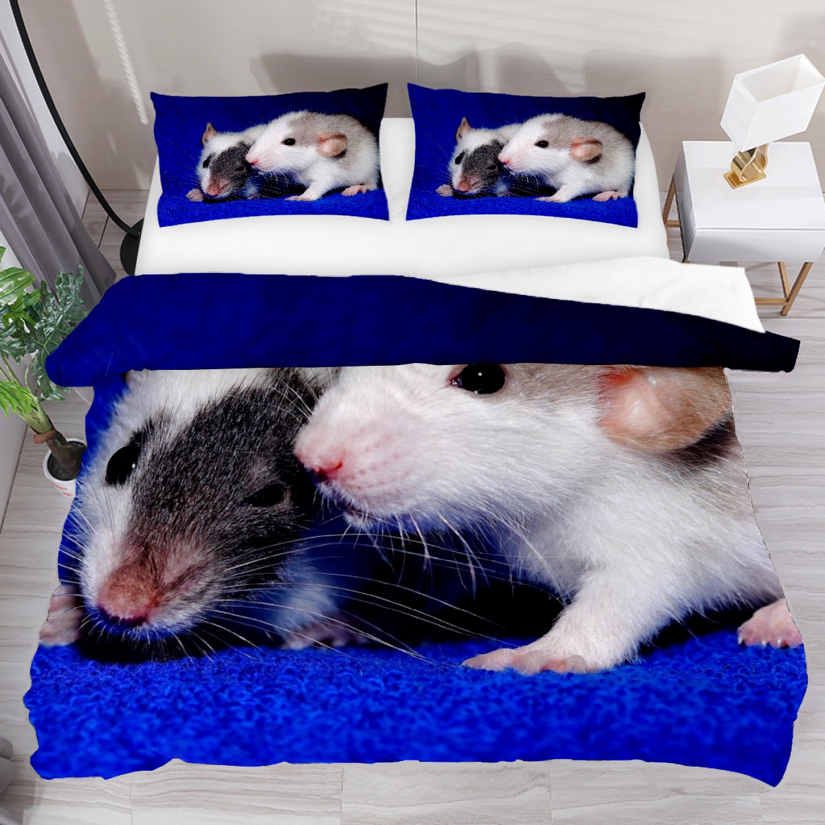3 Piece Bedding Sets Cute Rat Animals Mouse Duvet Cover Set Twin Size 55'' x 79'' Comforter Set Home Decor for Bedroom Girls Boys Kid's Room with 2 Pillow Cases