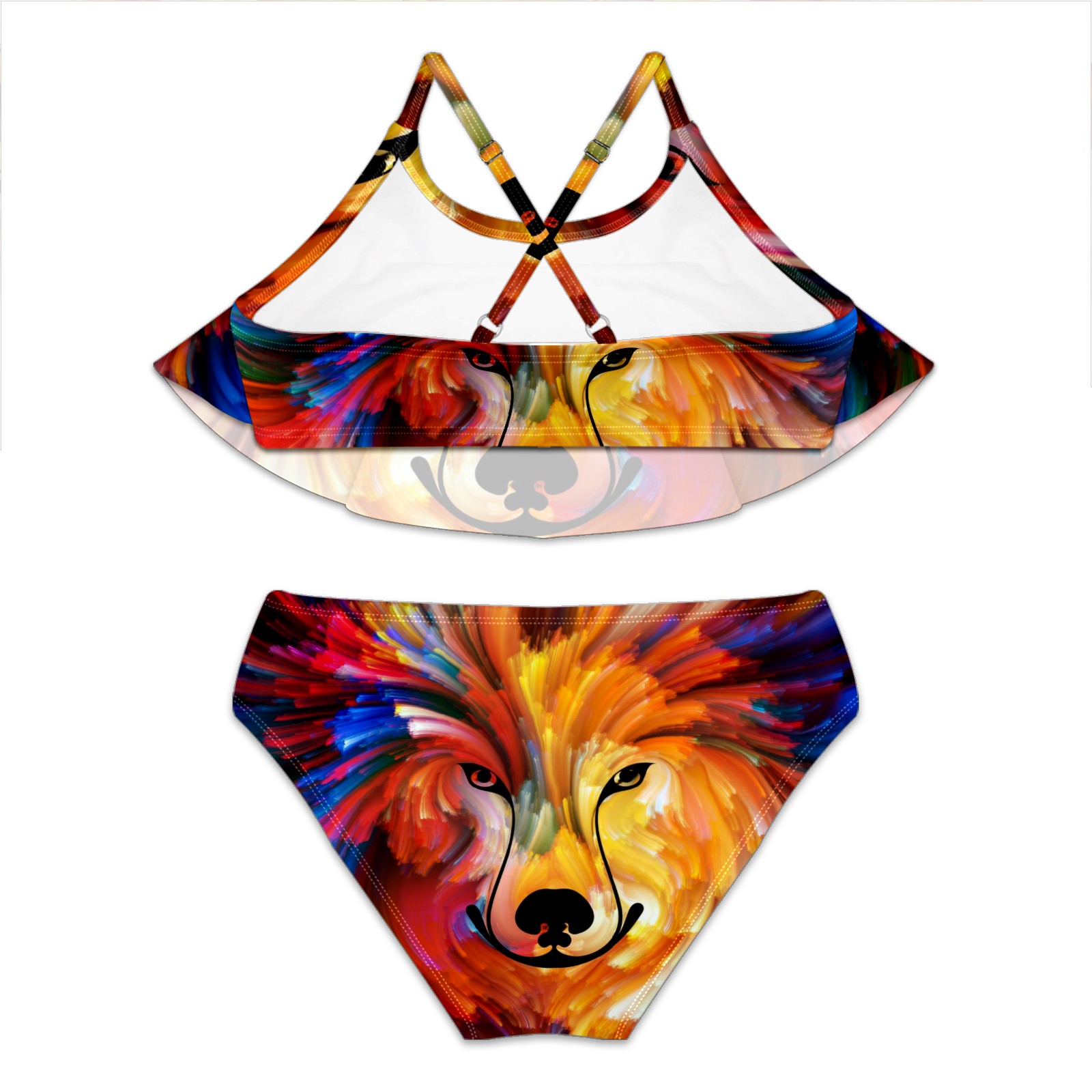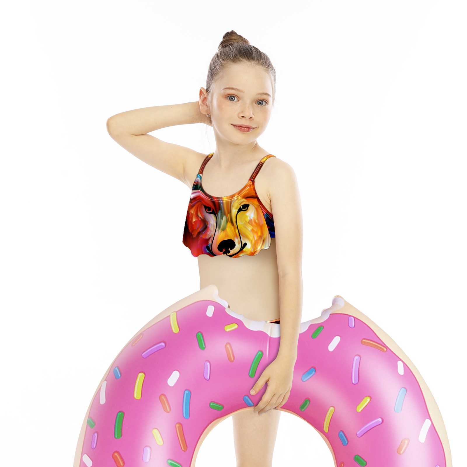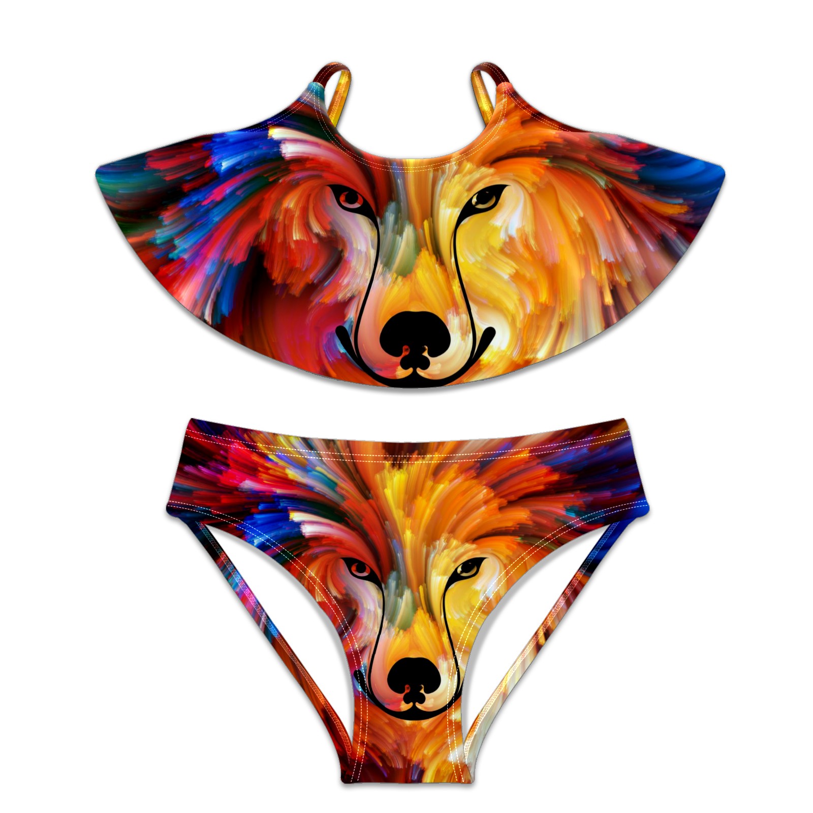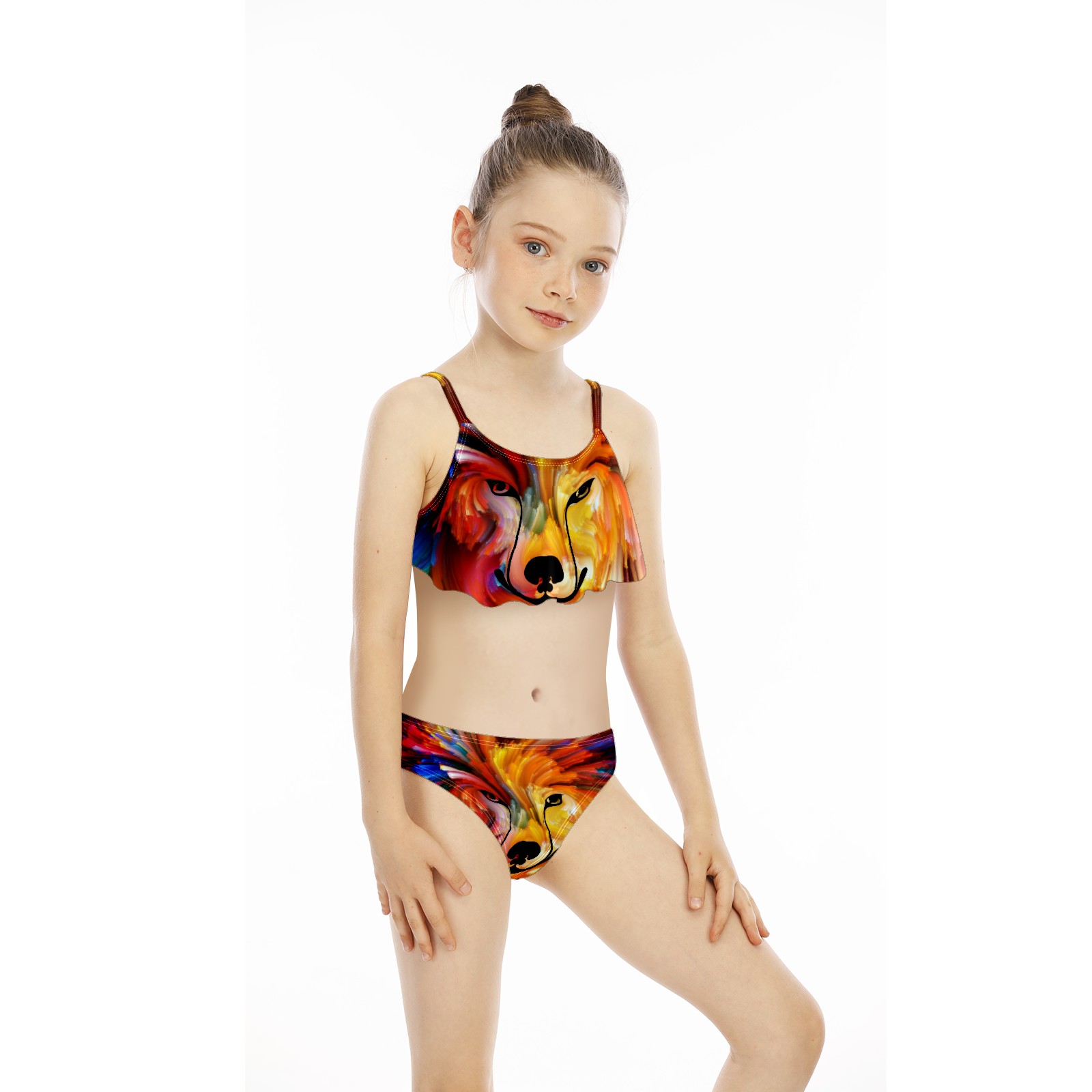 Swimsuits for Girls Two Pieces Bathing Suit Quick Dry Swimwear Galaxy Wolf Colorful Animal Tie Dye S