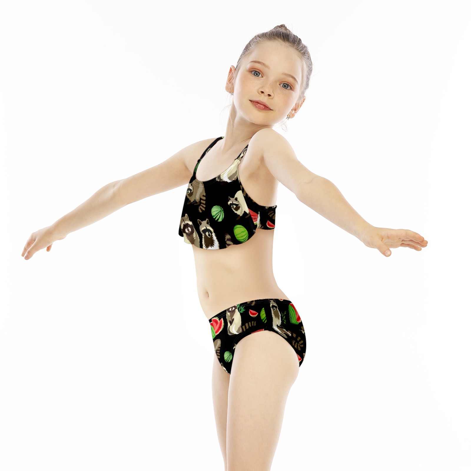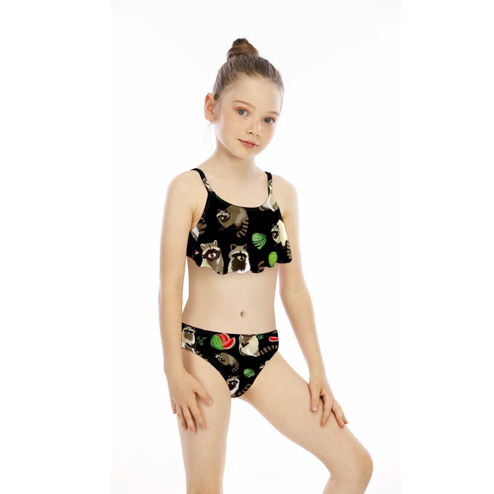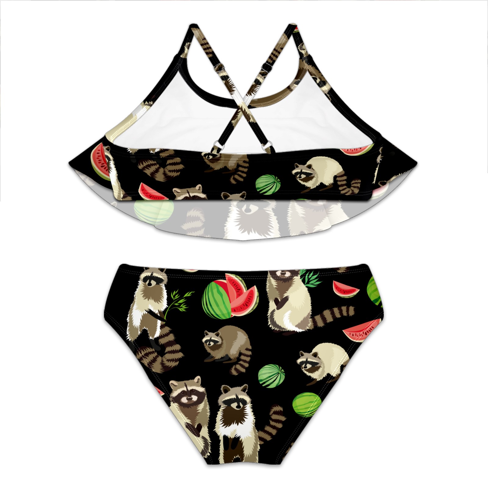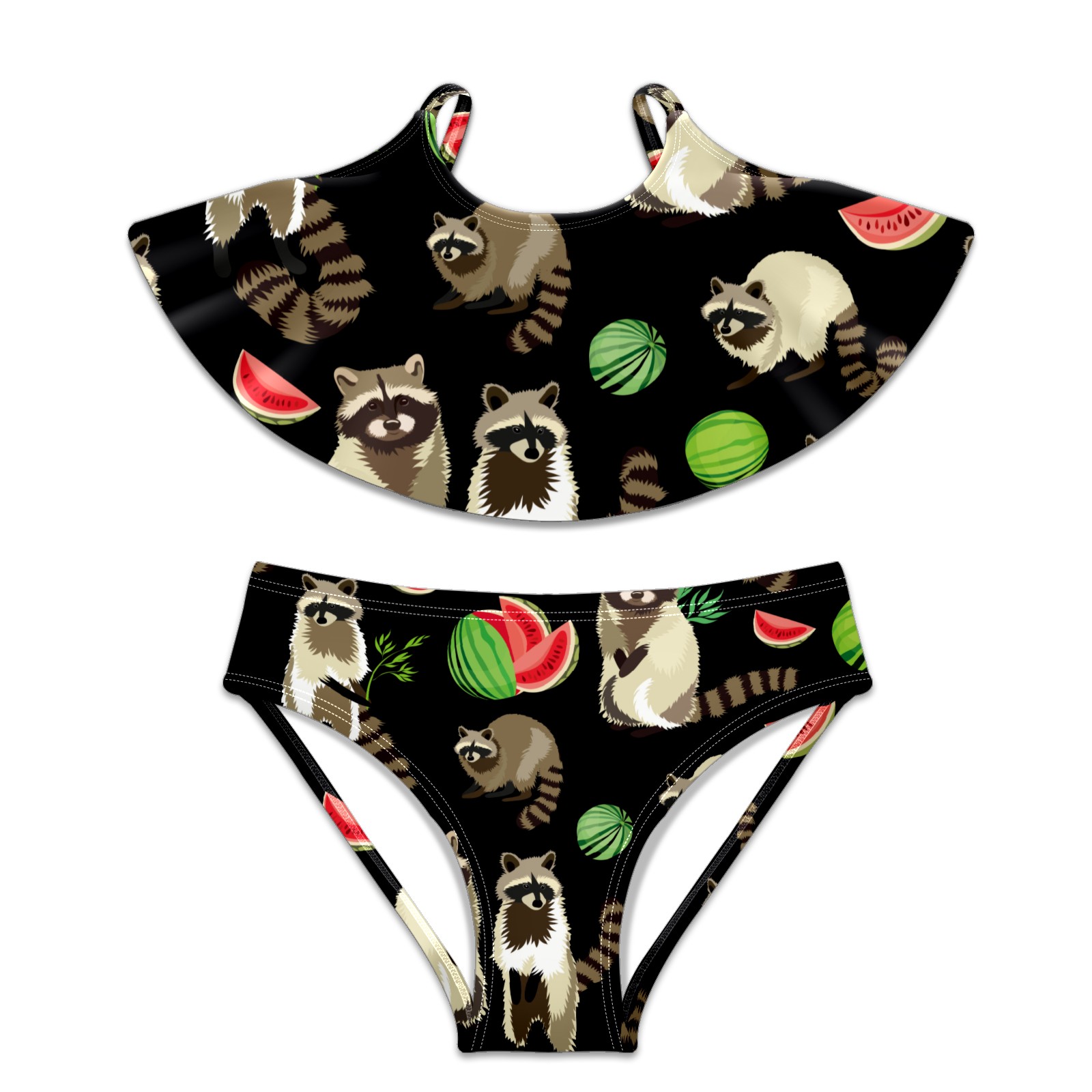 Swimsuits for Girls Two Pieces Bathing Suit Quick Dry Swimwear Cute Raccoon With Watermelon Pattern S