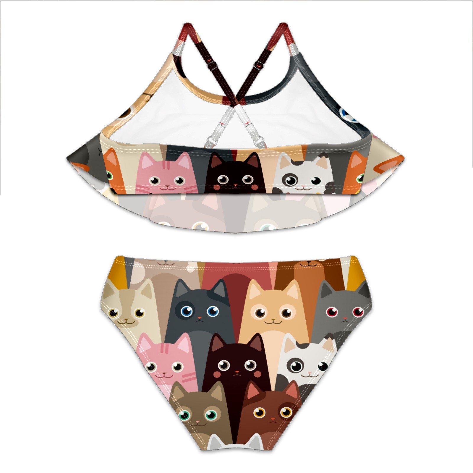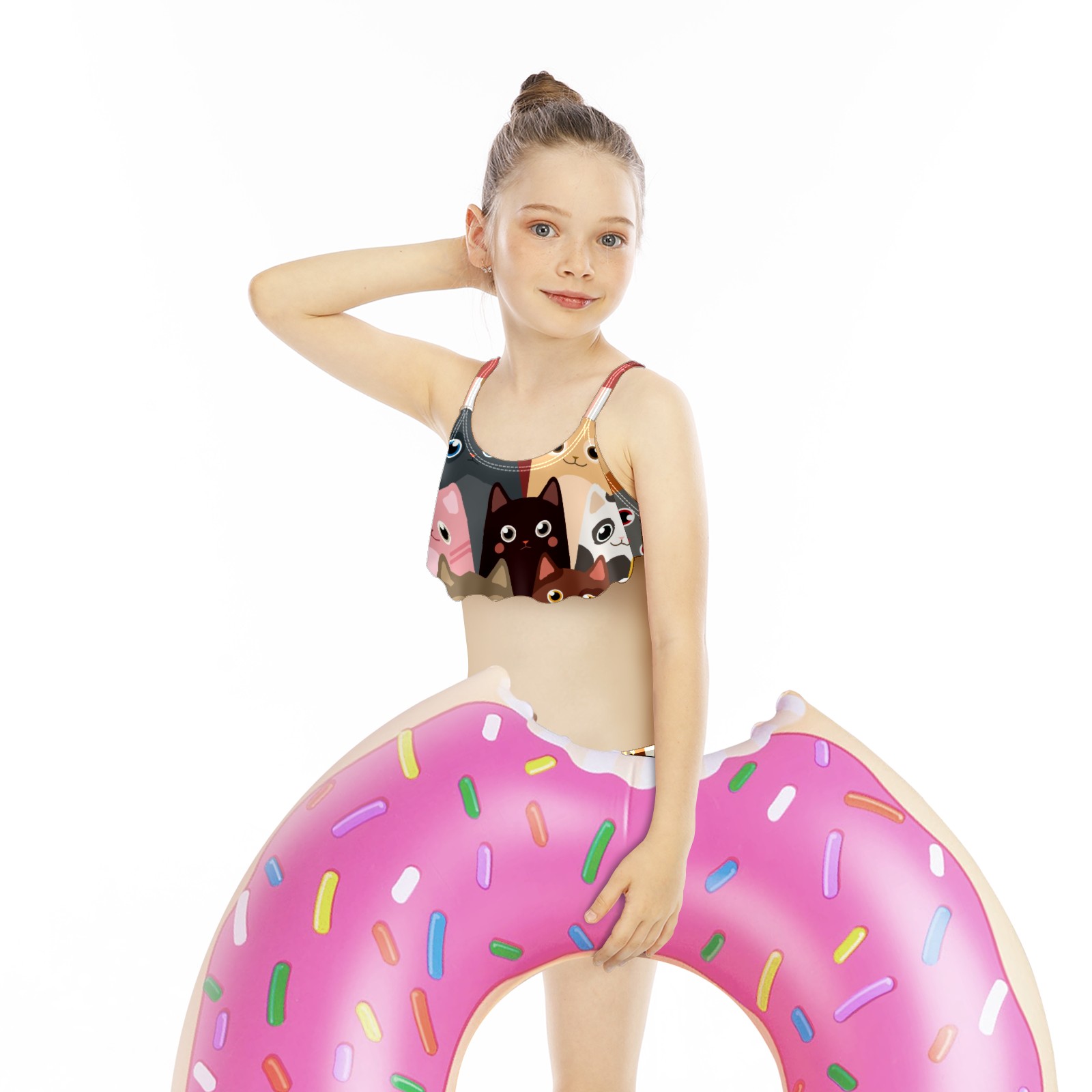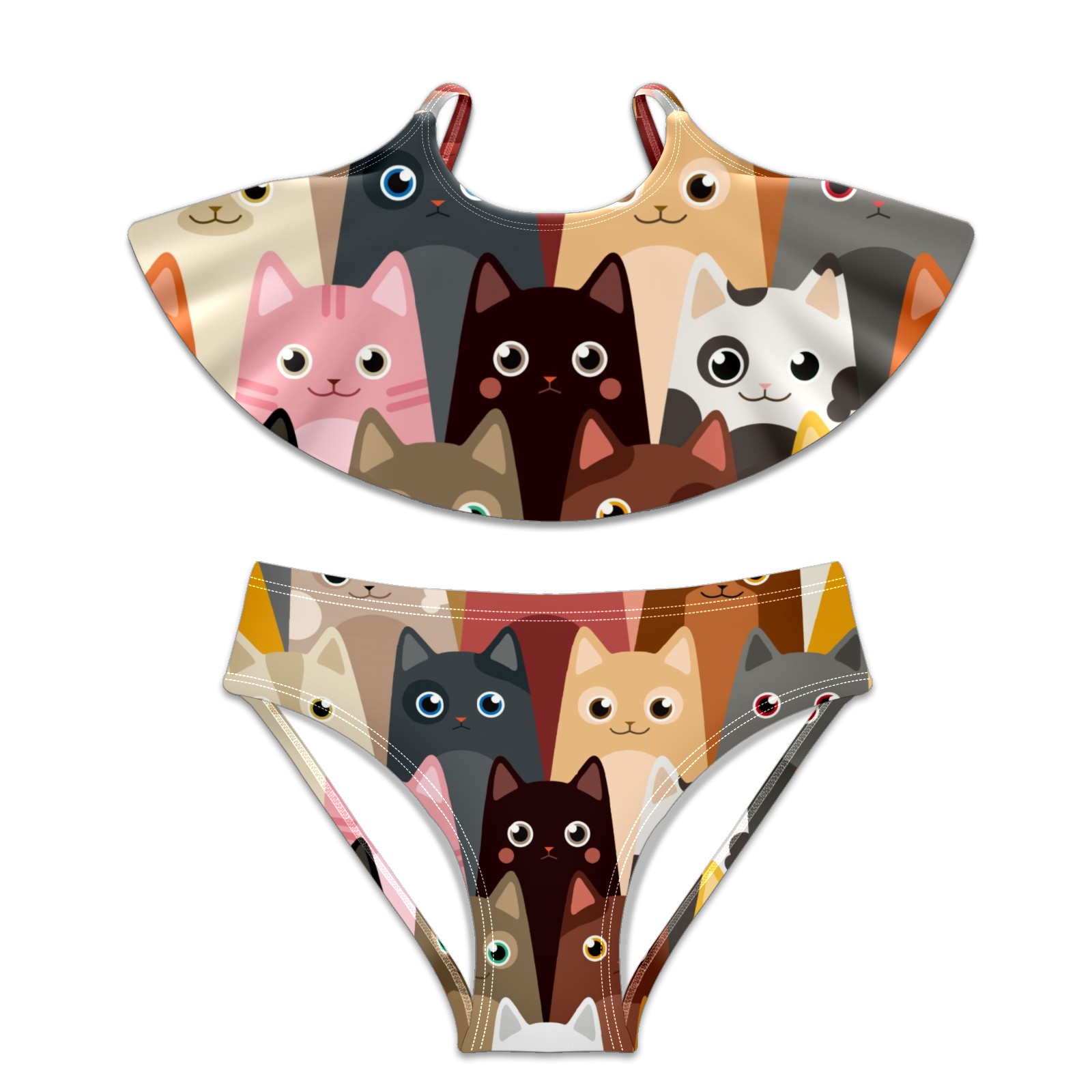 Swimsuits for Girls Two Pieces Bathing Suit Quick Dry Swimwear Colorful Cute Funny Kitty Cats Kitten S