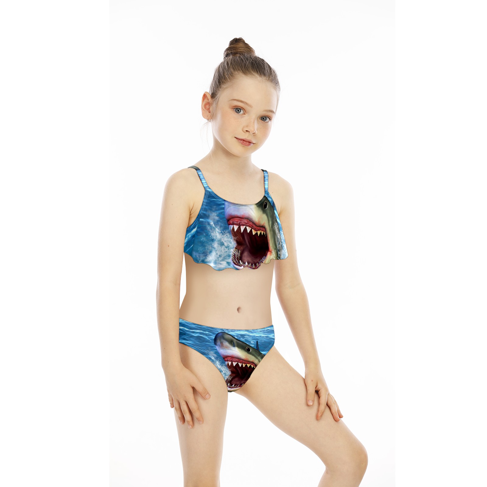 Swimsuits for Girls Two Pieces Bathing Suit Quick Dry Swimwear Shark Open Mouth S