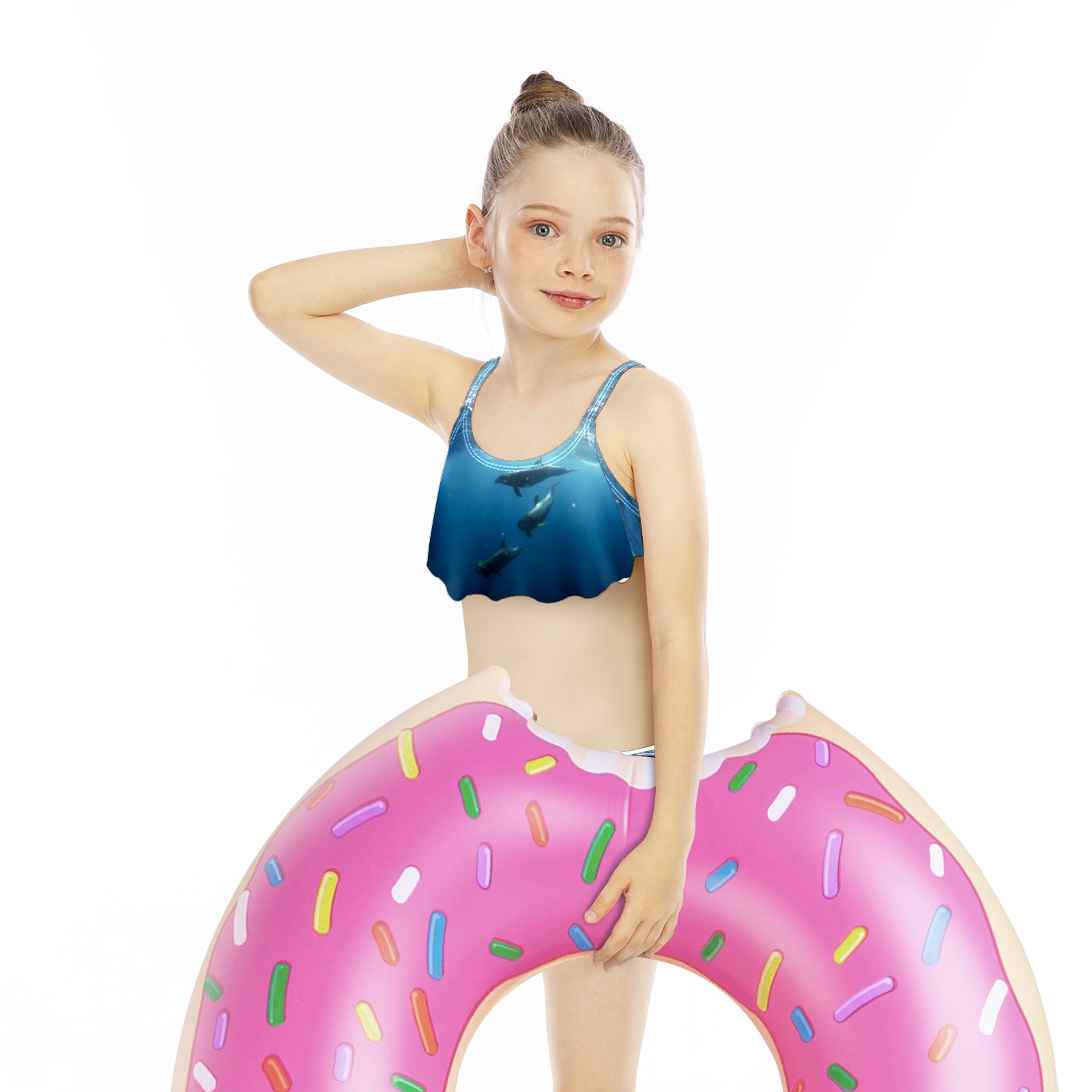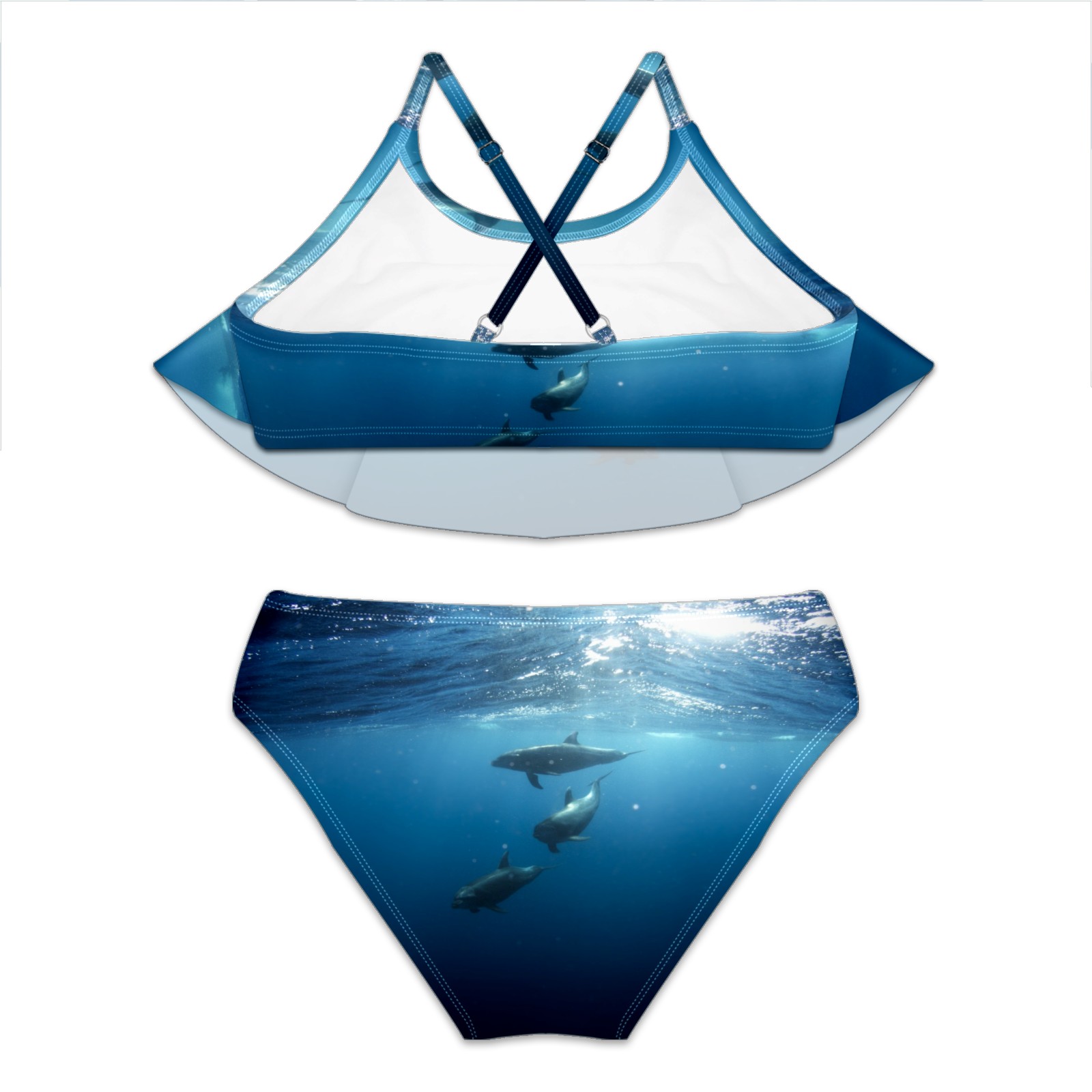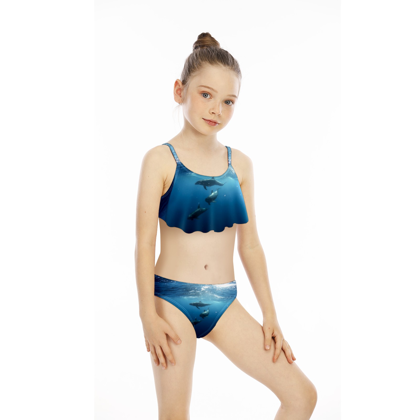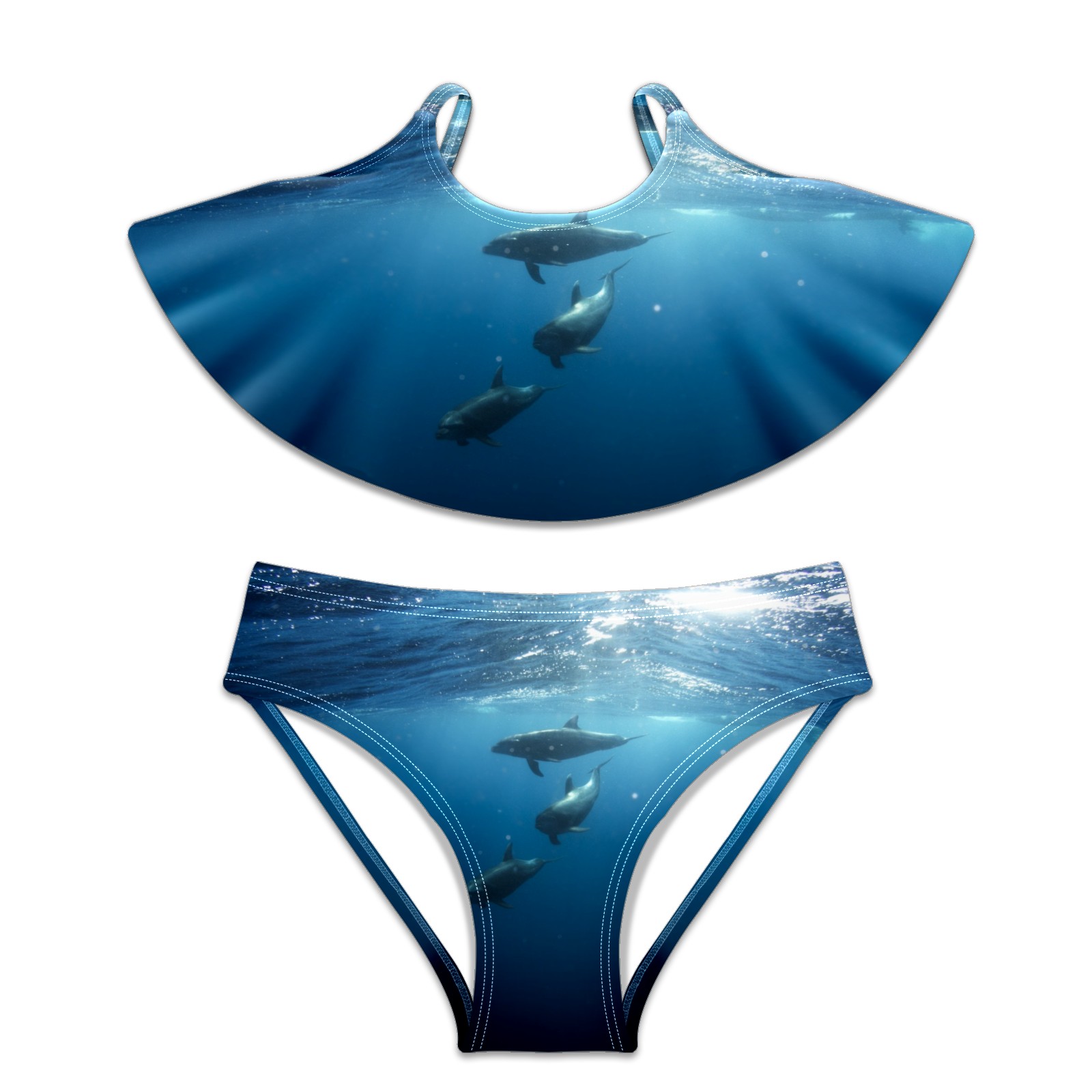 Swimsuits for Girls Two Pieces Bathing Suit Quick Dry Swimwear Sea Life Dolphins Three Swimming S