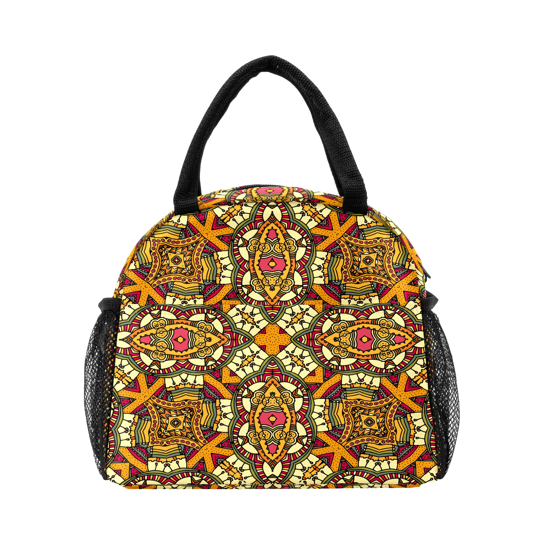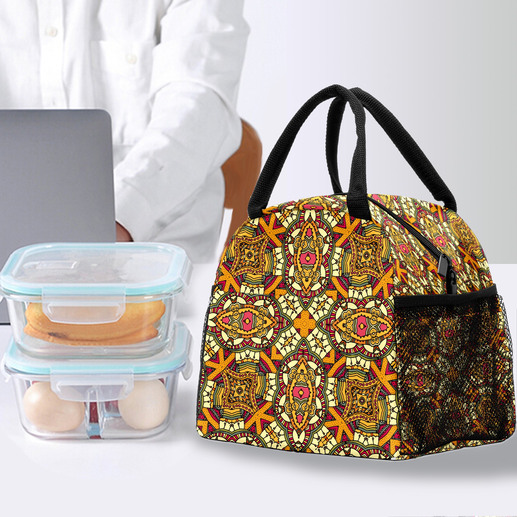 Lunch Bag for Women Men, Vintage Ethnic Boho Floral Print Insulated Reusable Lunch Box Thermal Cooler Tote Bag for Work Picnic Hiking Travel Beach