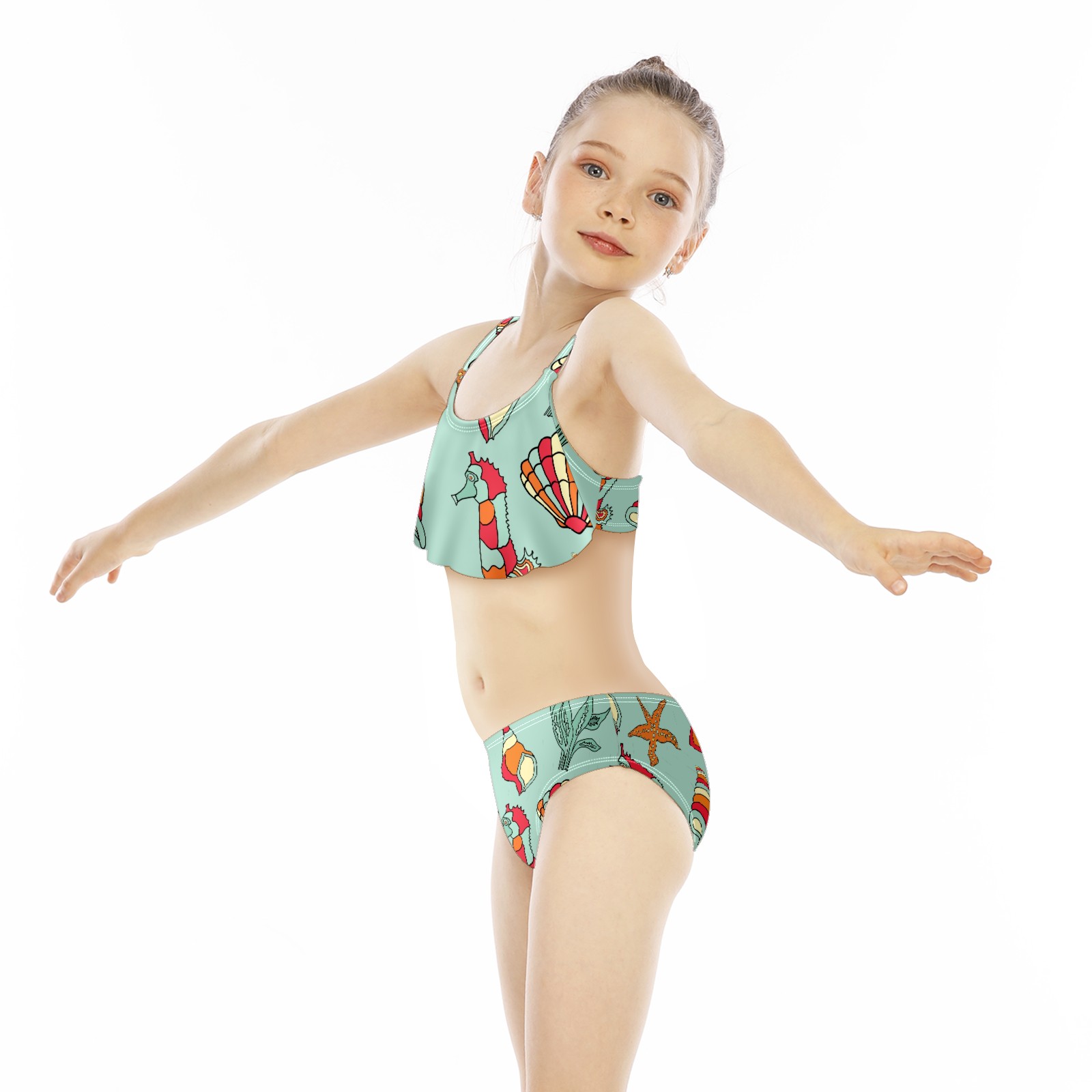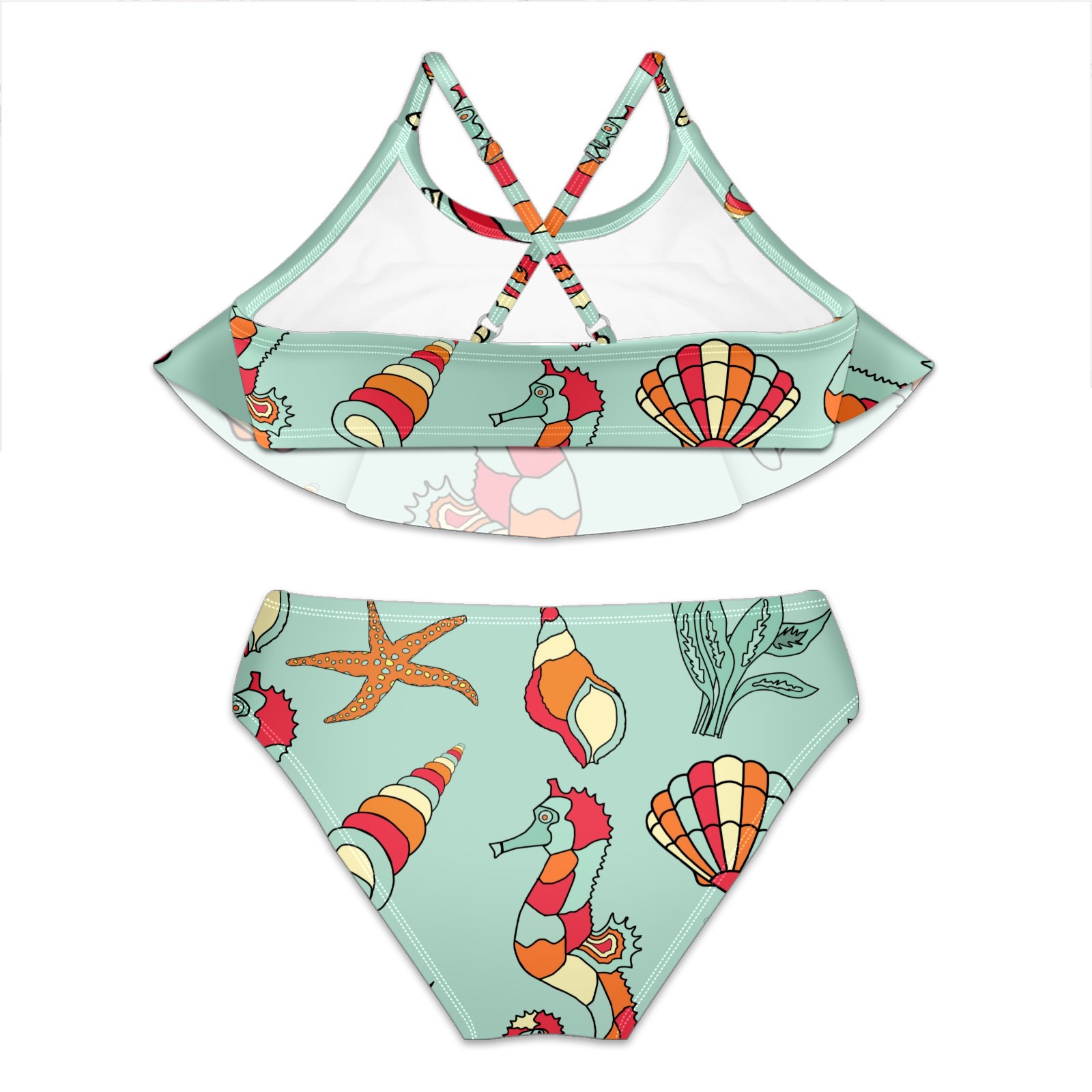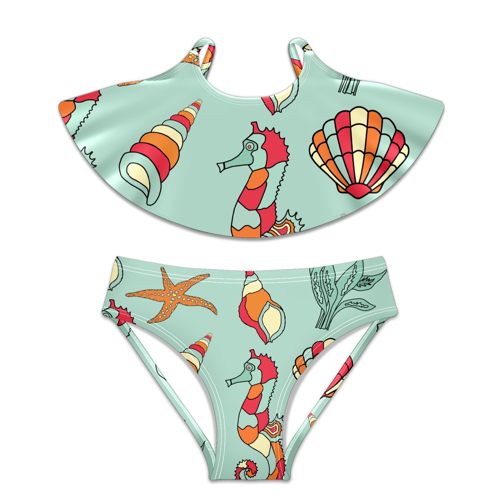 Swimsuits for Girls Two Pieces Bathing Suit Quick Dry Swimwear Seahorse Starfish Conch Sea Weed S