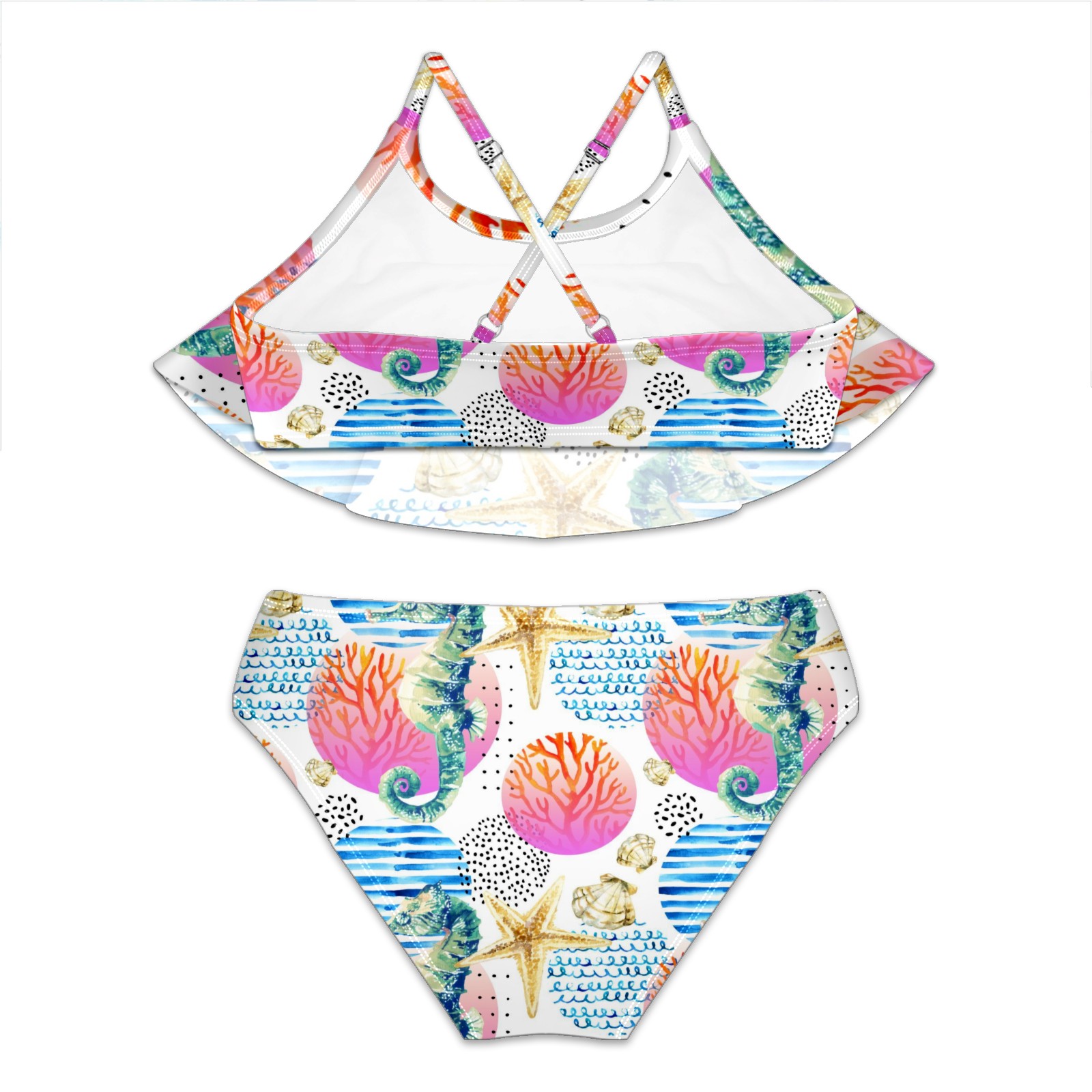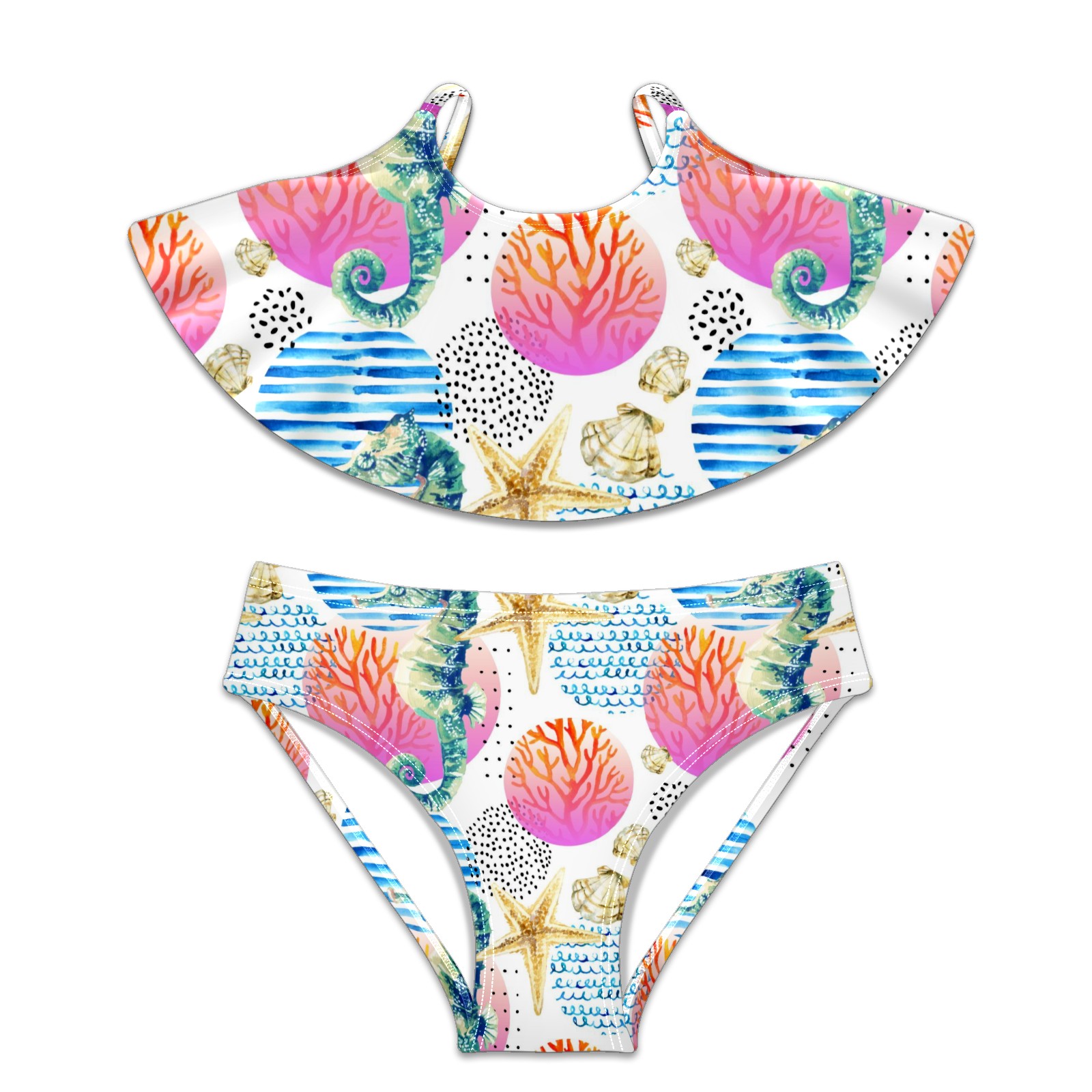 Swimsuits for Girls Two Pieces Bathing Suit Quick Dry Swimwear Seahorse Starfish Shell Ocean S