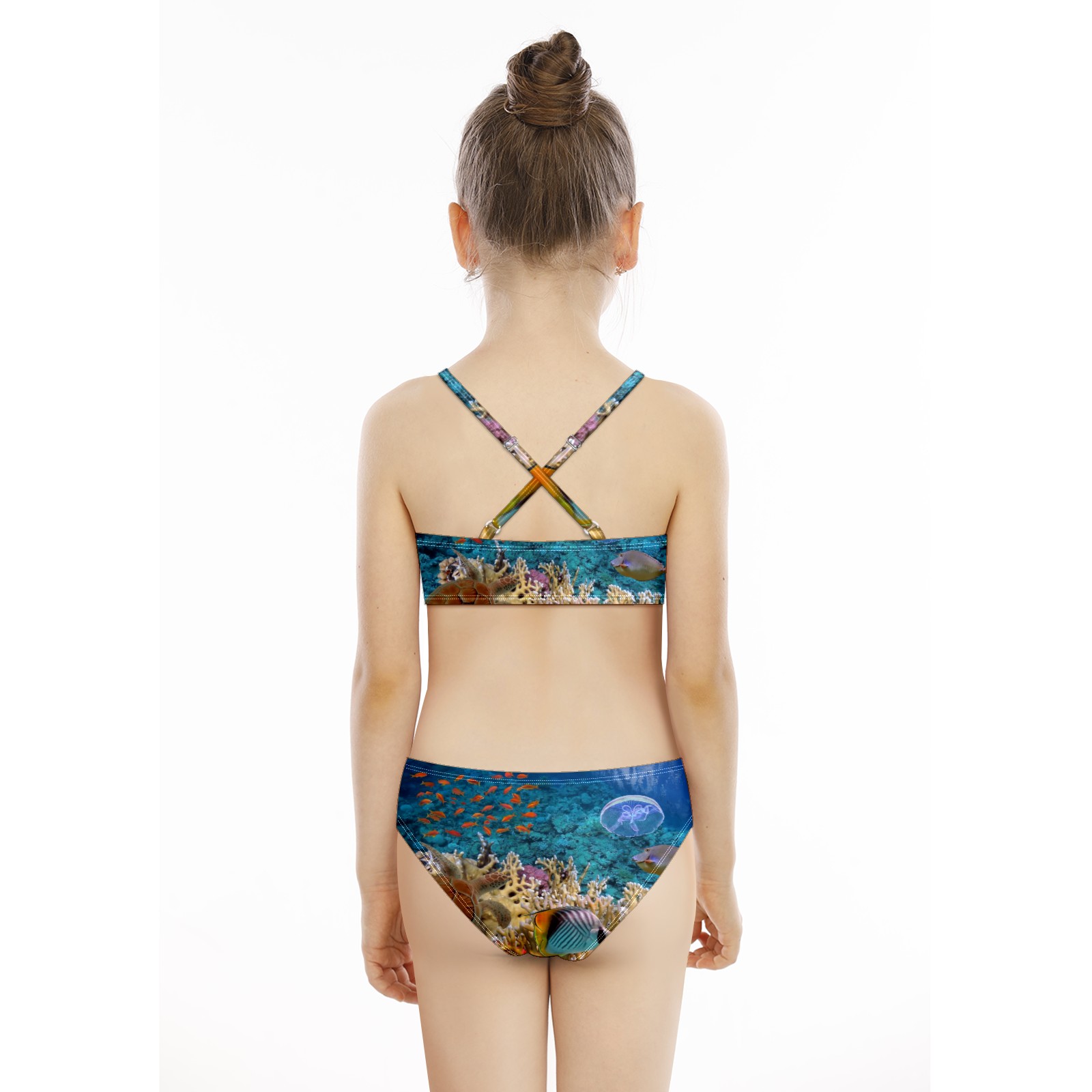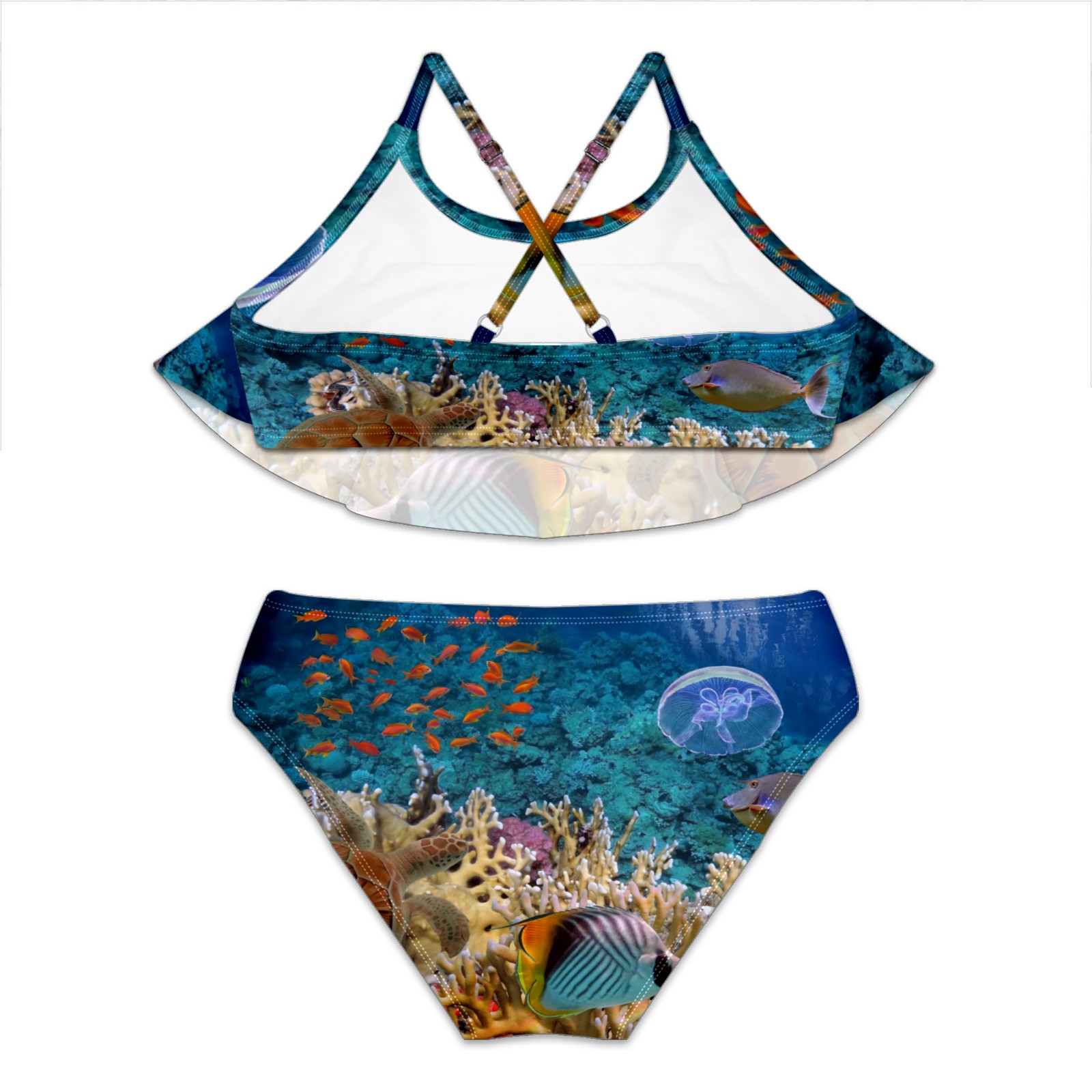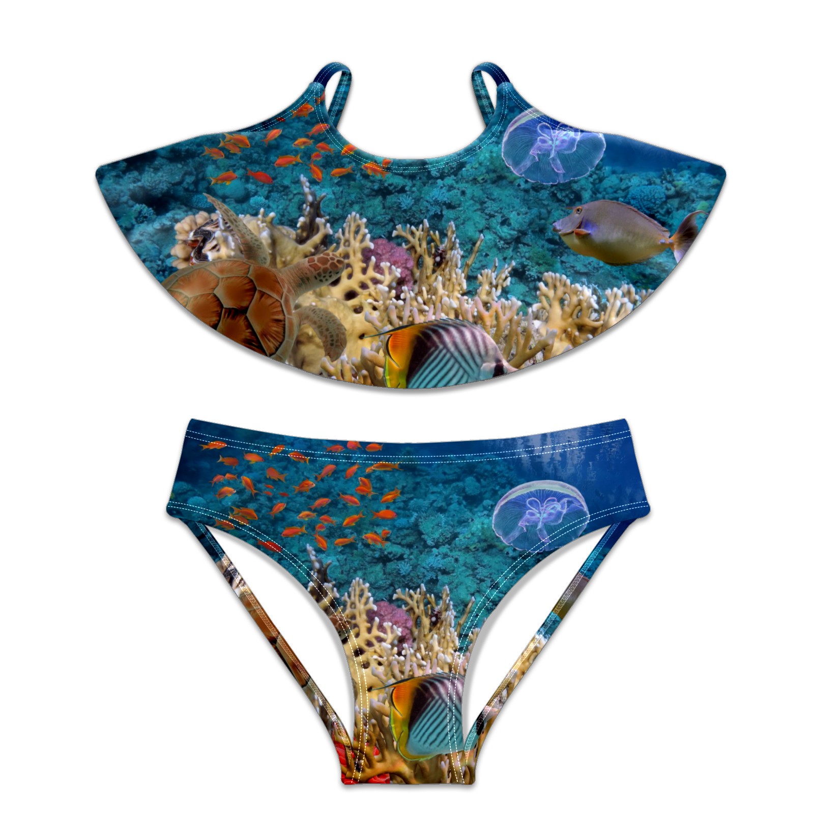 Swimsuits for Girls Two Pieces Bathing Suit Quick Dry Swimwear Sea Turtle Jellyfish Coral Bush S