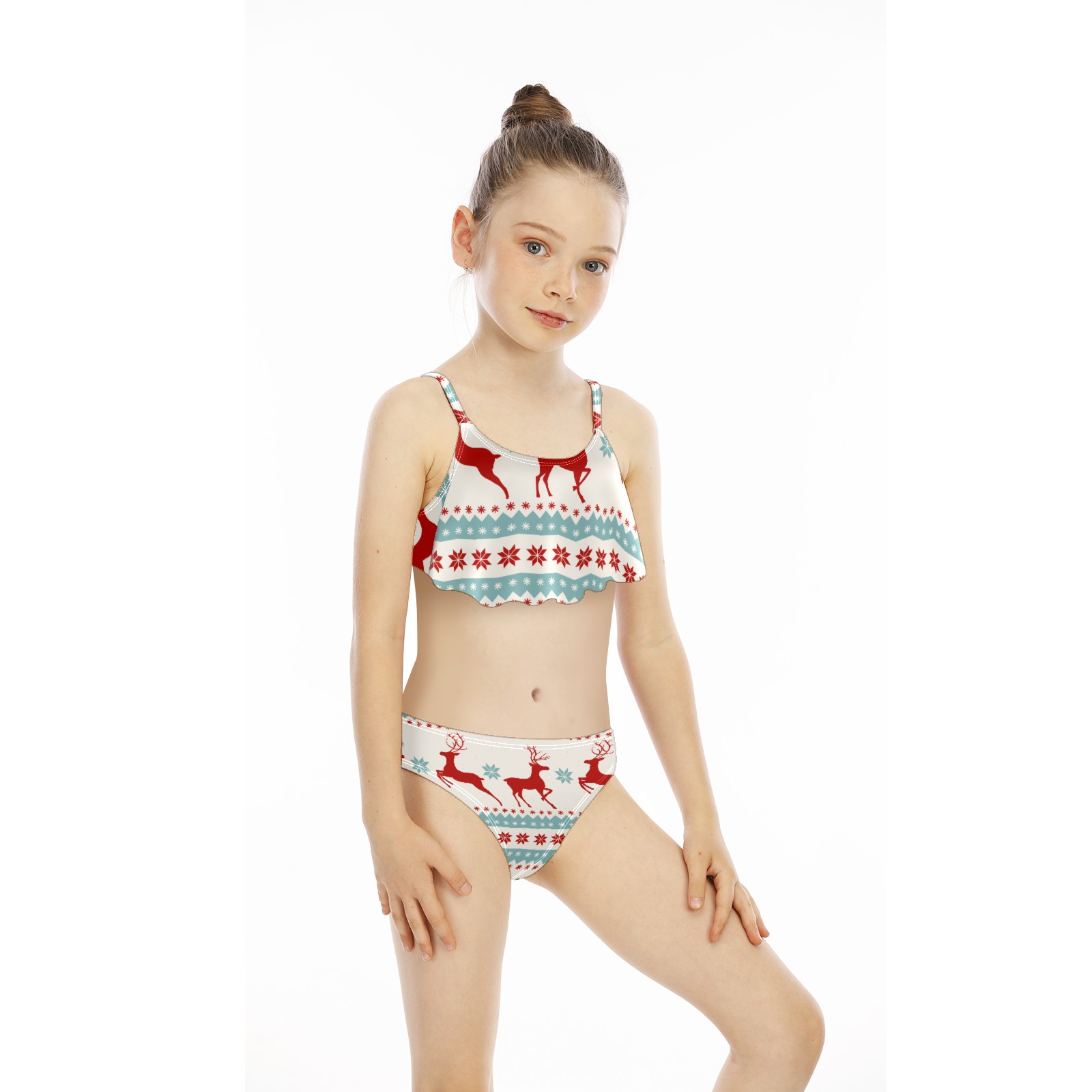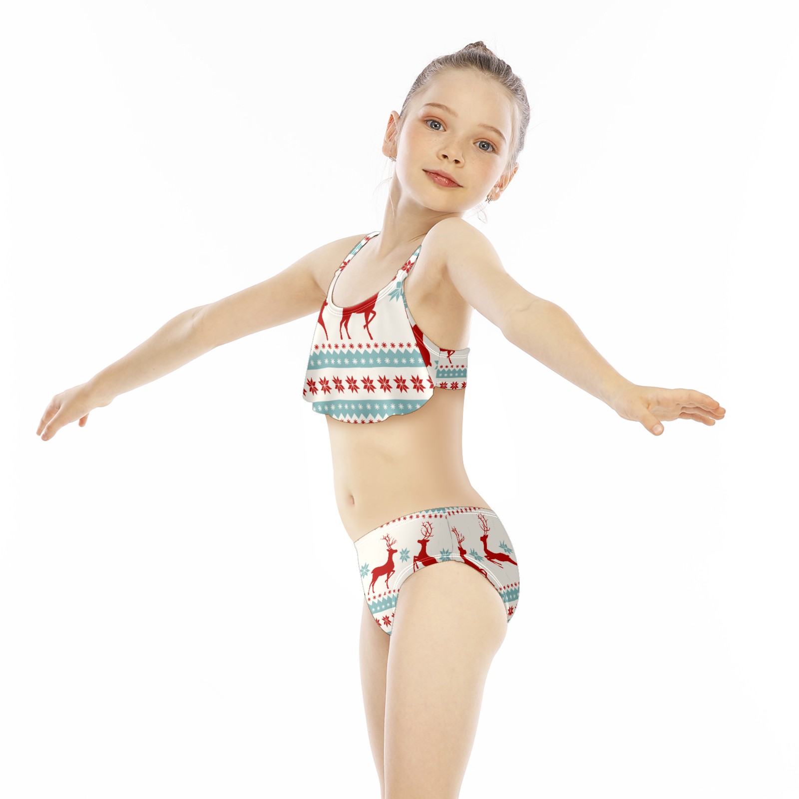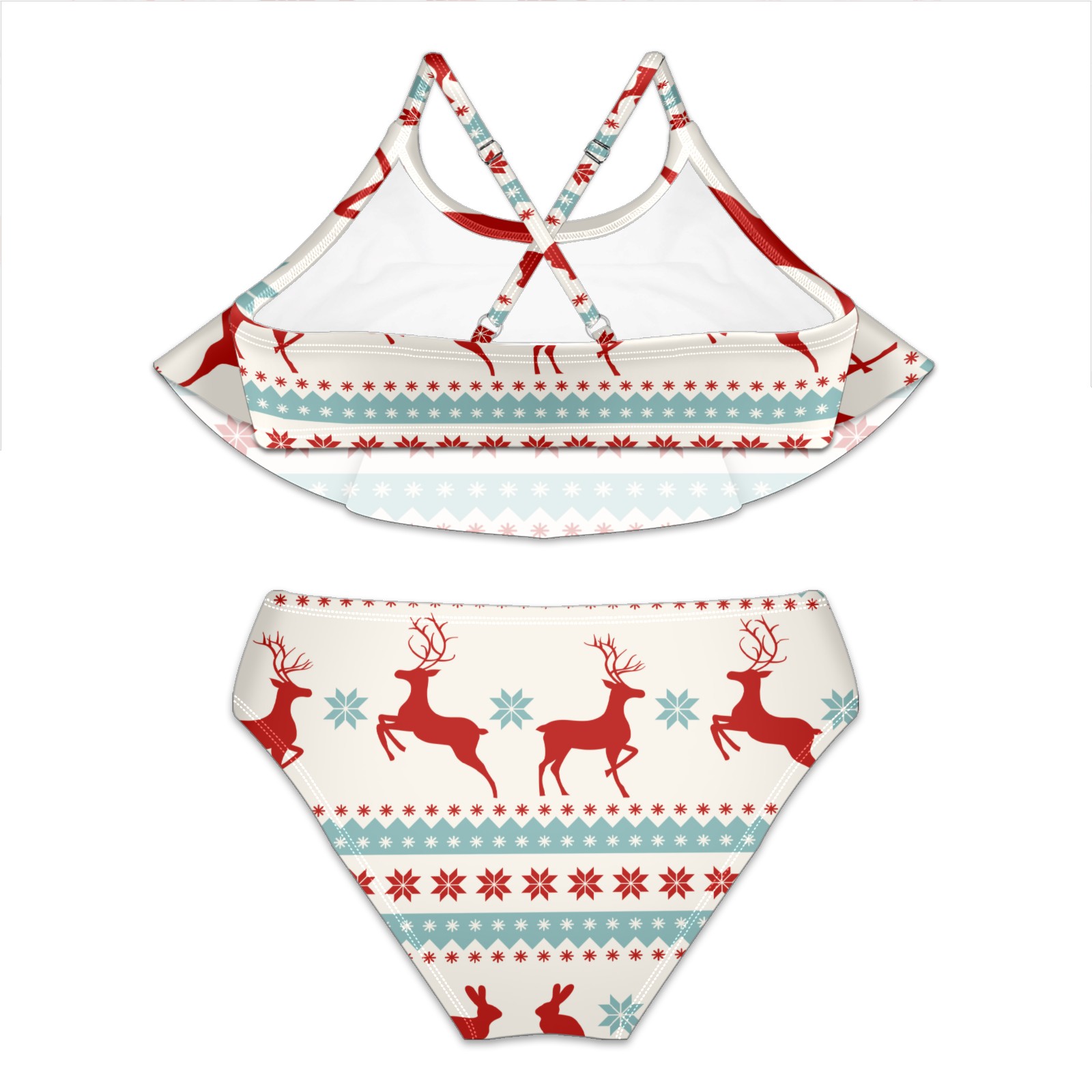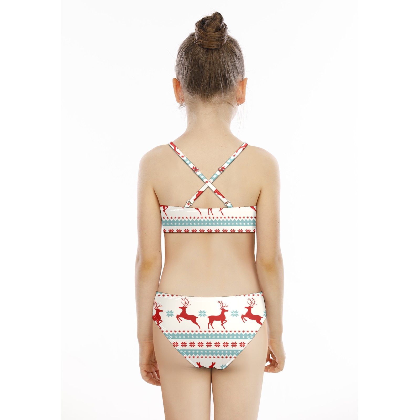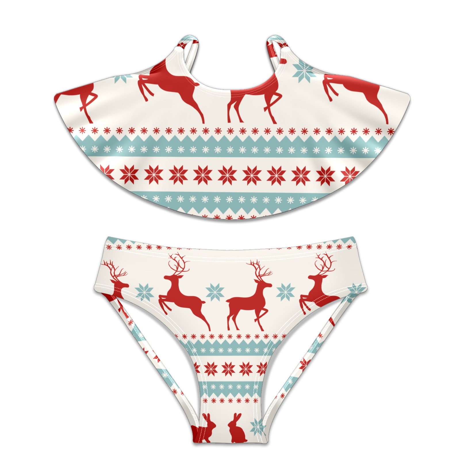 Swimsuits for Girls Two Pieces Bathing Suit Quick Dry Swimwear Retro Chritmas Reindeer Rabbit Snowflake S