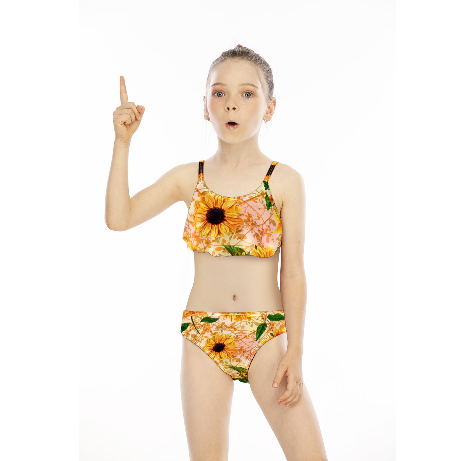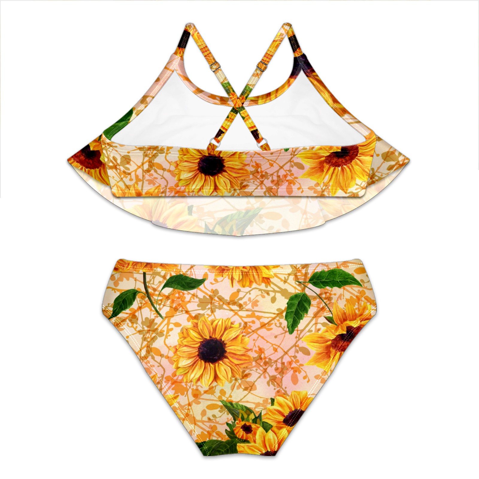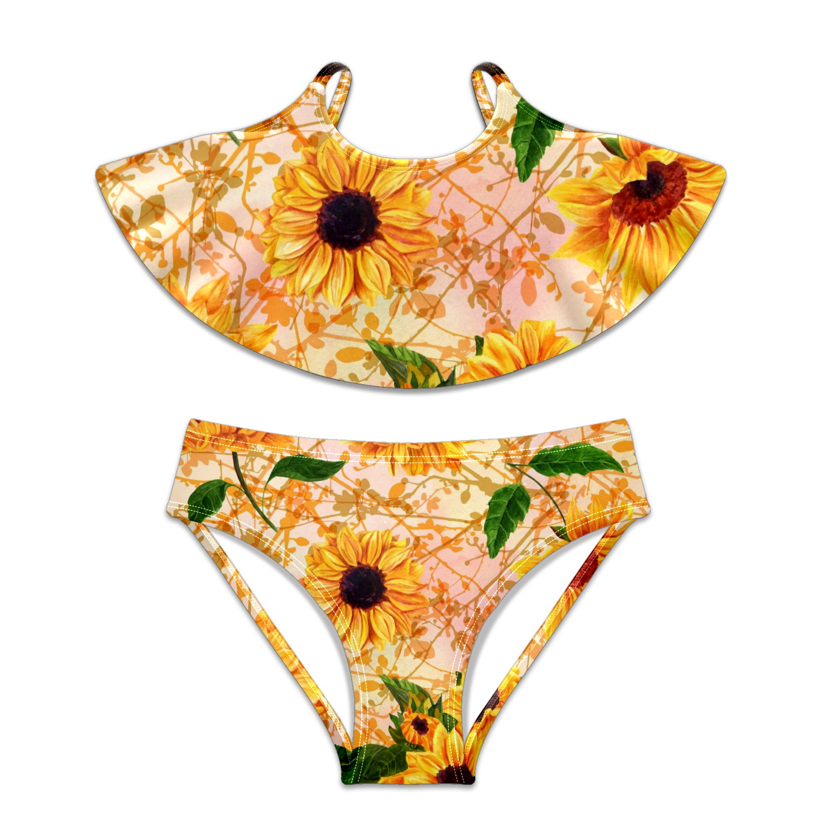 Swimsuits for Girls Two Pieces Bathing Suit Quick Dry Swimwear Retro Yellow Sunflower Chic Floral S