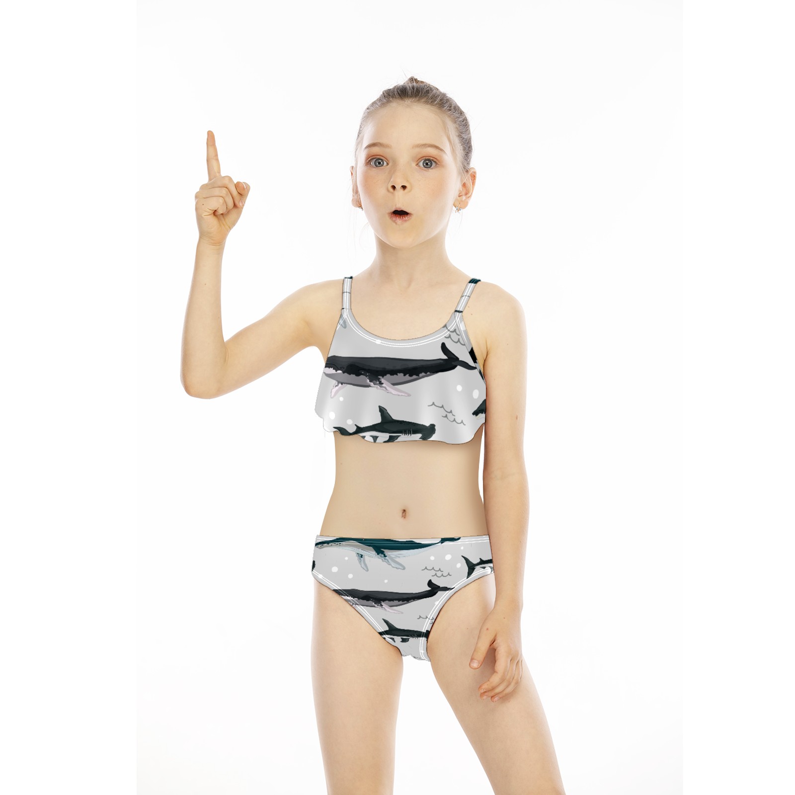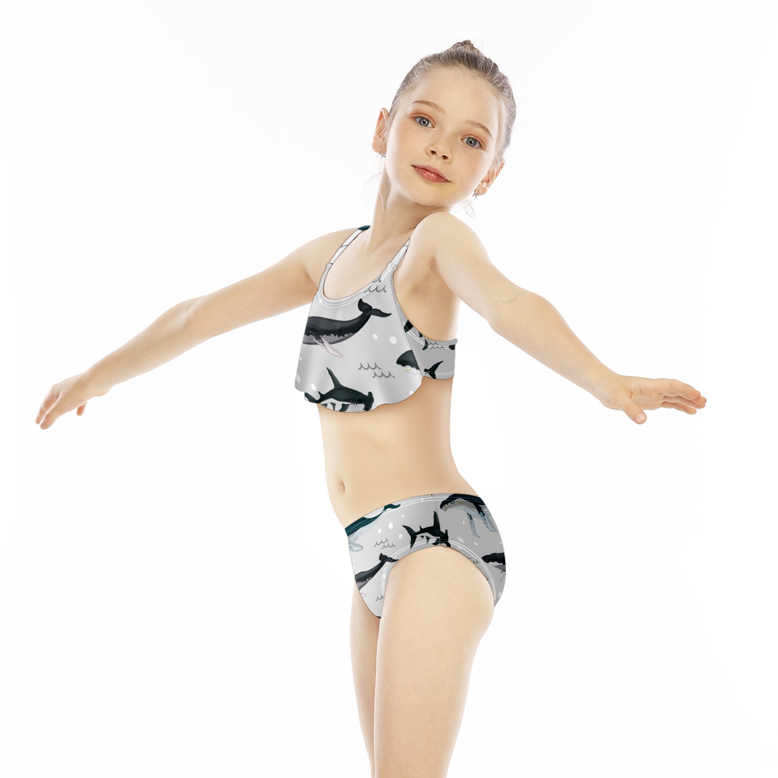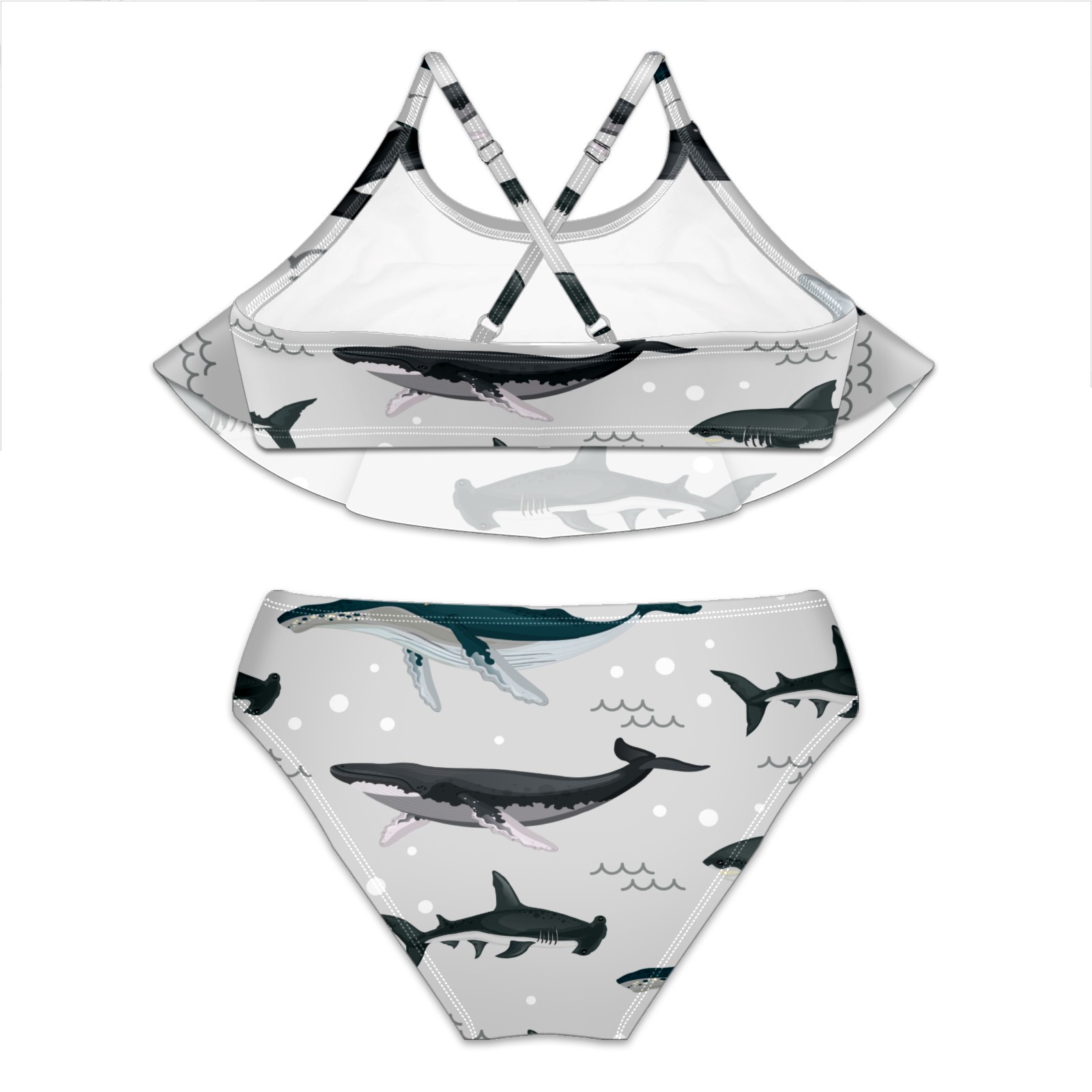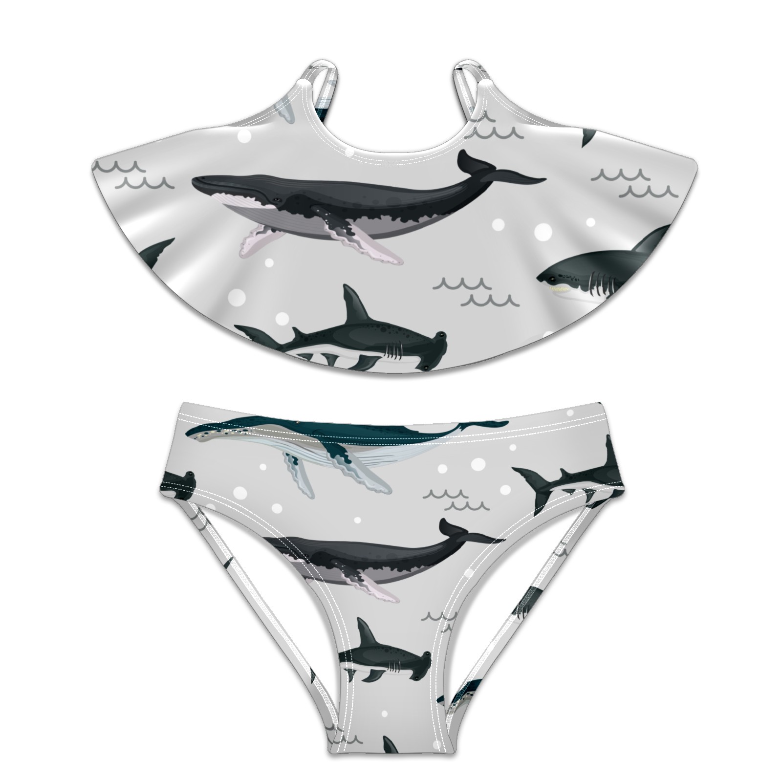 Swimsuits for Girls Two Pieces Bathing Suit Quick Dry Swimwear Retro Ocean Sea Shark Pattern S