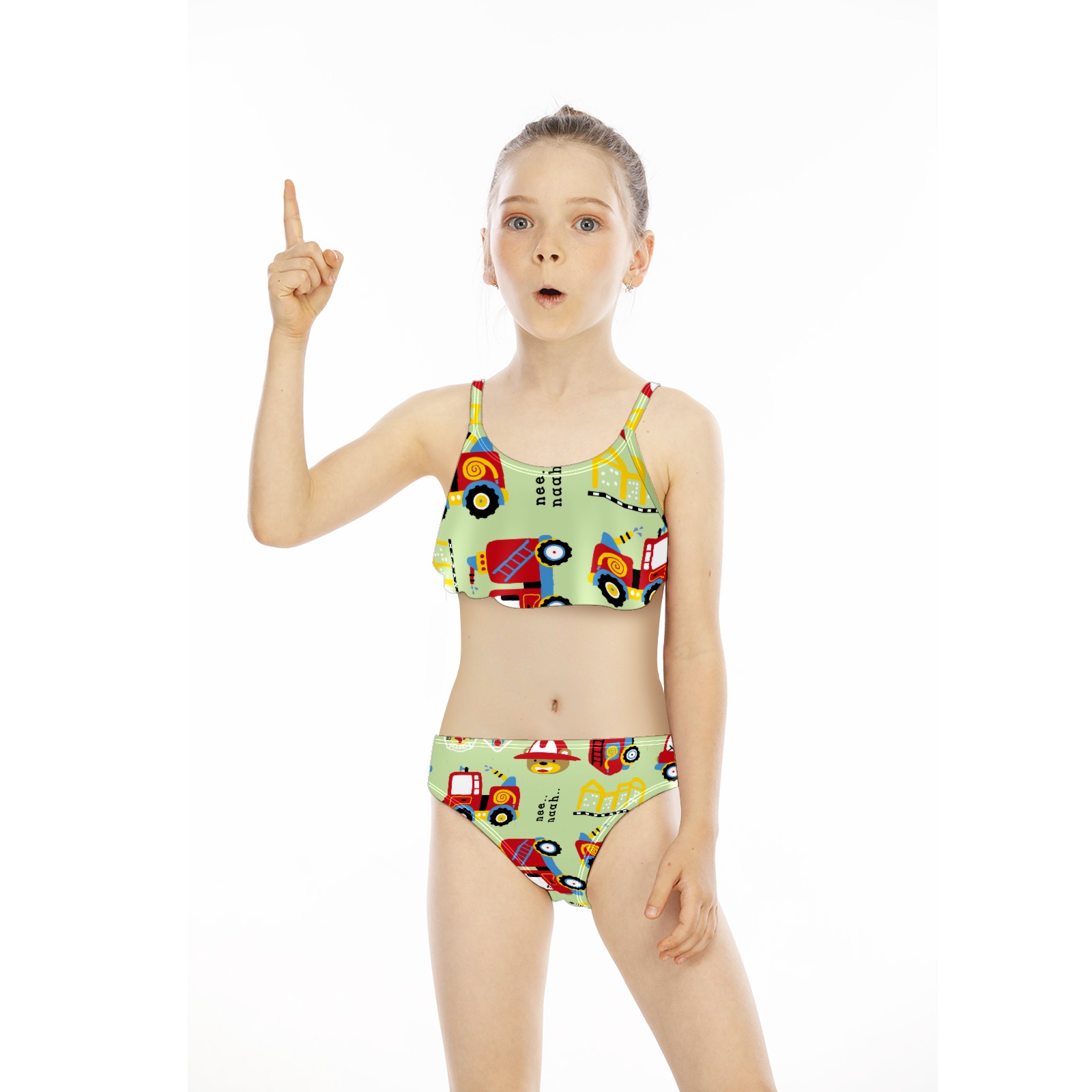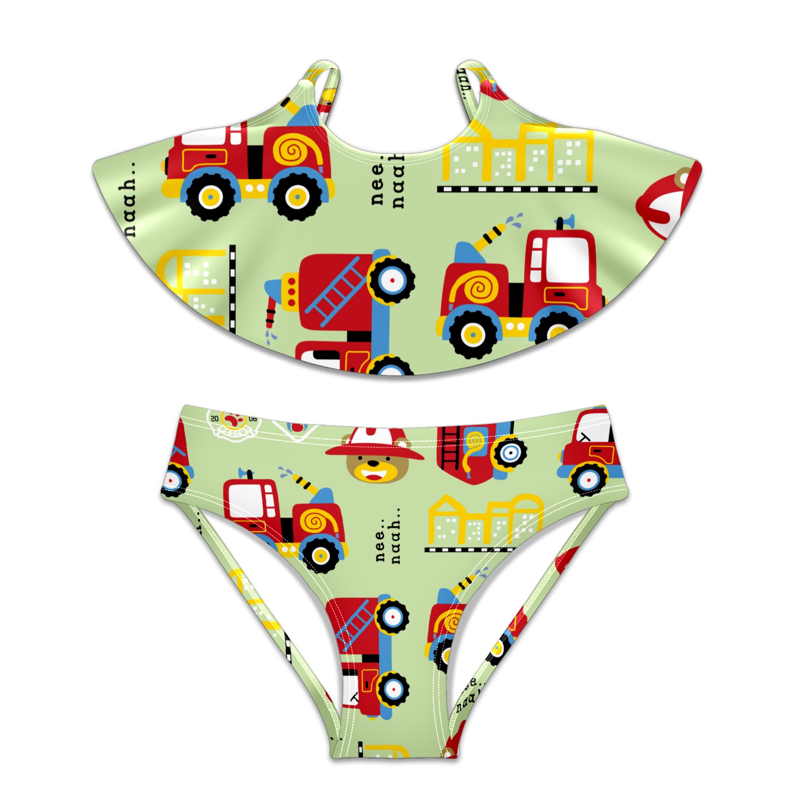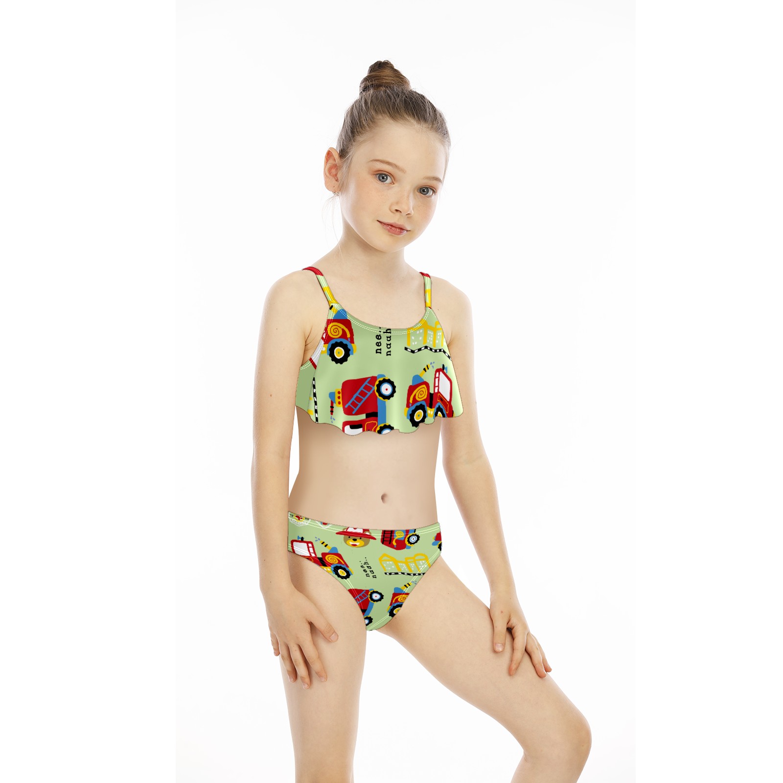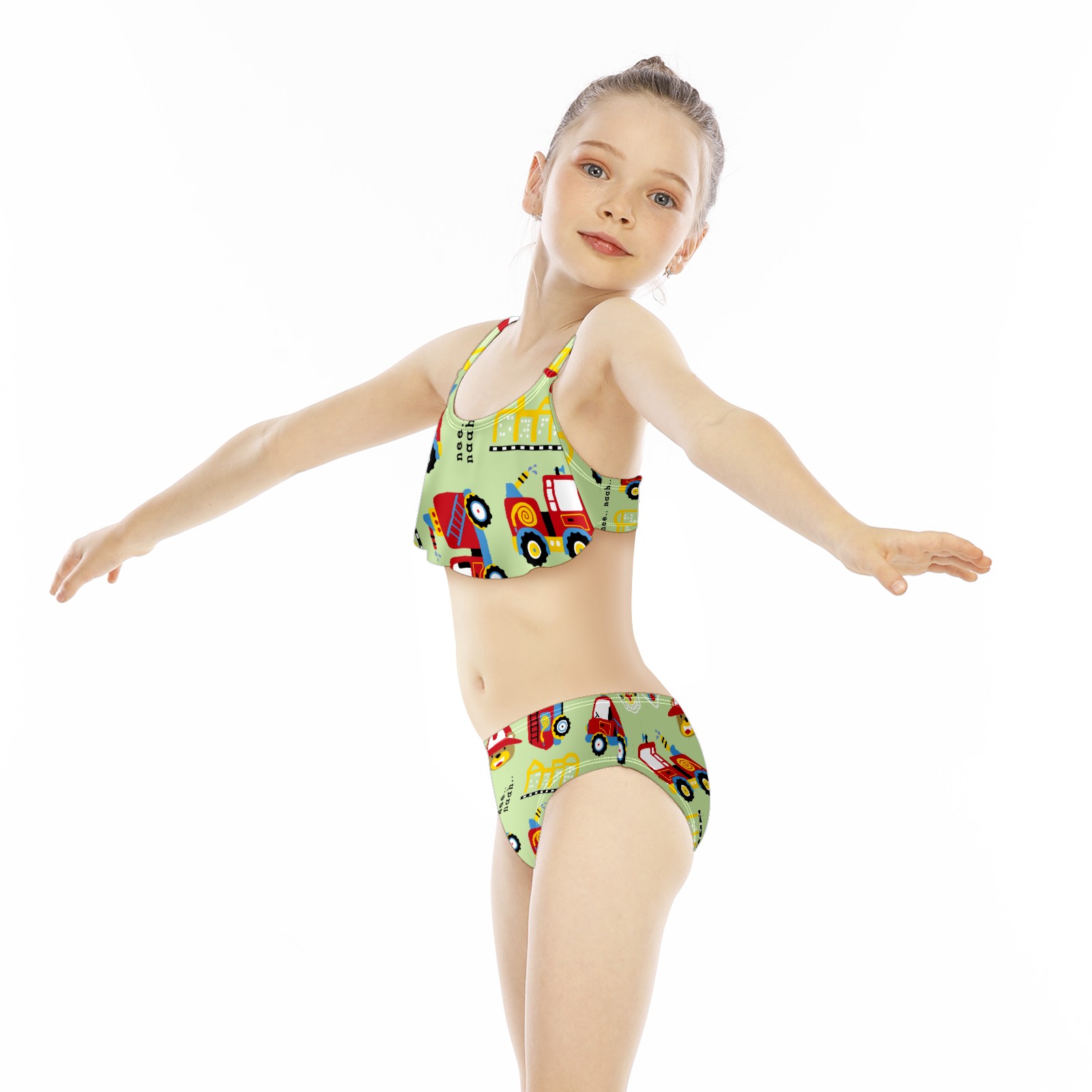 Swimsuits for Girls Two Pieces Bathing Suit Quick Dry Swimwear Red Sprinkler Bear Toy Traffic Car Bus S