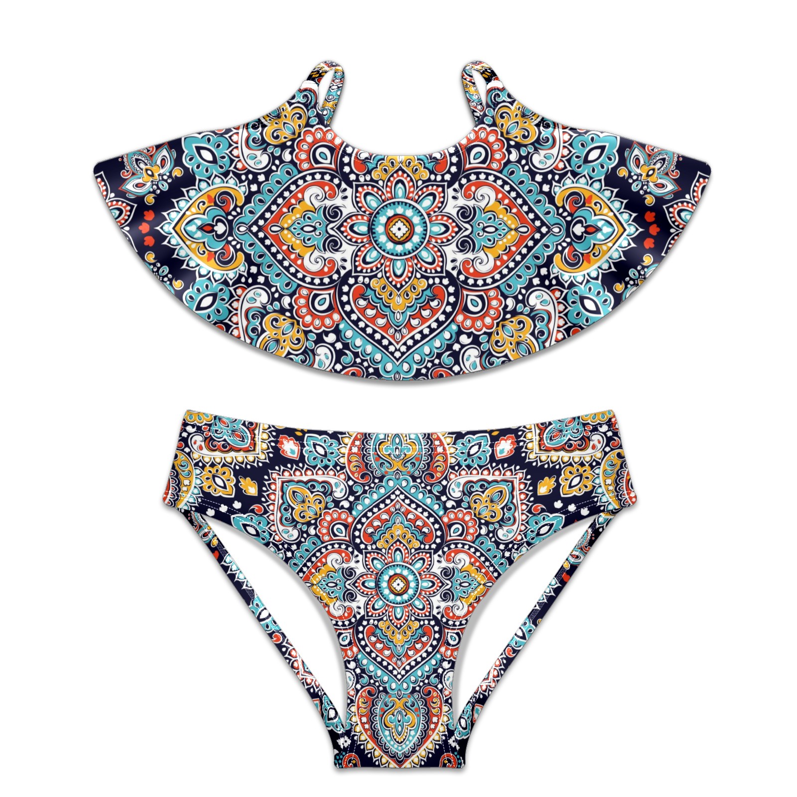Swimsuits for Girls Two Pieces Bathing Suit Quick Dry Swimwear Retro Indian Style Bohemia Mandala Boho S