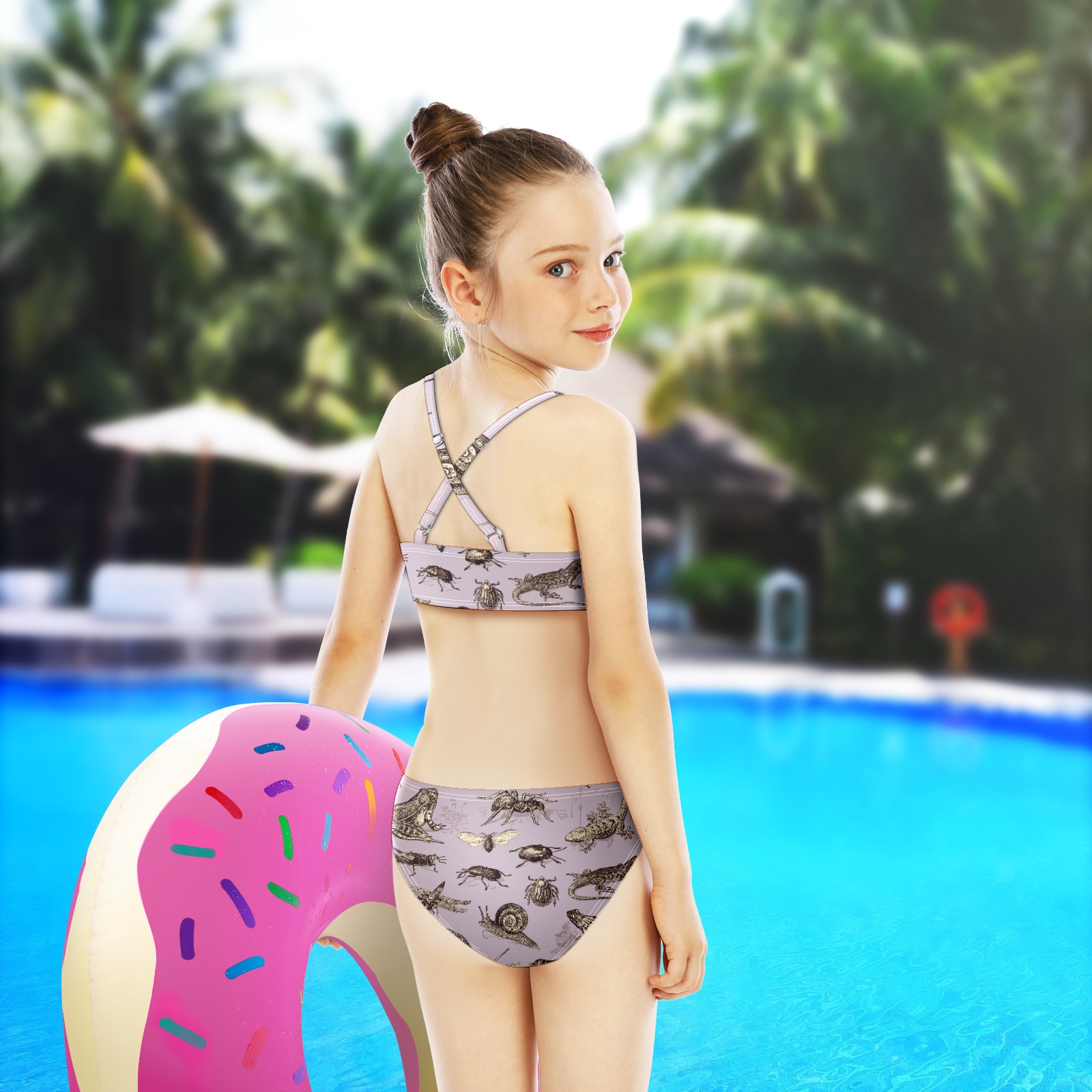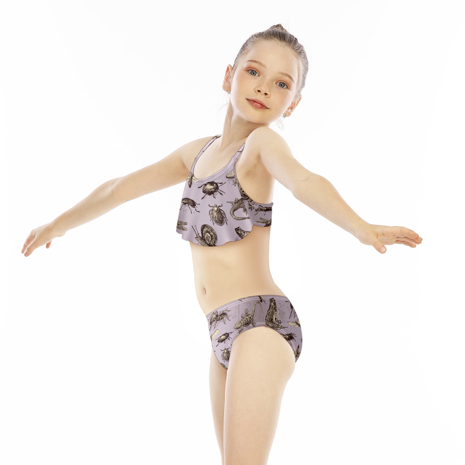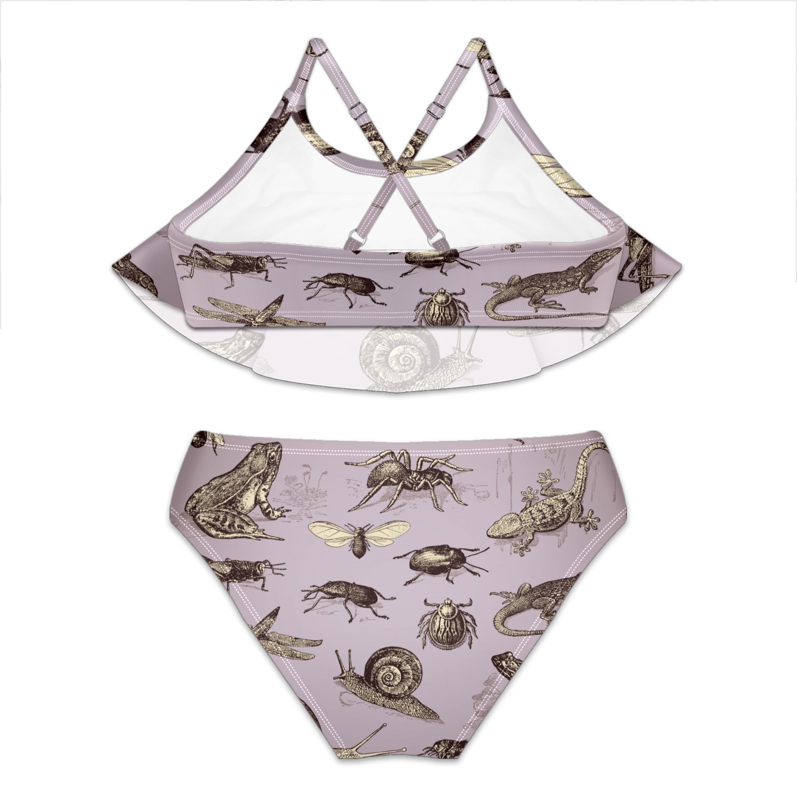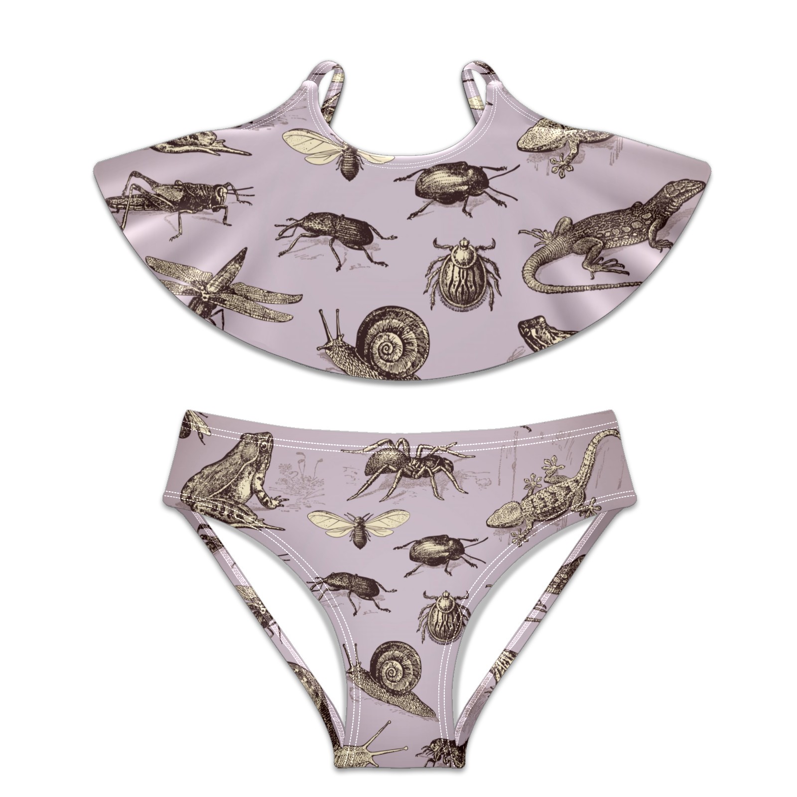 Swimsuits for Girls Two Pieces Bathing Suit Quick Dry Swimwear Retro Insects Frog Snail Dragonfly Butterfly S