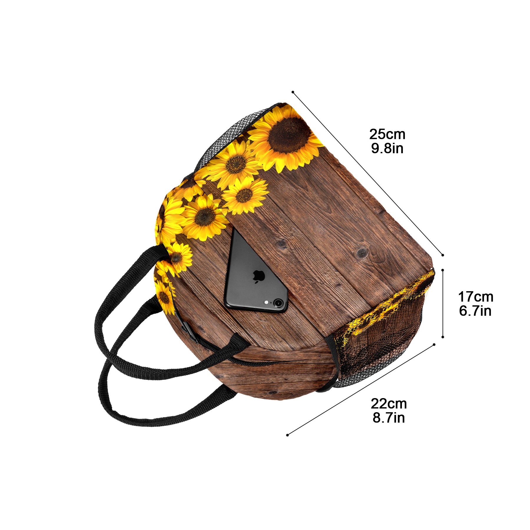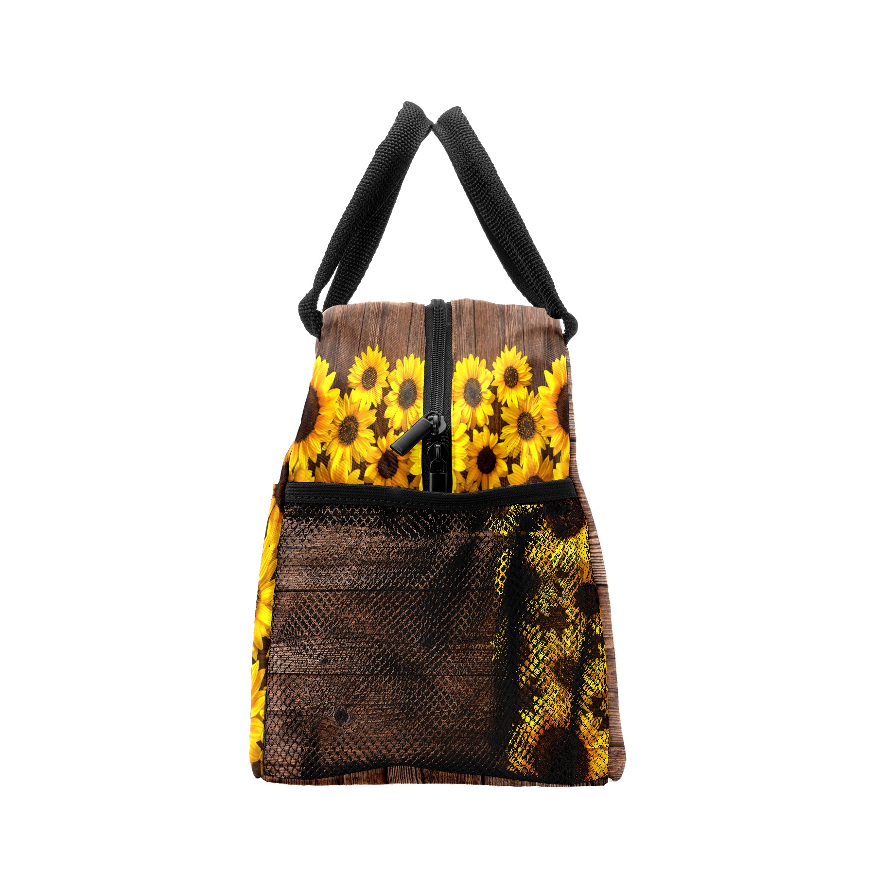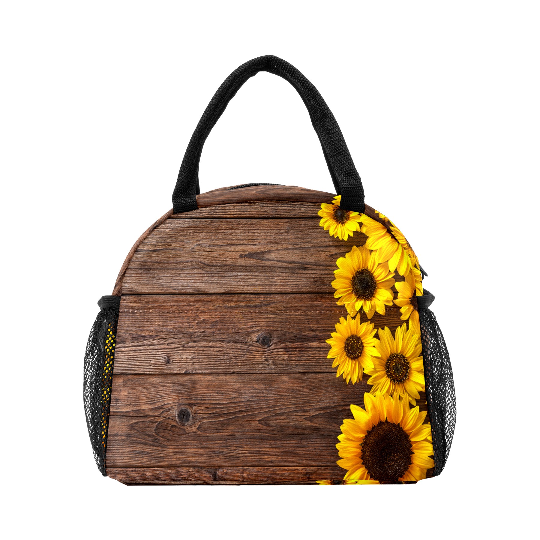 Lunch Bag for Women Men, Vintage Sunflower Blooming Retro Wood Insulated Reusable Lunch Box Thermal Cooler Tote Bag for Work Picnic Hiking Travel Beach